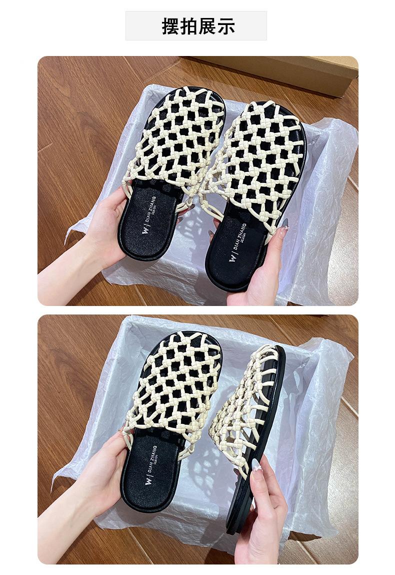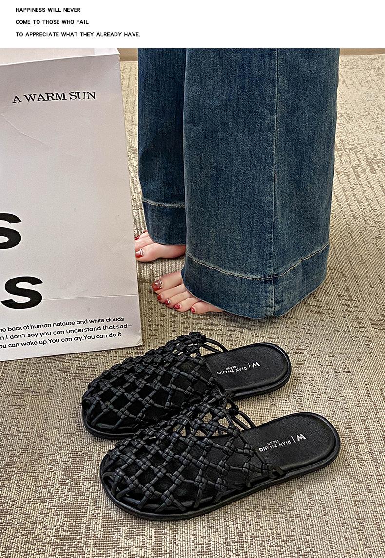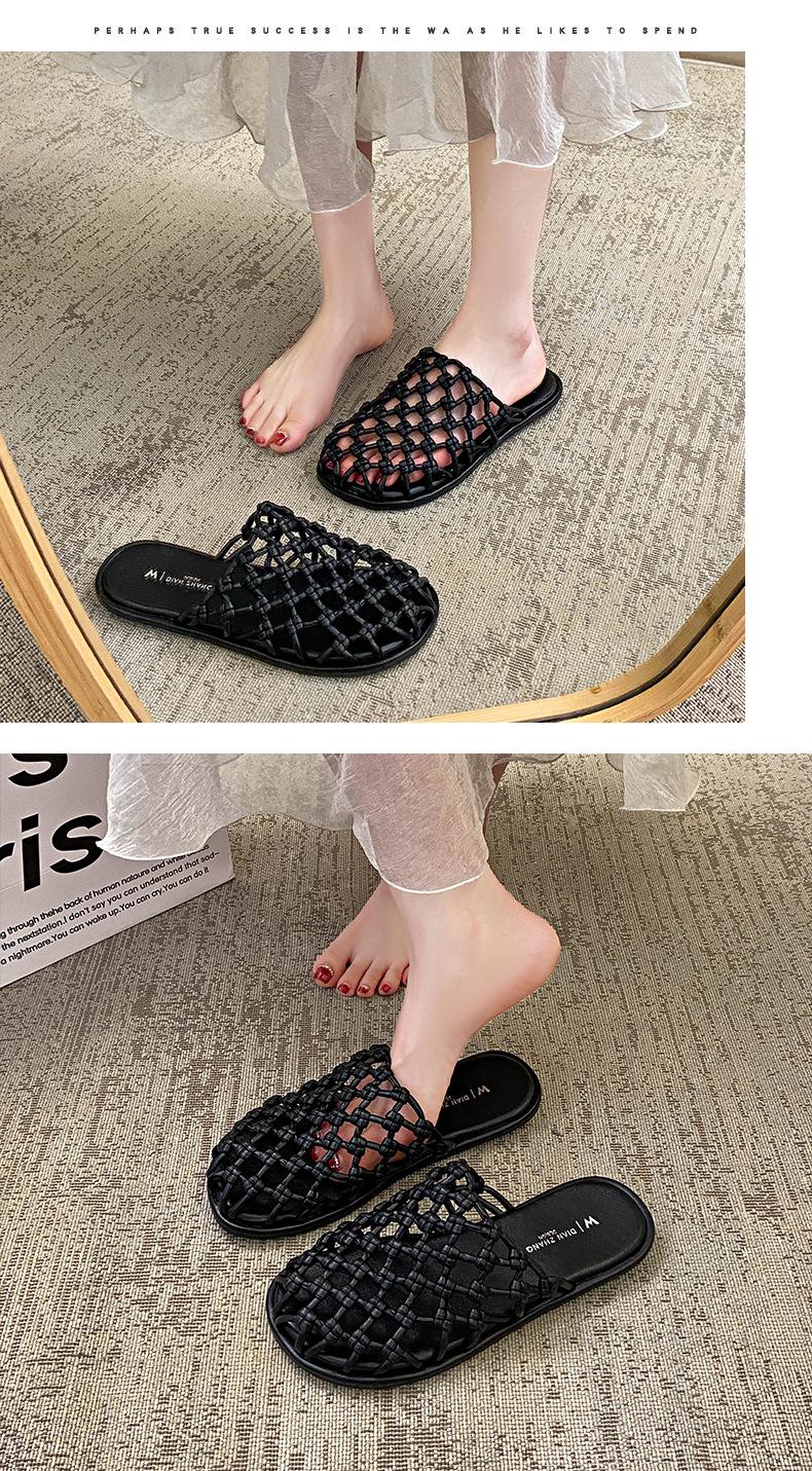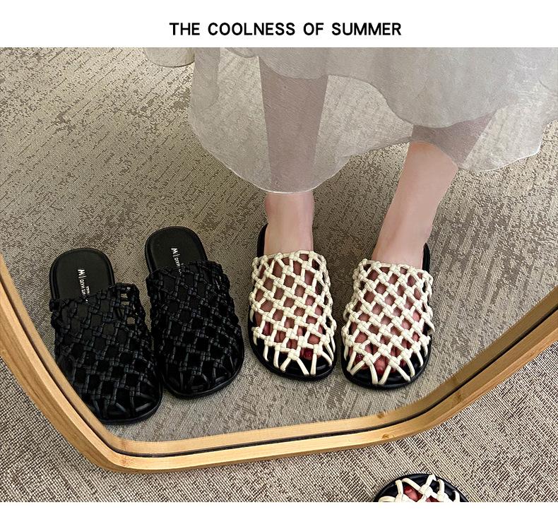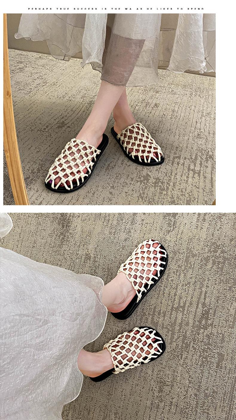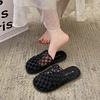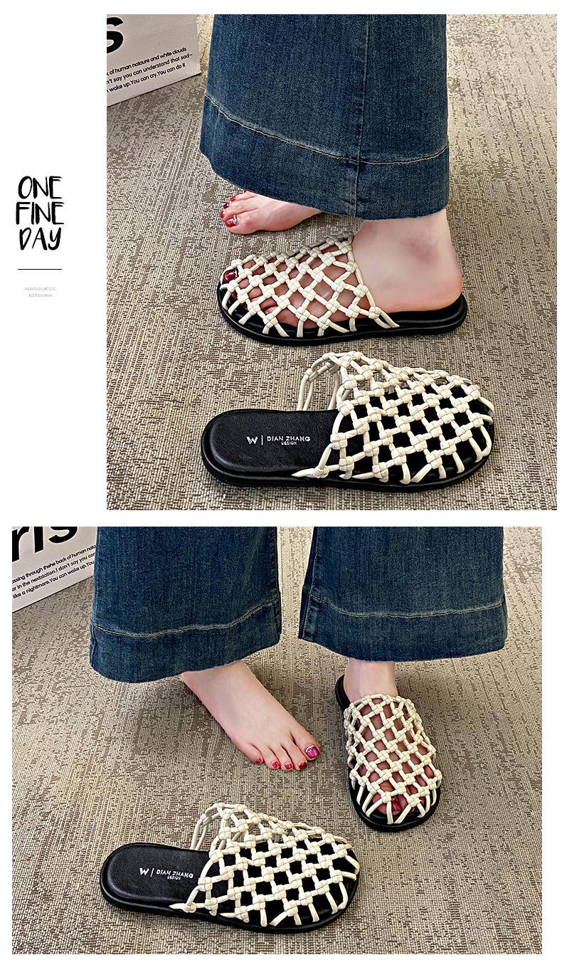 Verano 2025 Cuero Sintético Punta Redonda Retro Punta Cerrada Nudo Trenzado Pantuflas Planas Sandalias Casuales de Playa