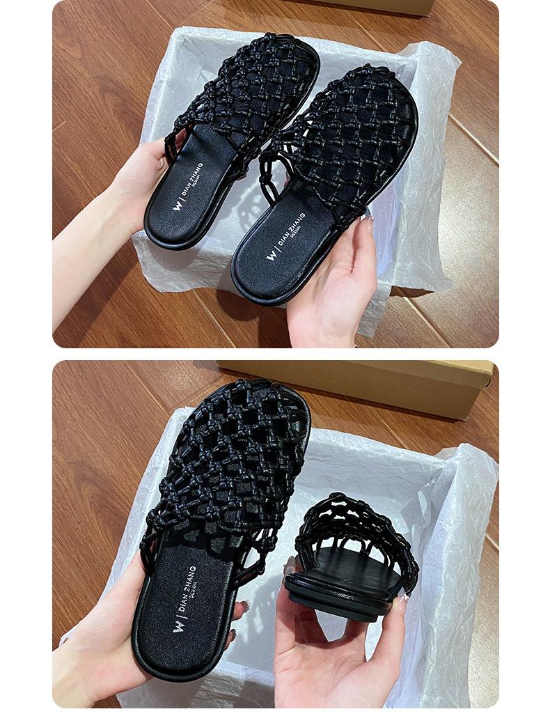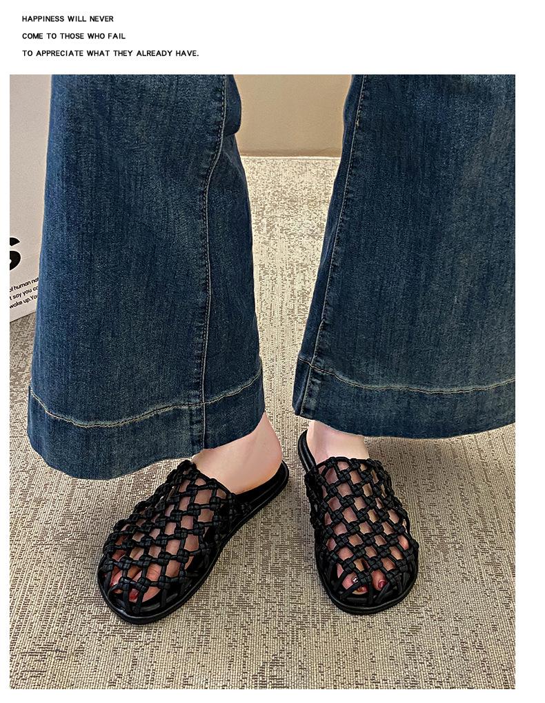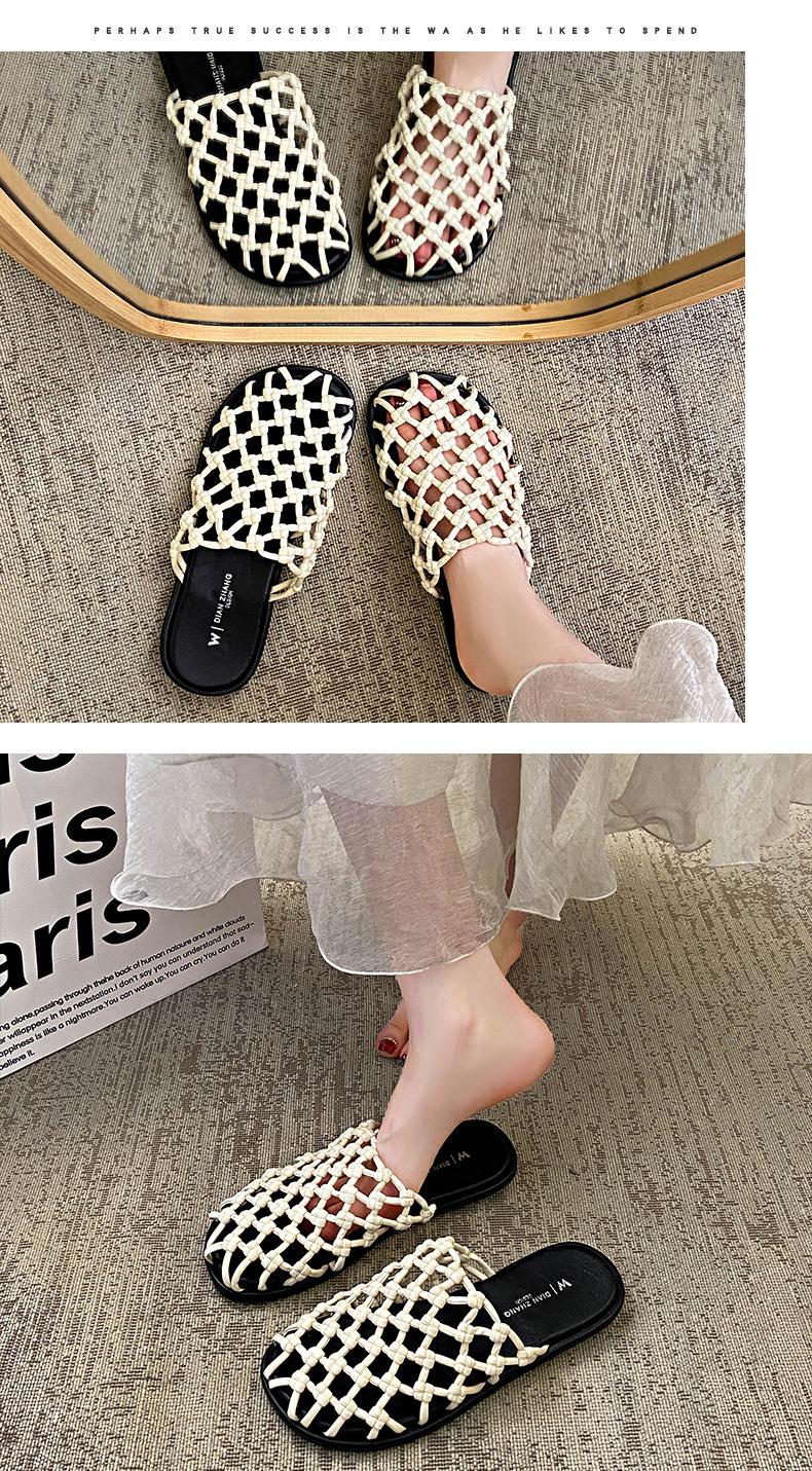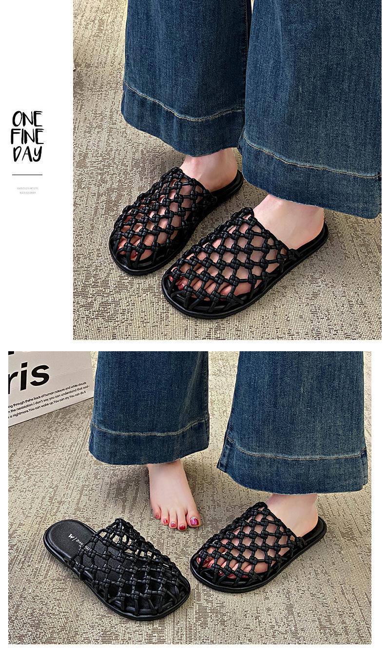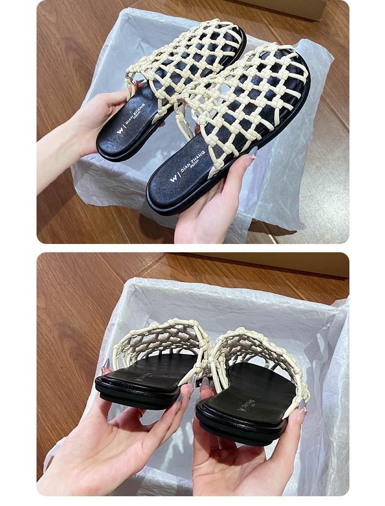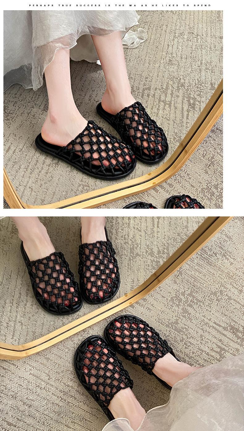 Verano 2025 Cuero Sintético Punta Redonda Retro Punta Cerrada Nudo Trenzado Pantuflas Planas Sandalias Casuales de Playa