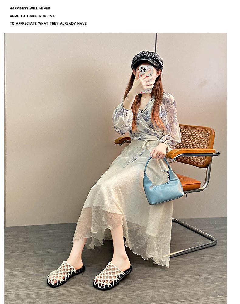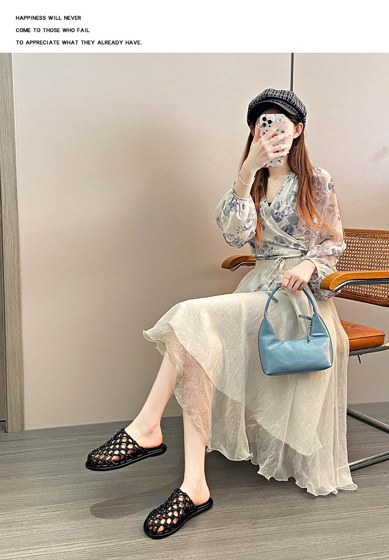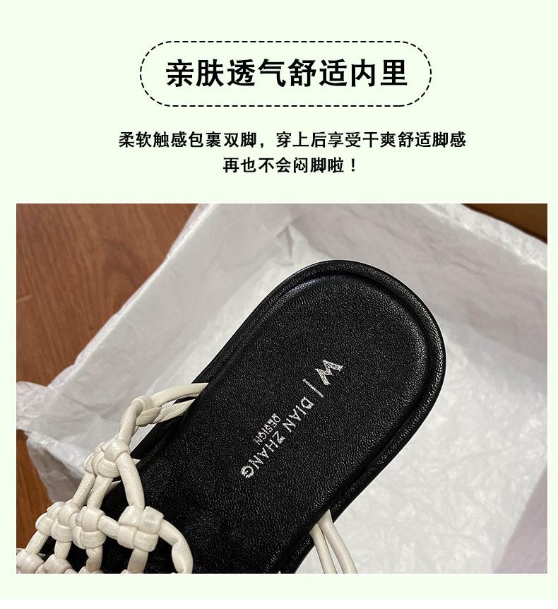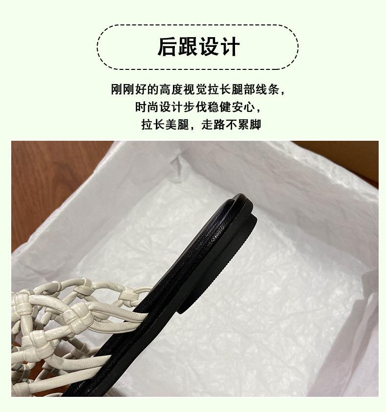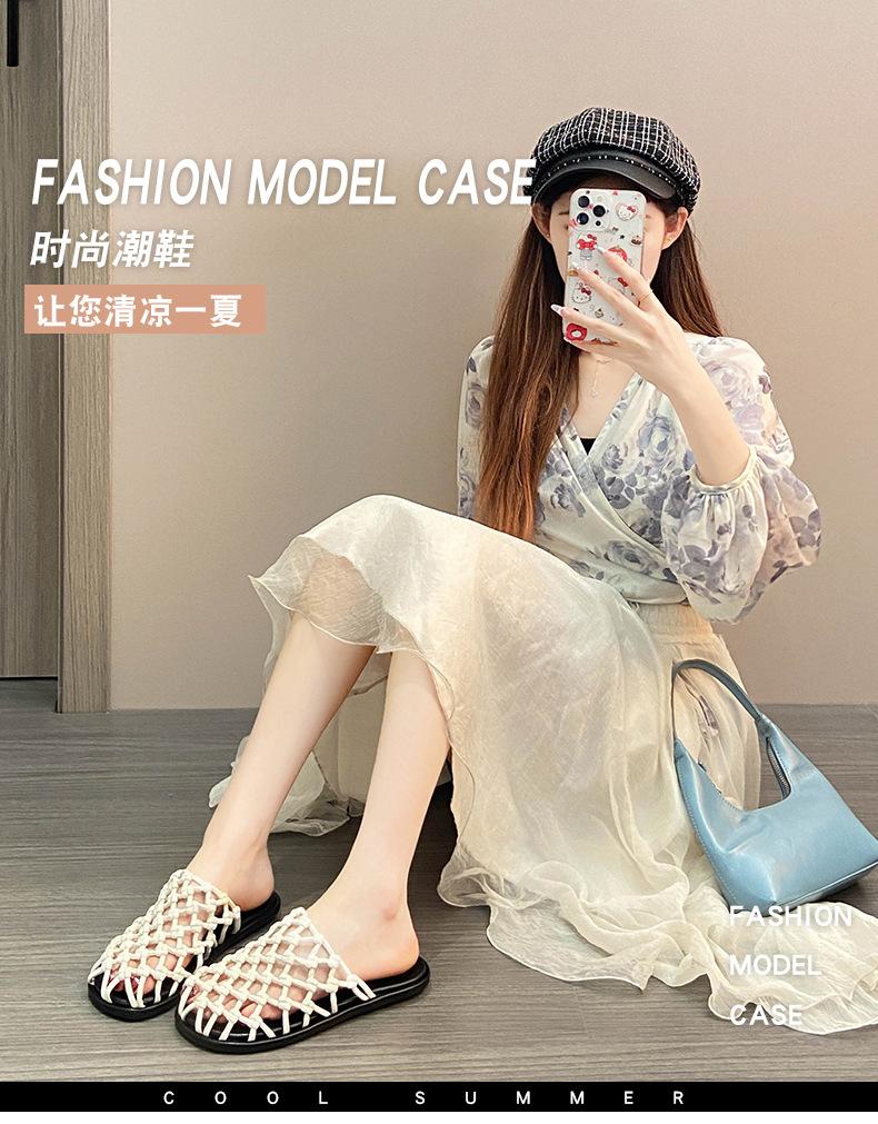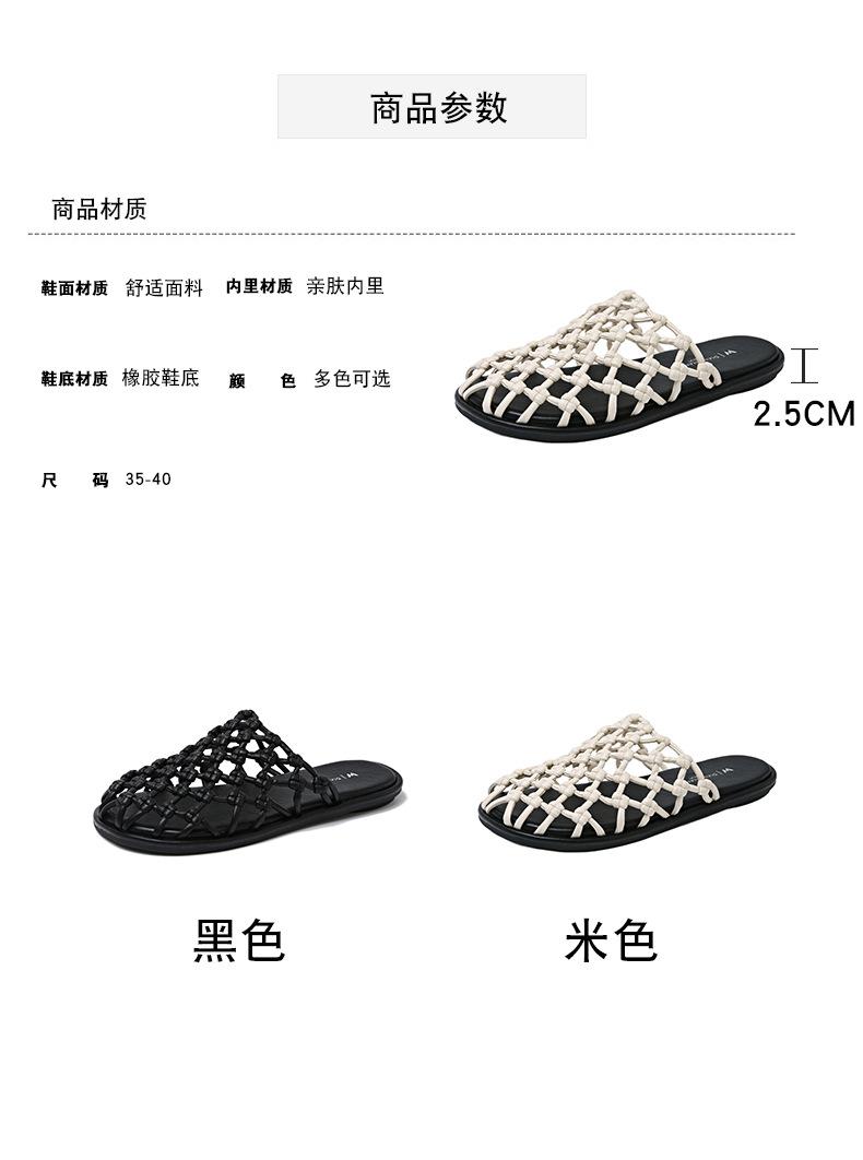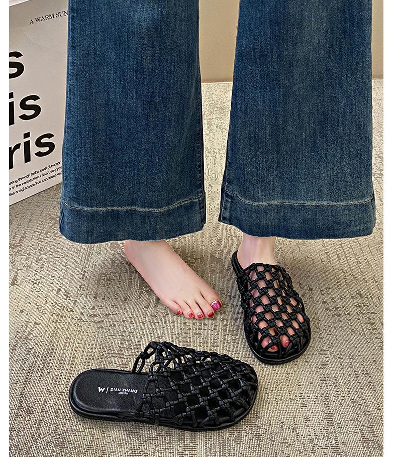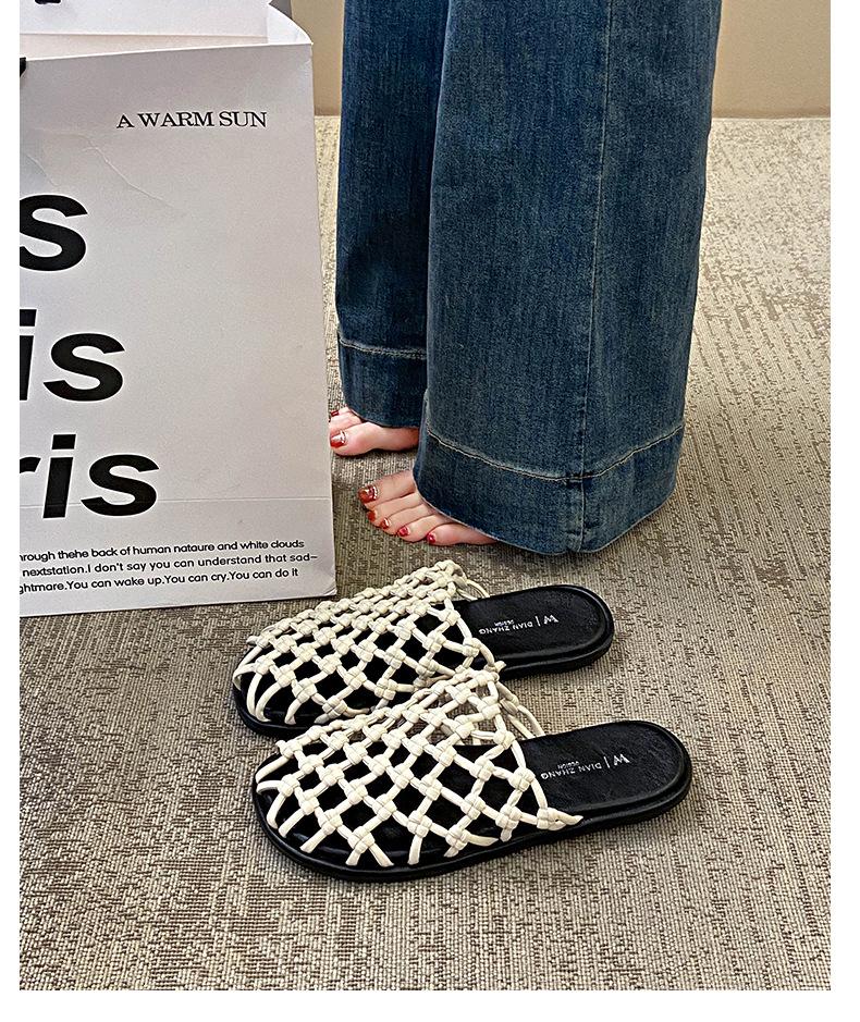 Verano 2025 Cuero Sintético Punta Redonda Retro Punta Cerrada Nudo Trenzado Pantuflas Planas Sandalias Casuales de Playa