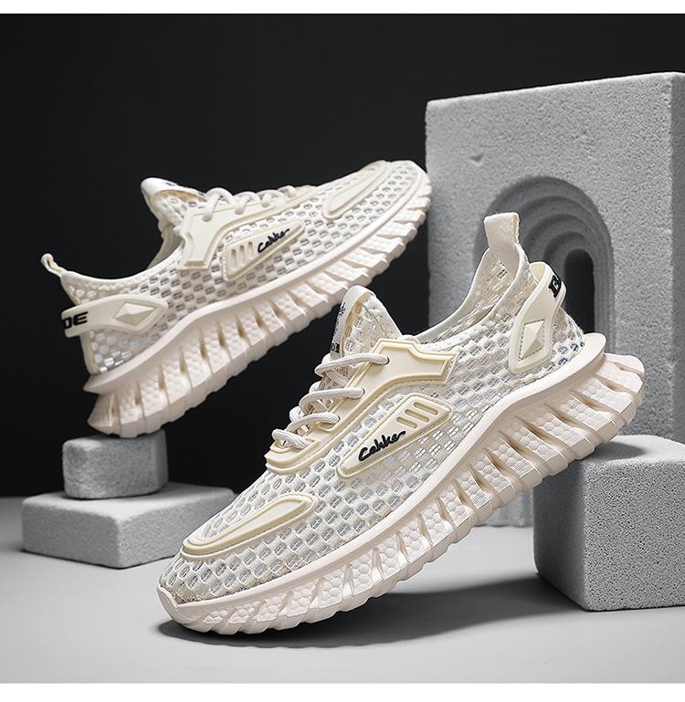 Verano Nuevo Color Sólido Malla Zapatos Deportivos Huecos Transpirables Zapatos Casuales para Correr Zapatos de Moda para Hombre para Exteriores Zapatos de Hombre