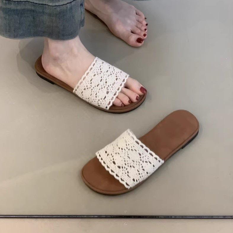 Sandalias Planas 2025 Verano Francés Suave Hada Vacaciones Playa Una Línea Sandalias Romanas