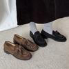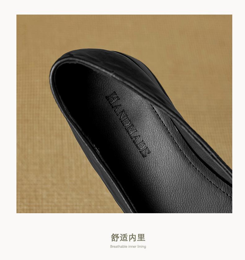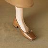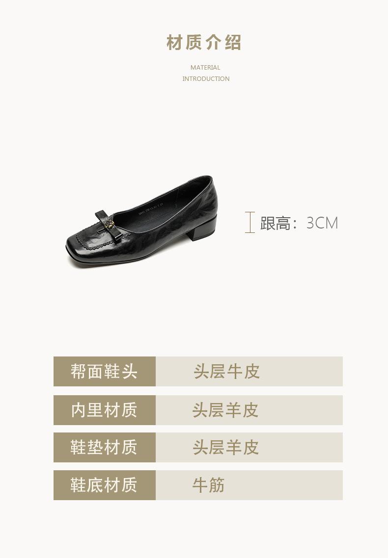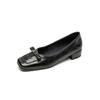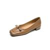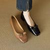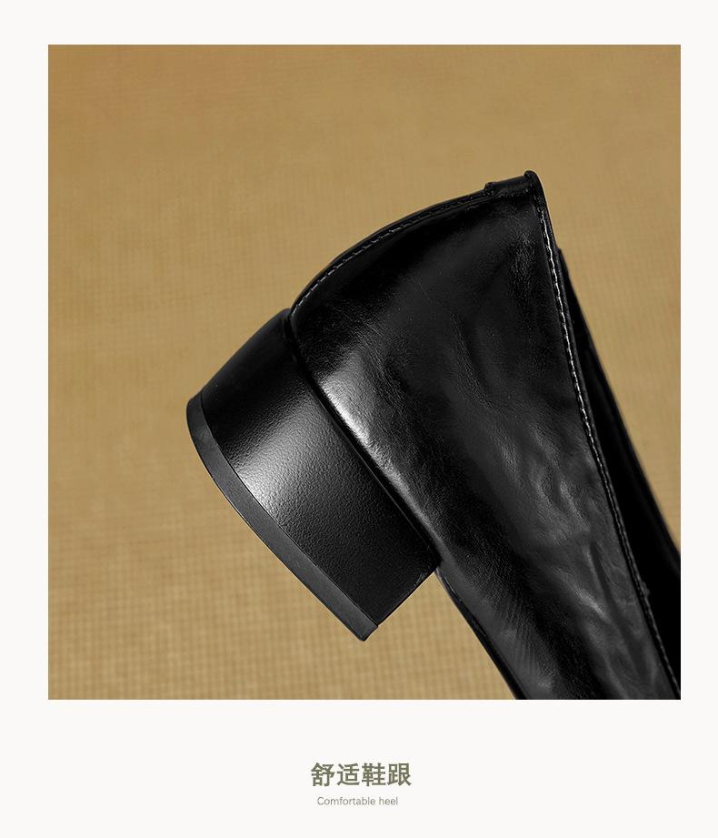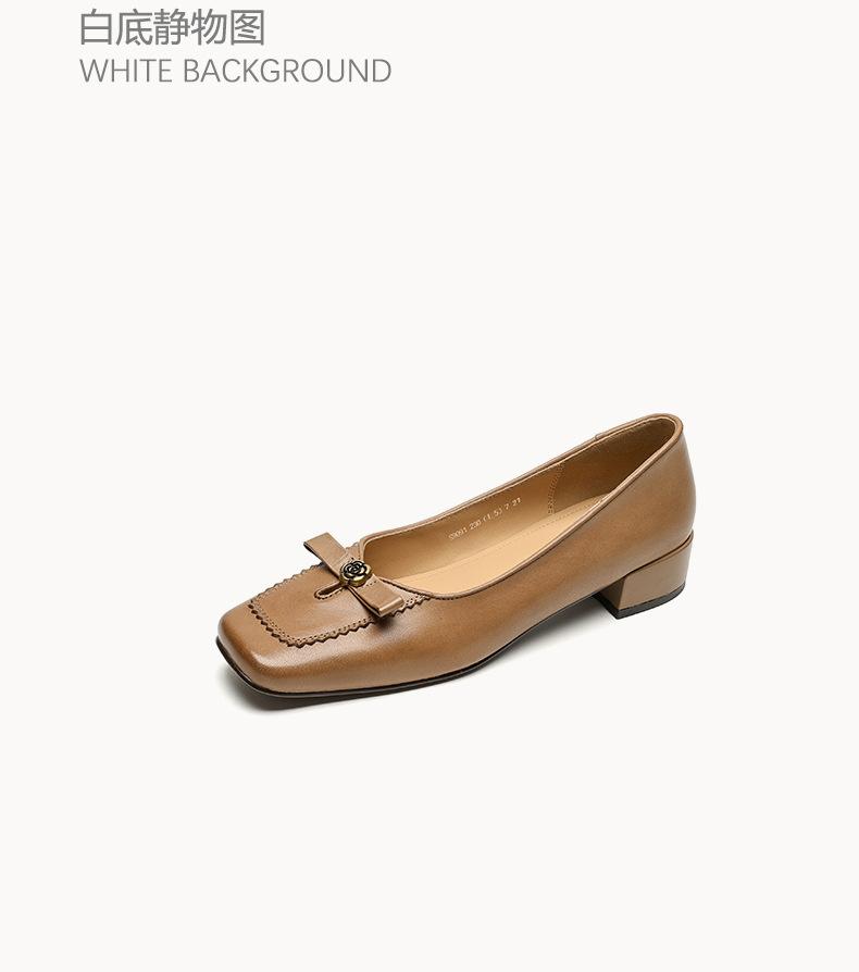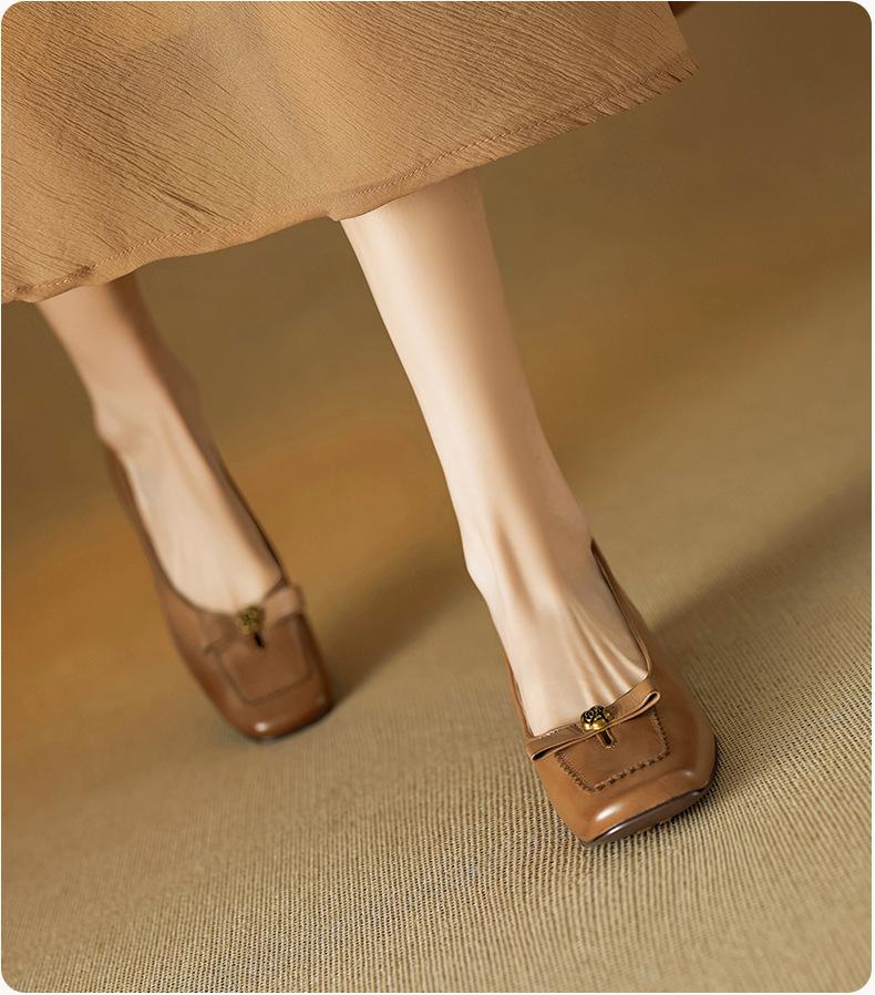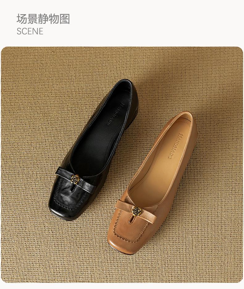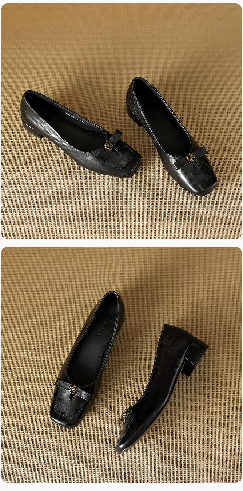 Tacón Grueso de 3cm Estilo Pequeño Fragante Flats de Boca Baja Ropa de Trabajo Versátil 2025 Otoño Nuevo Estilo Cuero Genuino Lazo Camelia Zapatos de Mujer