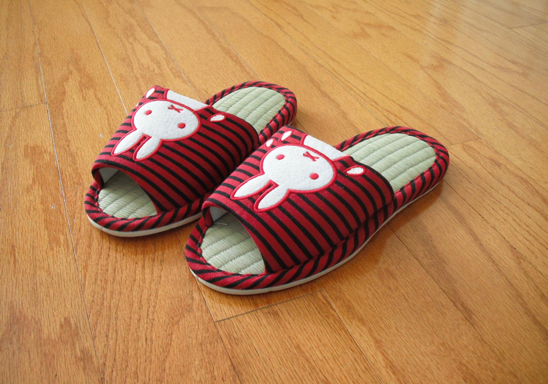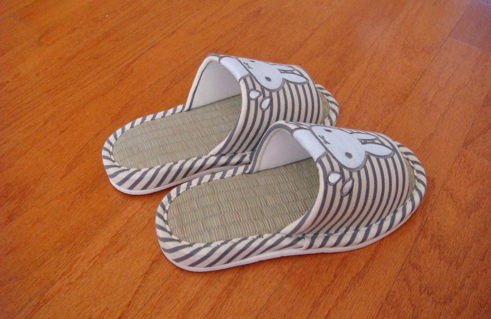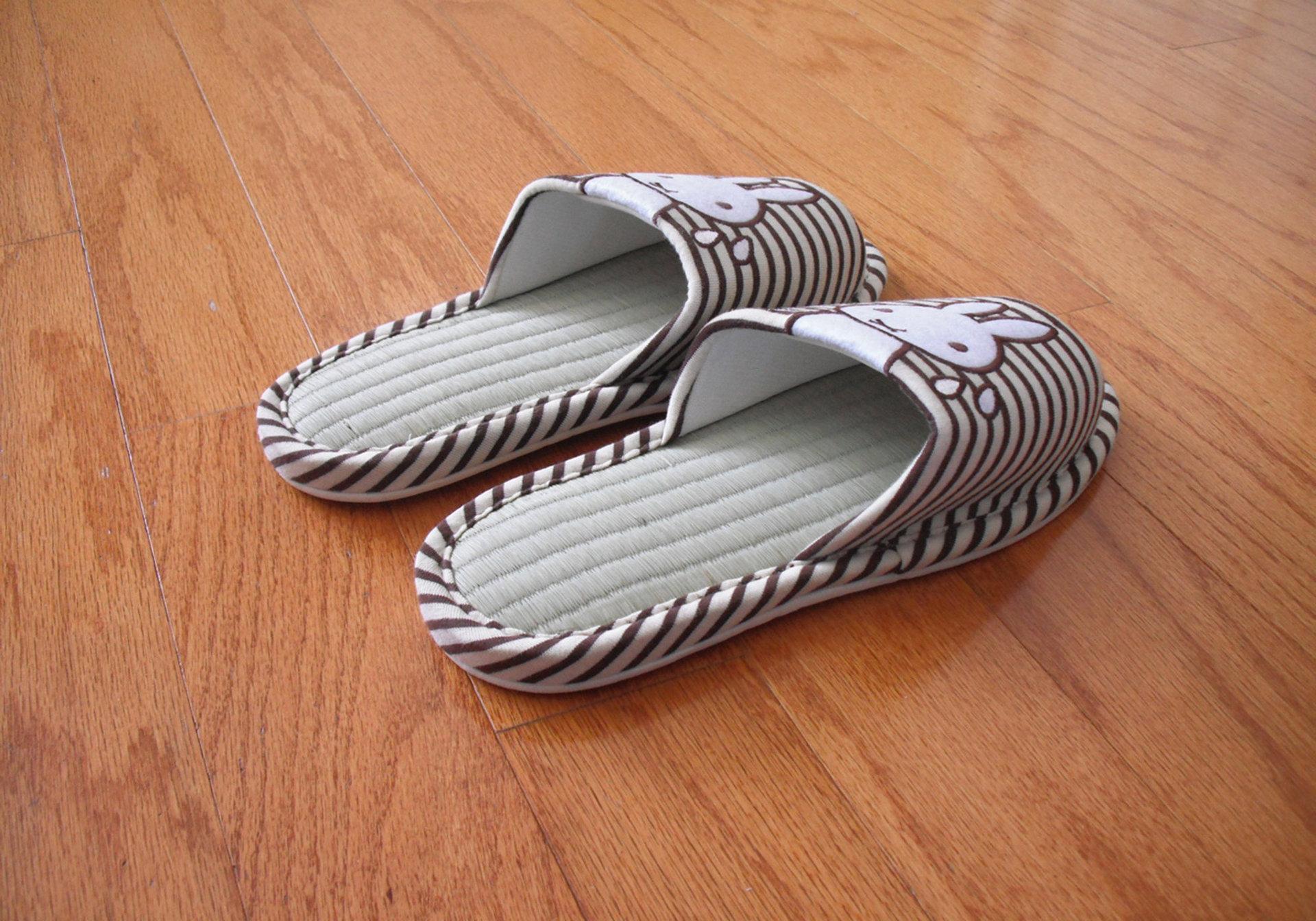 Pantuflas de Lino Personalizadas de Pareja de Conejos Blancos Lindos Zapatos de Piso para Interior Cuatro Estaciones Antideslizantes Pantuflas Planas Venta al Por Mayor de Fábrica