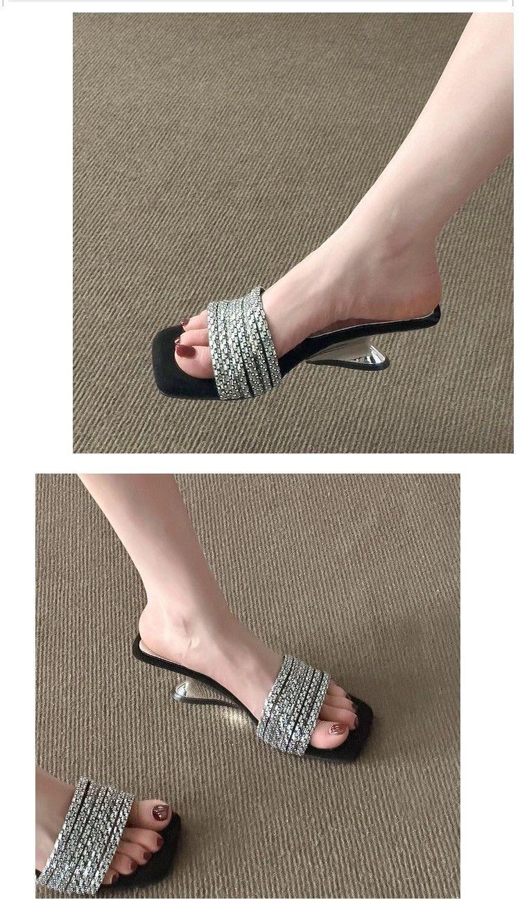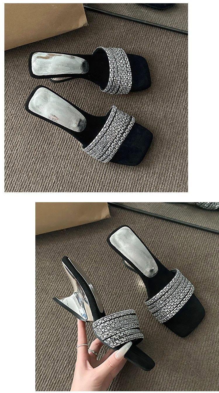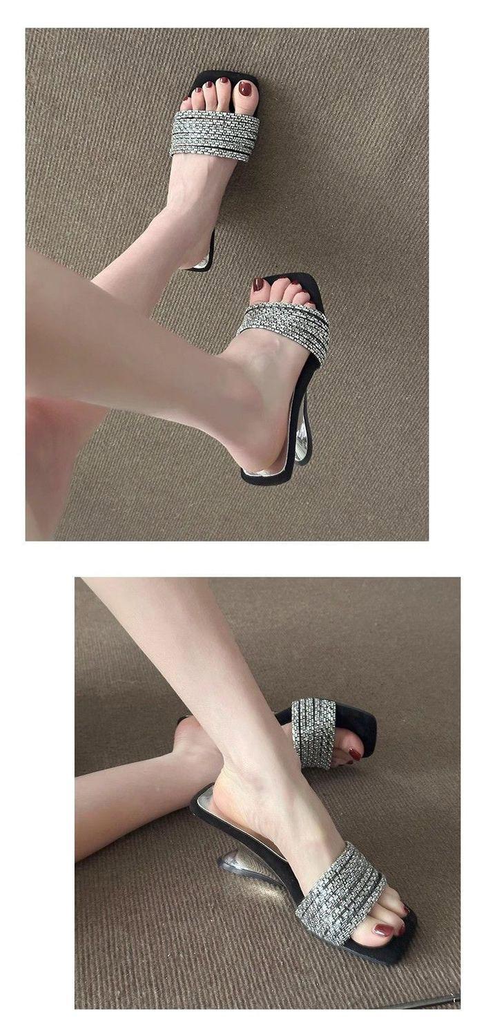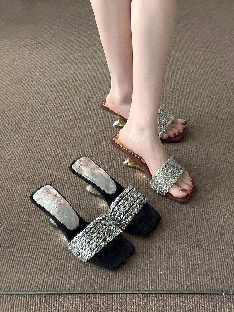 Compra Elegantes de Pedrería con Falda Sandalias de Tacón Alto para Verano para Mujer 2025 Nuevo Estilo Francés Hermosas Sandalias Chanclas al por mayor en Joom.pro