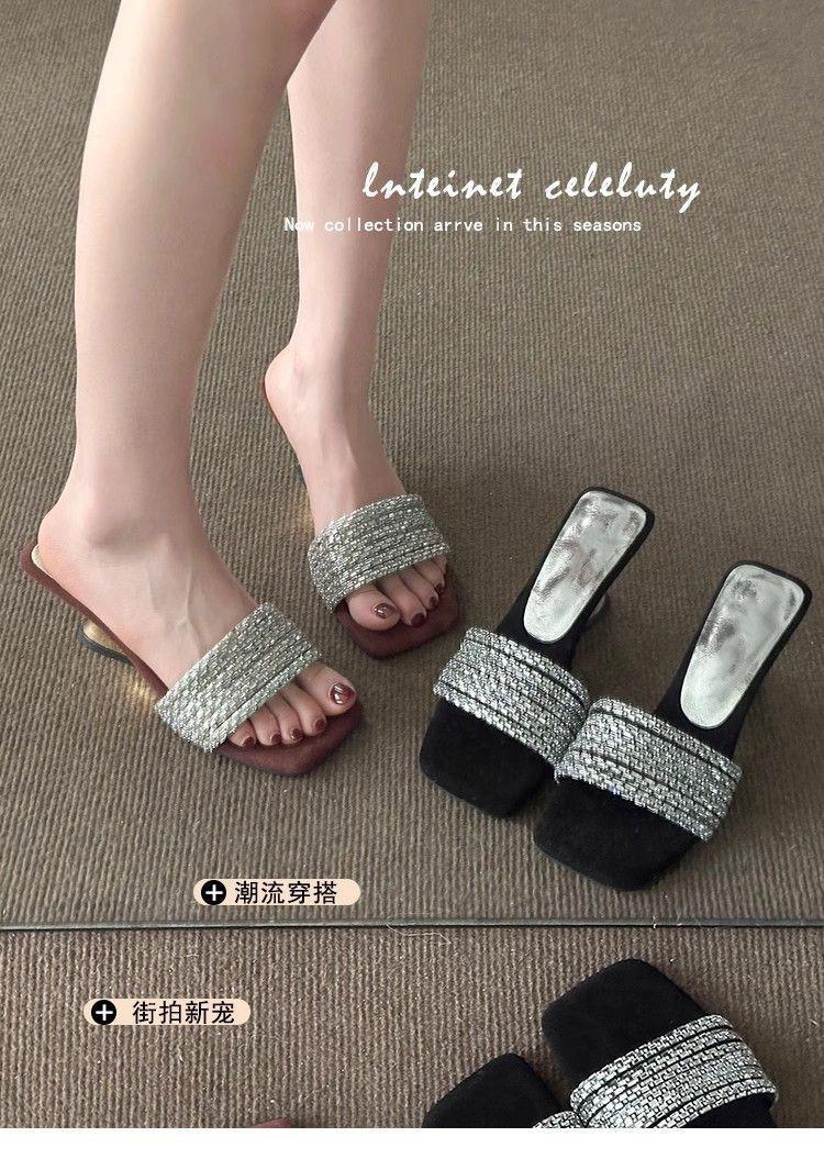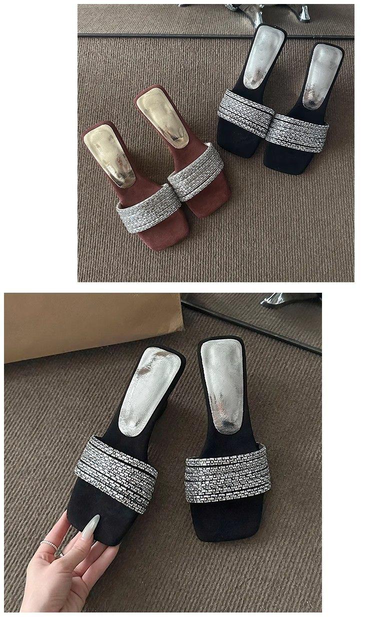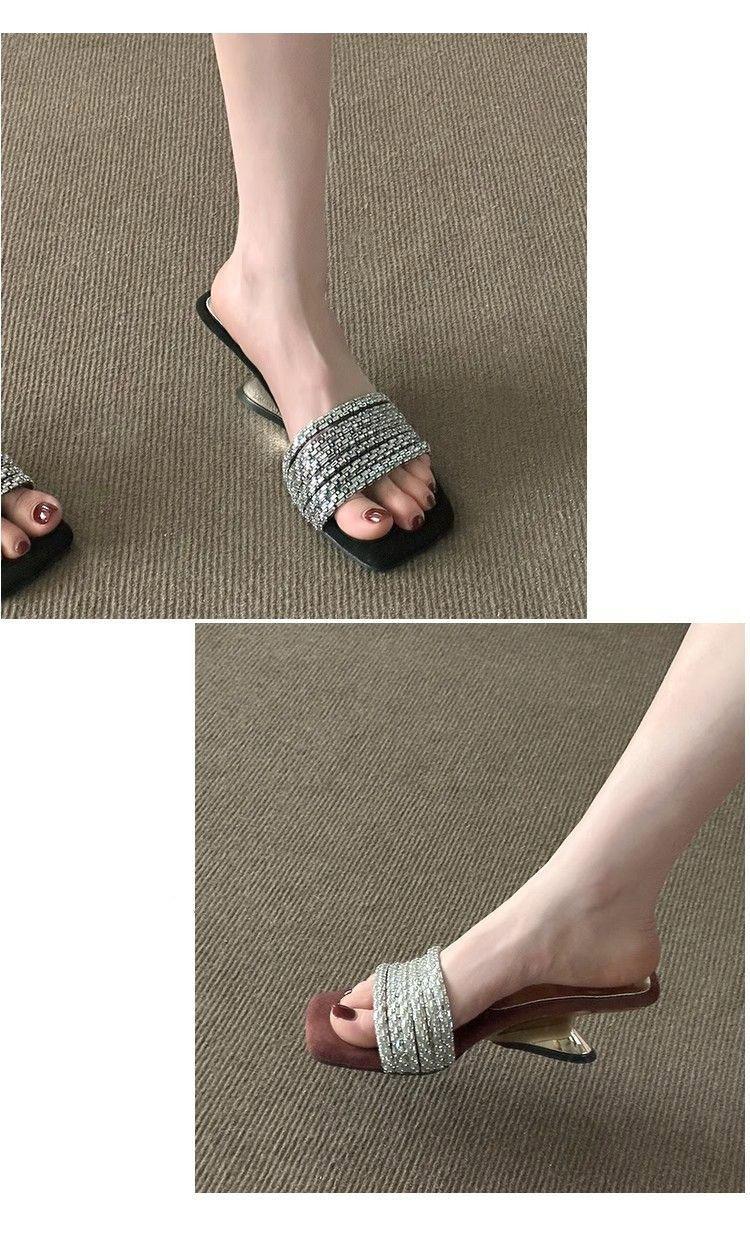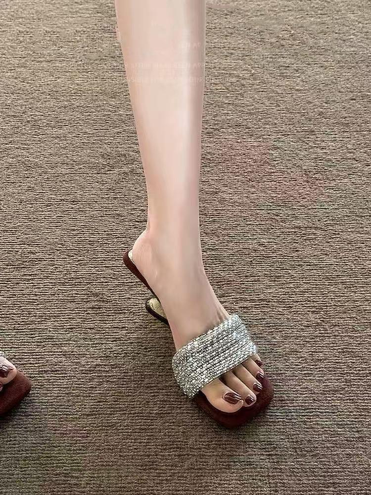 Compra Elegantes de Pedrería con Falda Sandalias de Tacón Alto para Verano para Mujer 2025 Nuevo Estilo Francés Hermosas Sandalias Chanclas al por mayor en Joom.pro