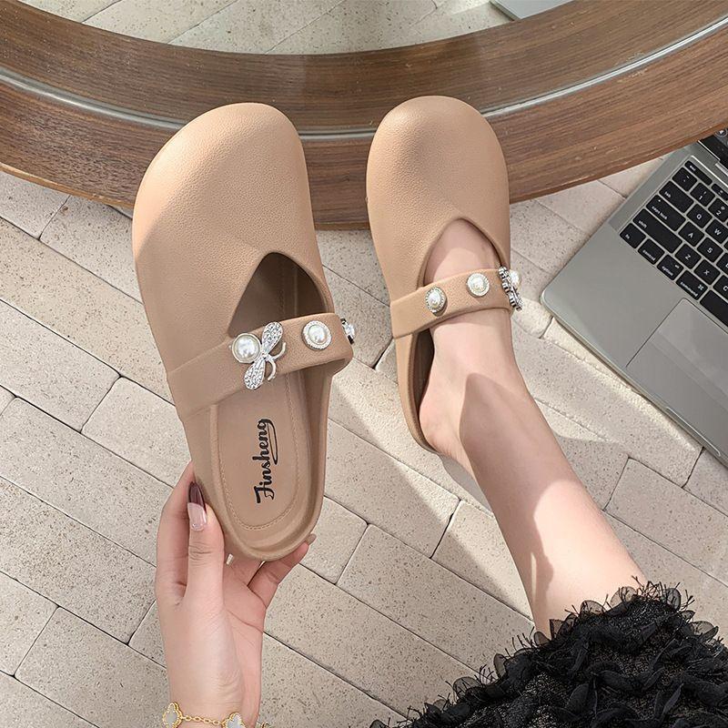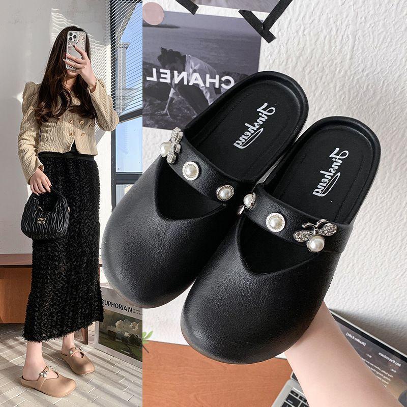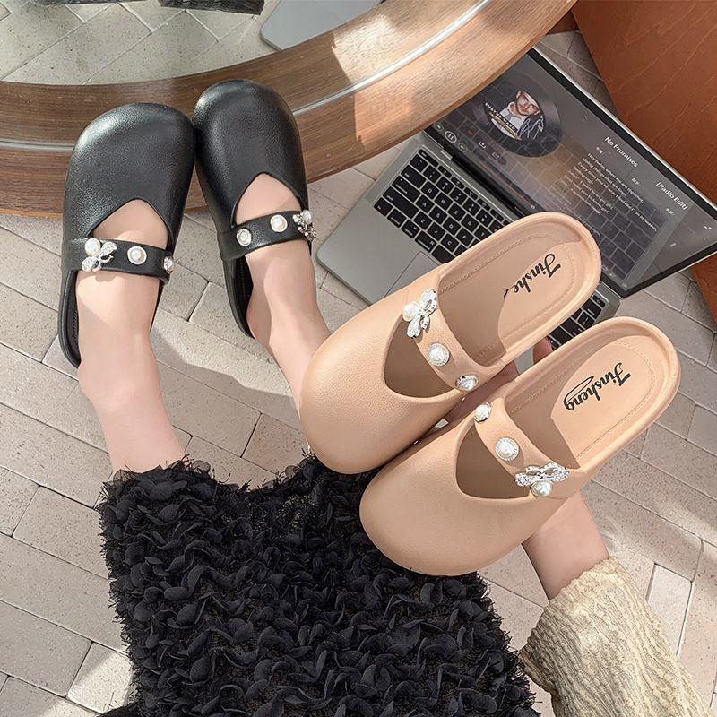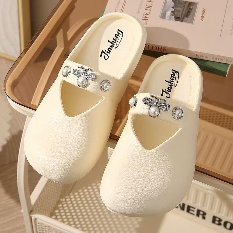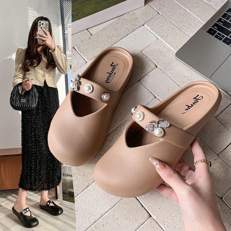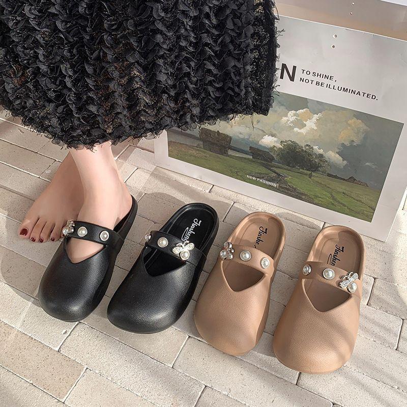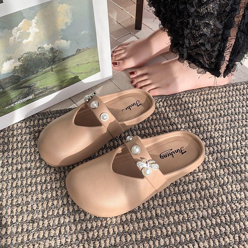 Pantuflas de Casa Antideslizantes Pantuflas de Pedrería de Suela Suave para Mujer 2025 Verano Nuevo Estilo Pantuflas de Mujer Versátiles y a la Moda de una Pierna