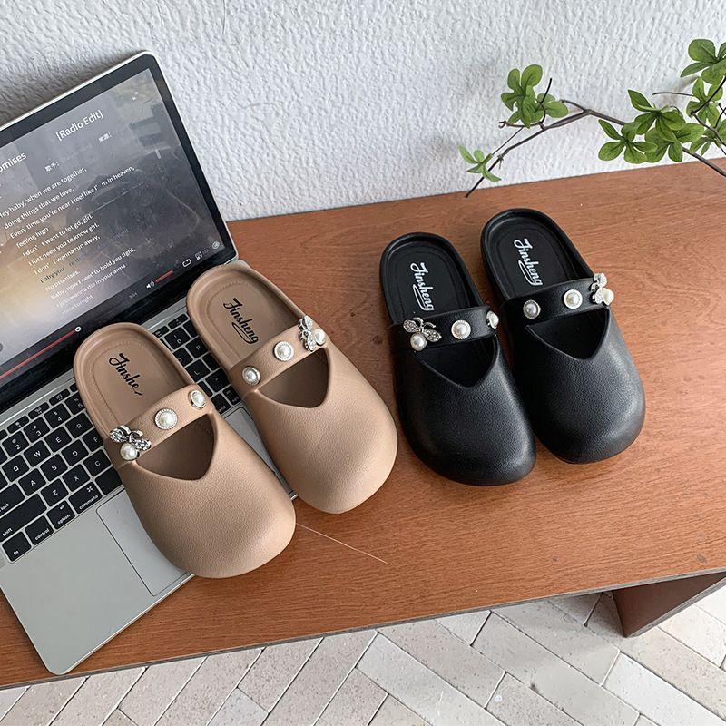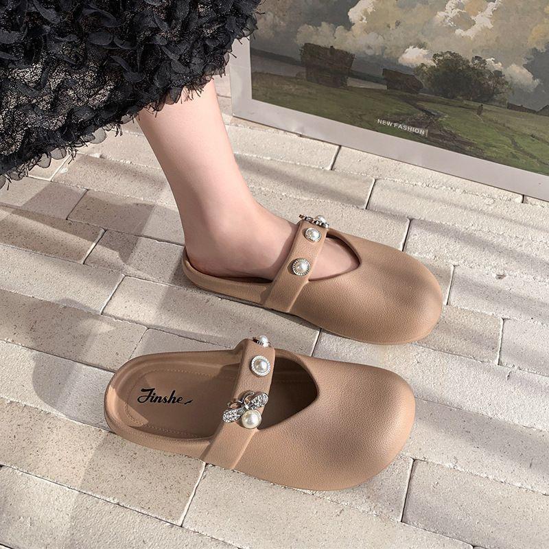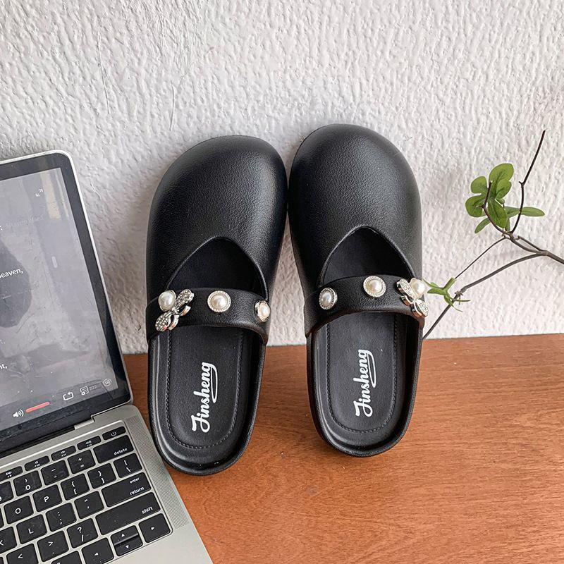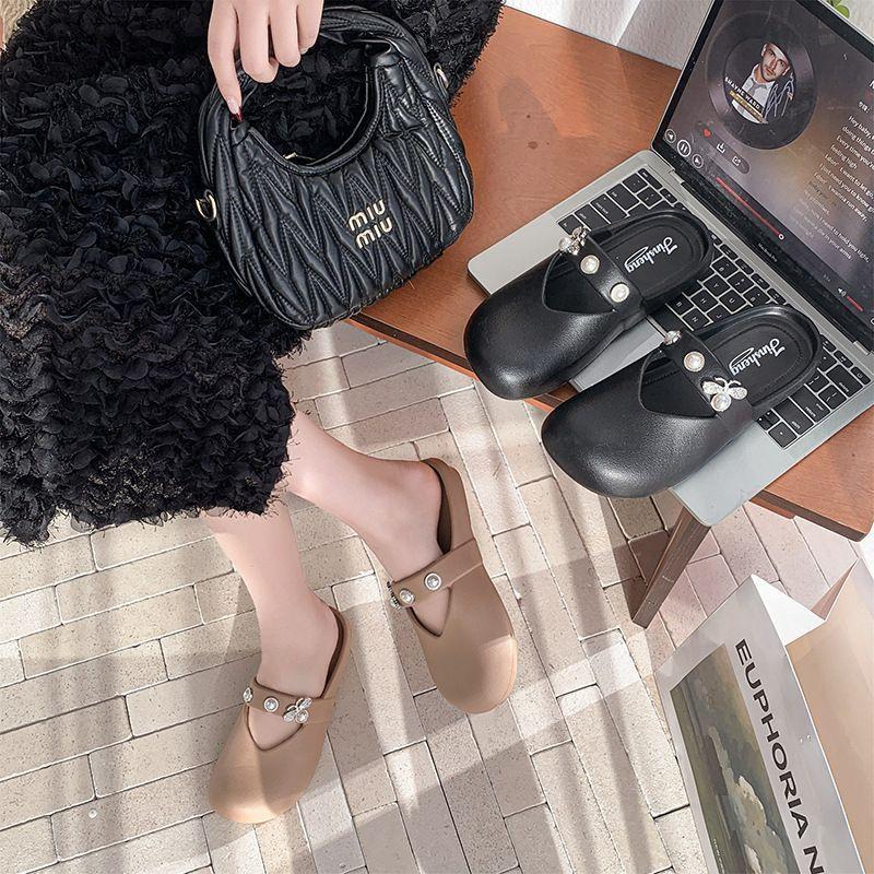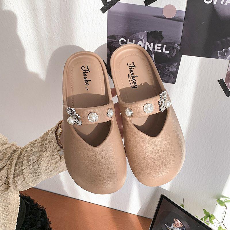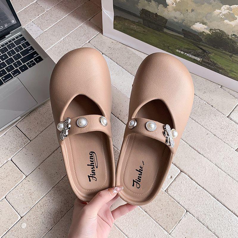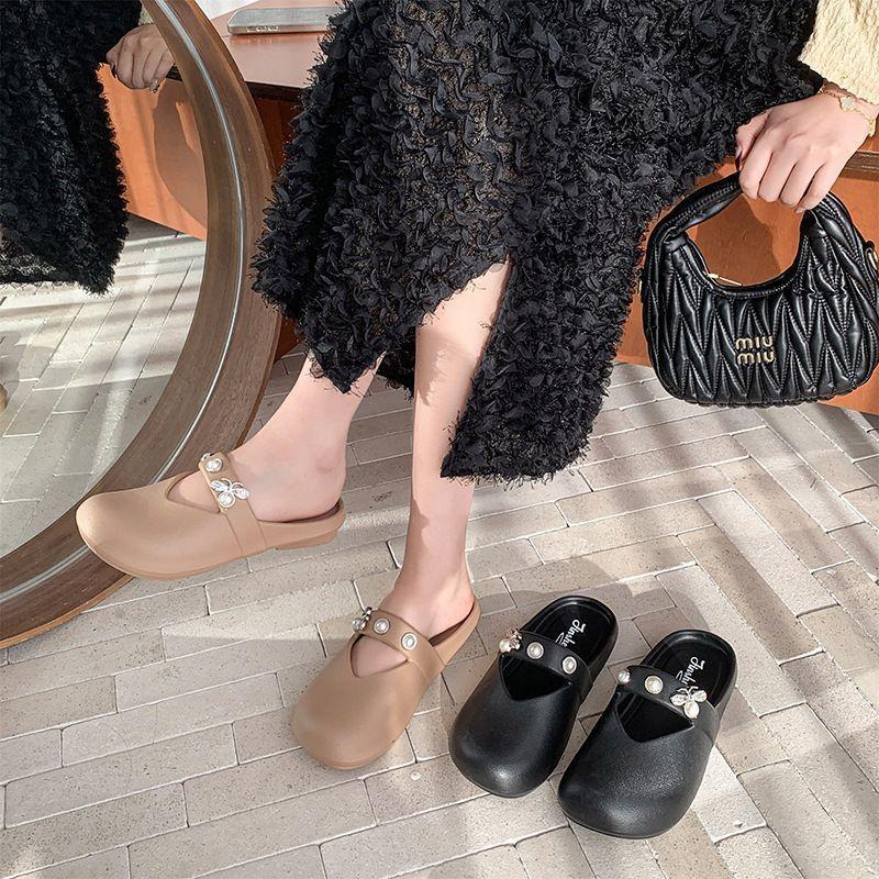 Pantuflas de Casa Antideslizantes Pantuflas de Pedrería de Suela Suave para Mujer 2025 Verano Nuevo Estilo Pantuflas de Mujer Versátiles y a la Moda de una Pierna