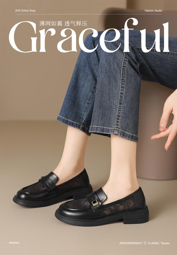 Zhr Mocasines de Malla Transpirable Flats Ligeros 2025 Verano Nuevo Estilo Slip-On Zapatos Pequeños de Cuero Cómodos Zapatos para Ropa de Trabajo