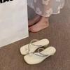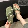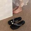 Zapatillas planas casuales de estilo resort diario para mujer para usar al aire libre 2024 Verano Nuevas Sandalias de pedrería con perlas