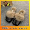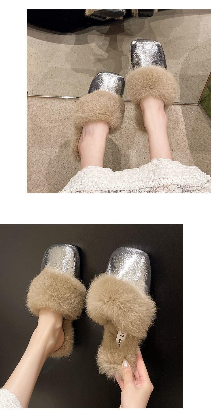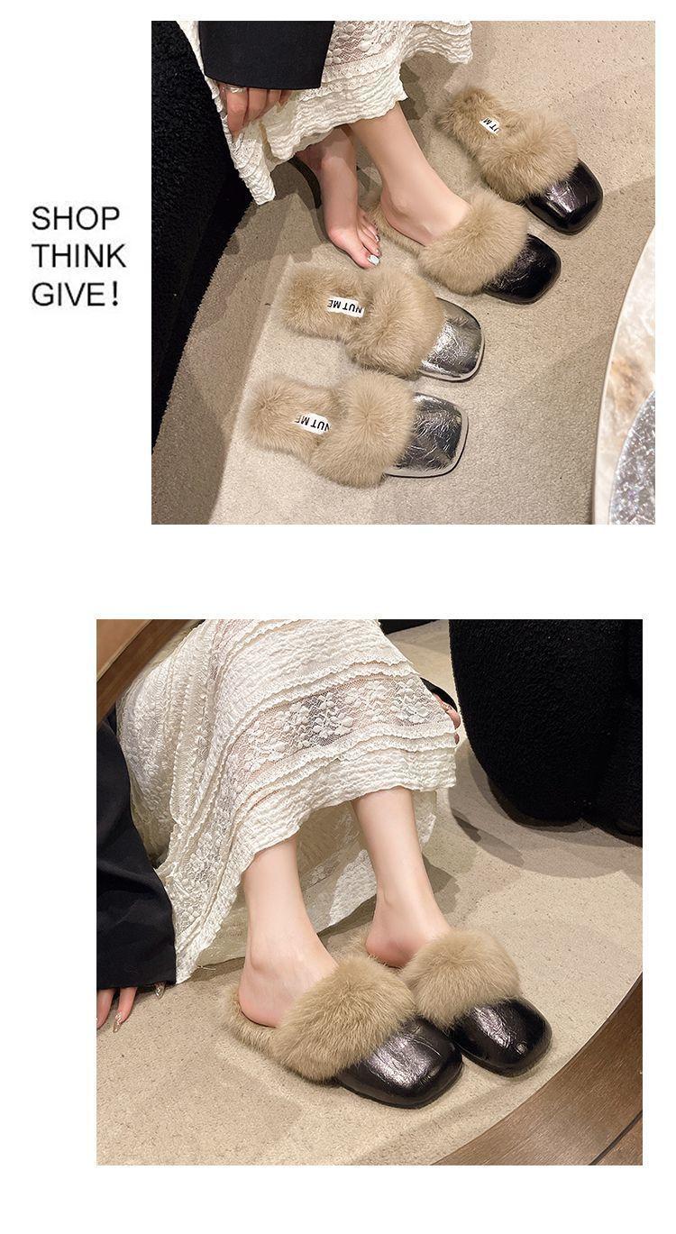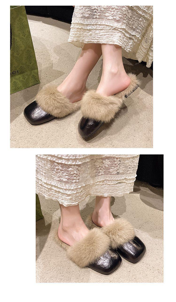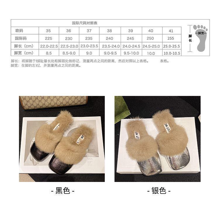 Zapatillas peludas de moda para exteriores para mujer 2025 Otoño e Invierno Nuevas Mulas planas perezosas Peludas de punta cerrada Medias zapatillas