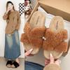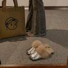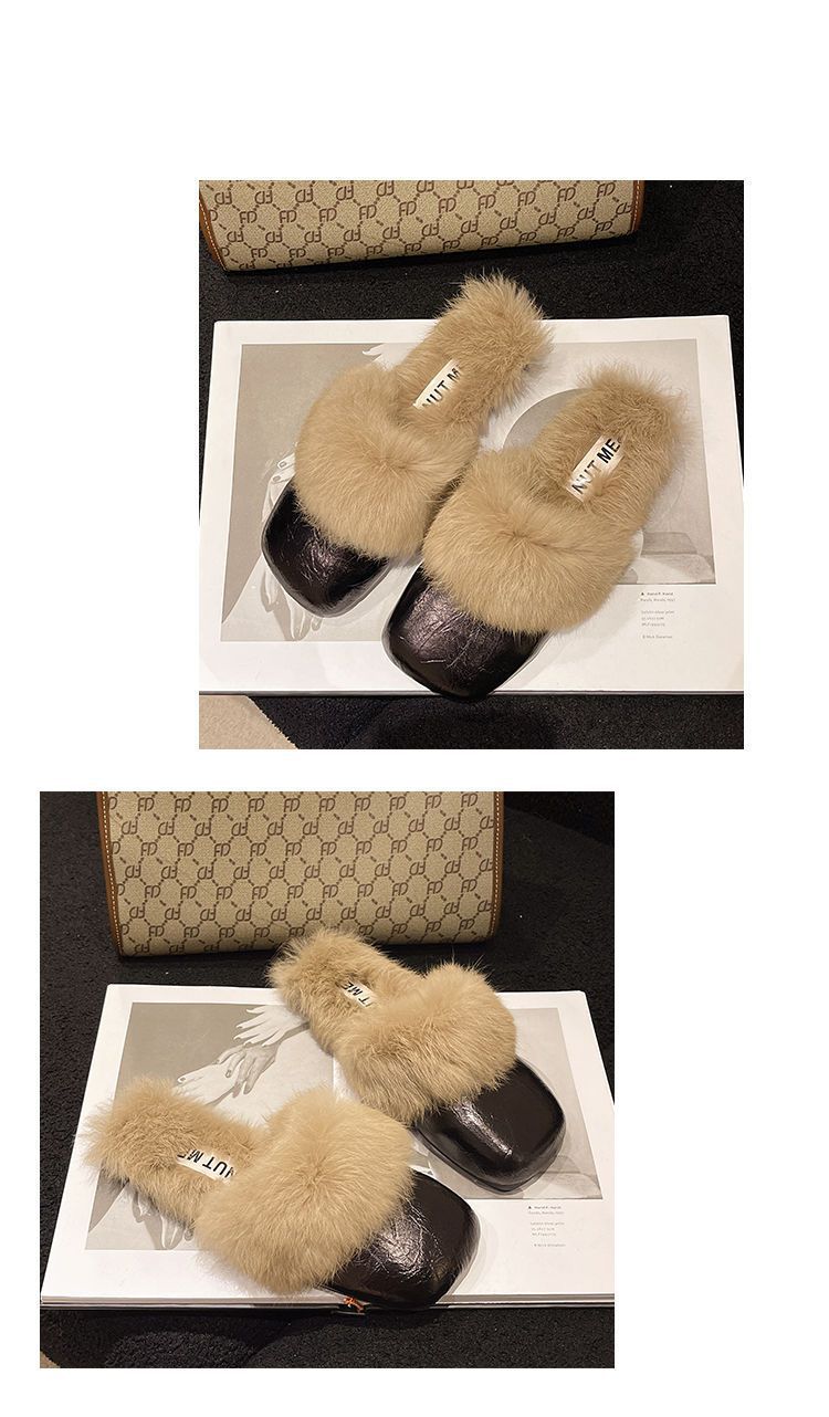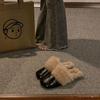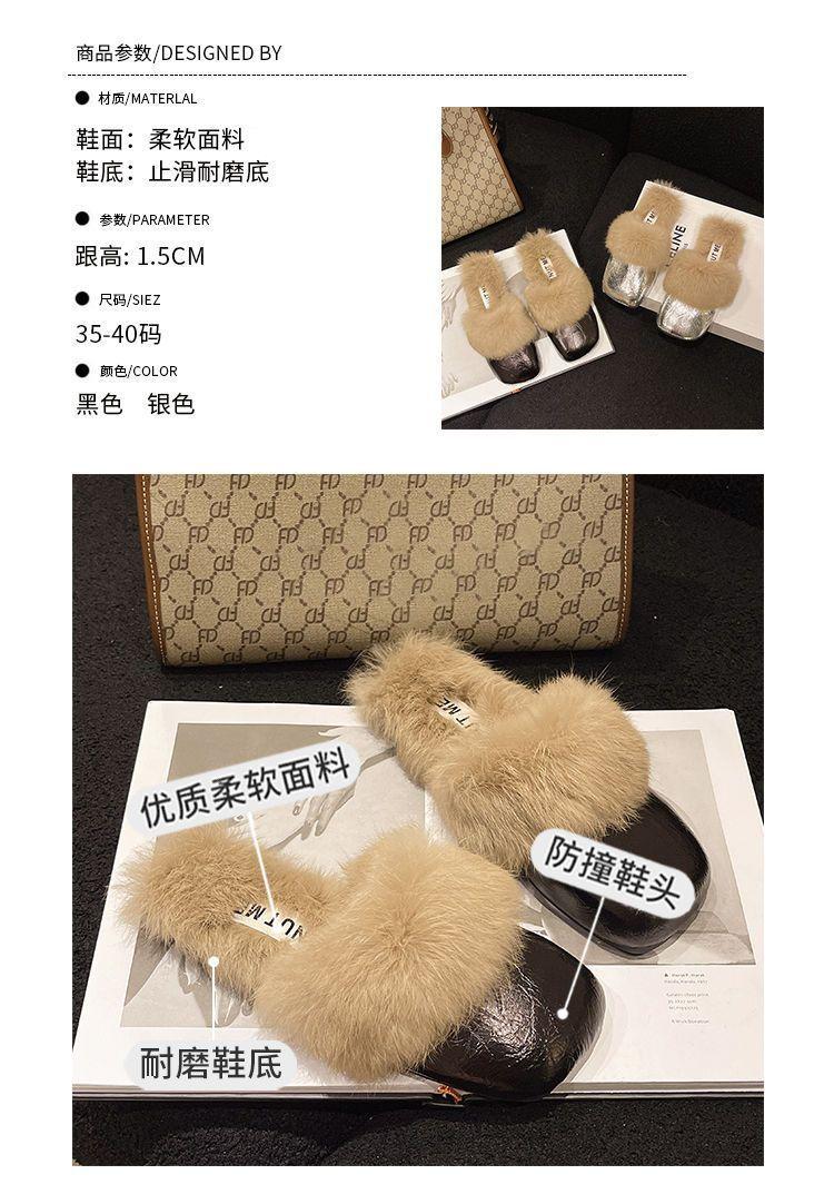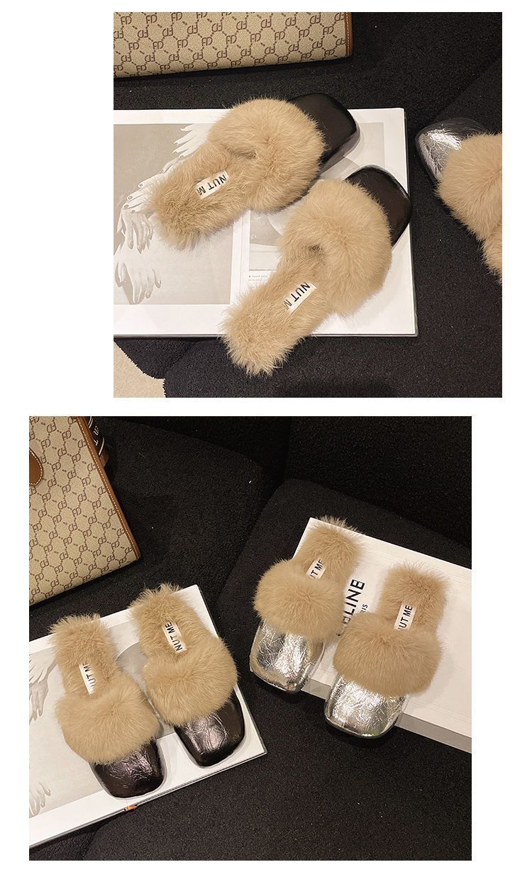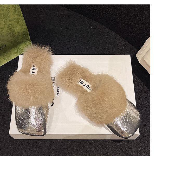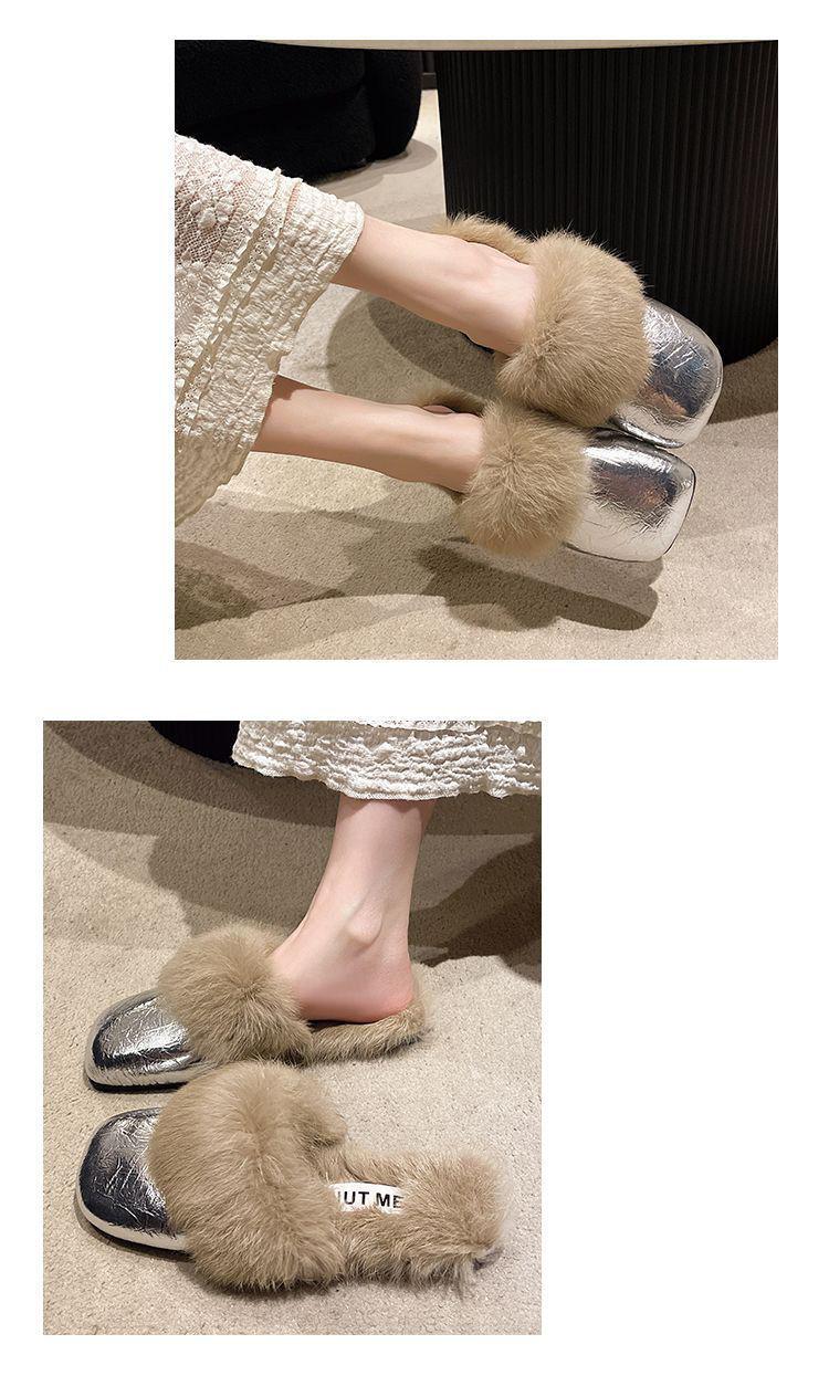 Zapatillas peludas de moda para exteriores para mujer 2025 Otoño e Invierno Nuevas Mulas planas perezosas Peludas de punta cerrada Medias zapatillas