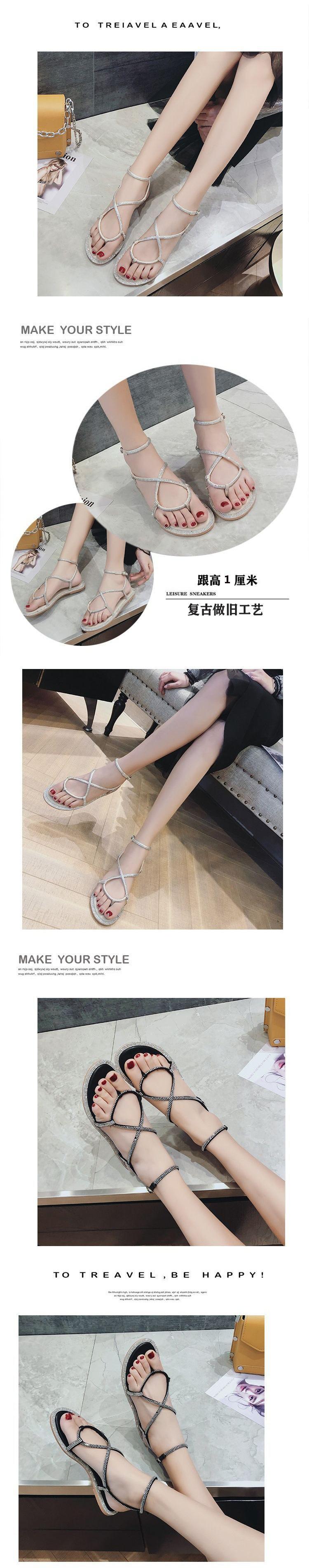 Sandalias Romanas Sandalias de Verano de Moda con Tanga y Envoltura en Forma de Serpiente de Pedrería Estilo Hada Plano 2023 Zapatos Planos