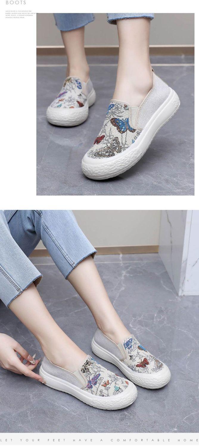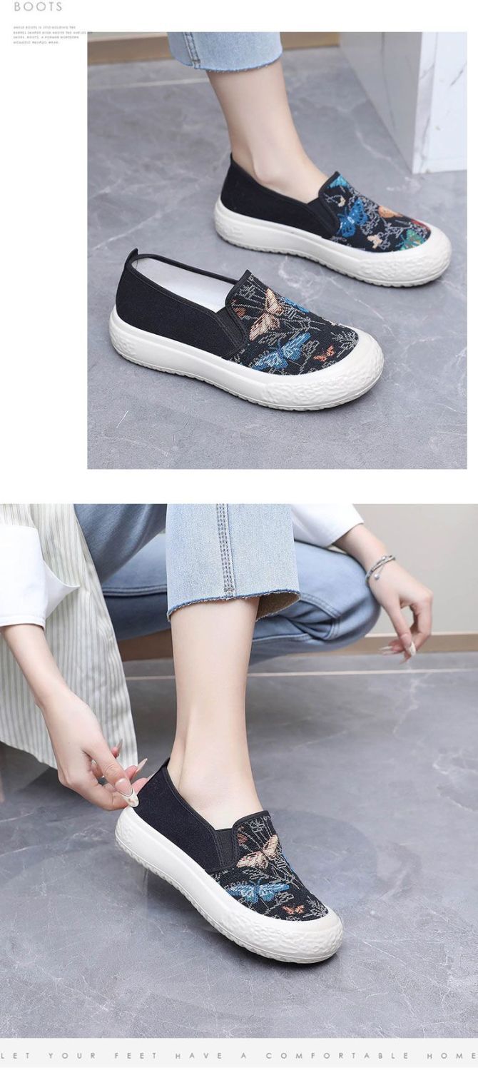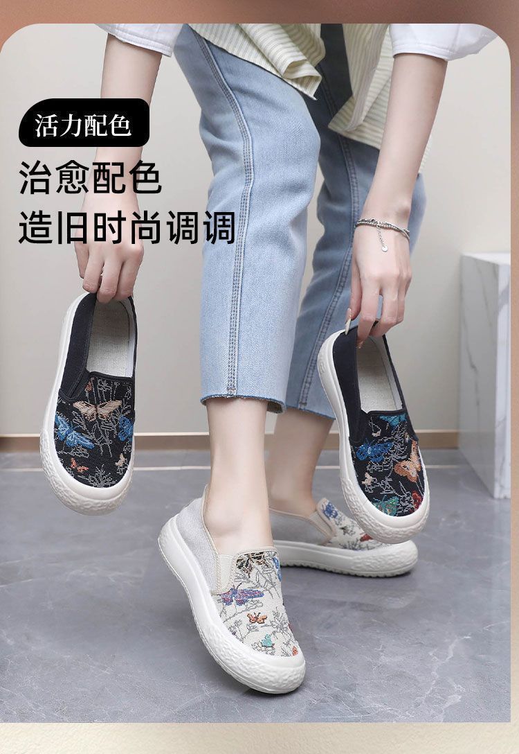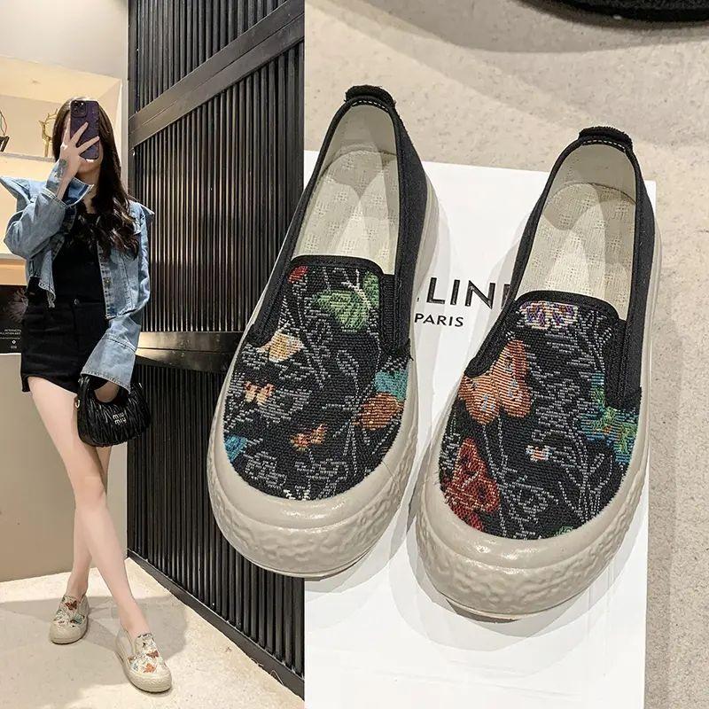 Mocasines de Lona para Mujer Primavera 2025 Nuevos Zapatos de Lona para Mujer Perezosos Slip-On de Suela Gruesa Zapatos de Pescador Moda Casual Zapatos de Tela para Mujer