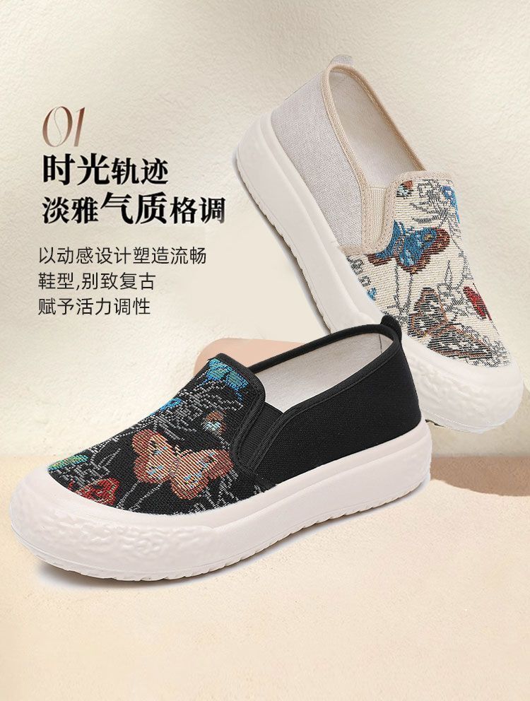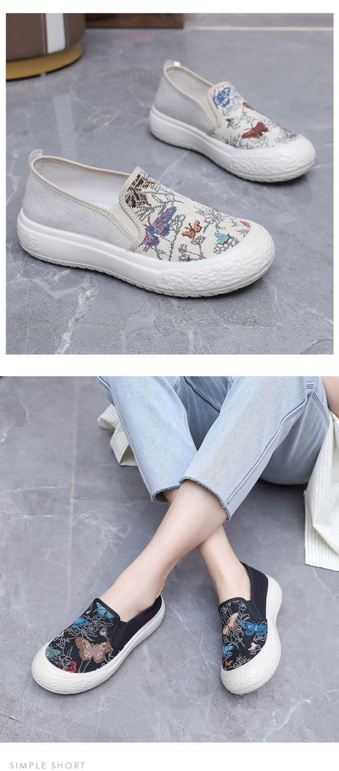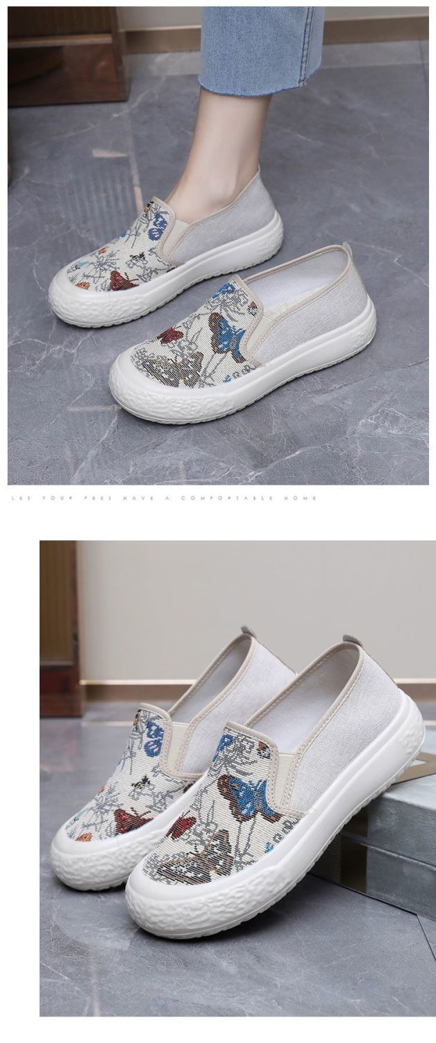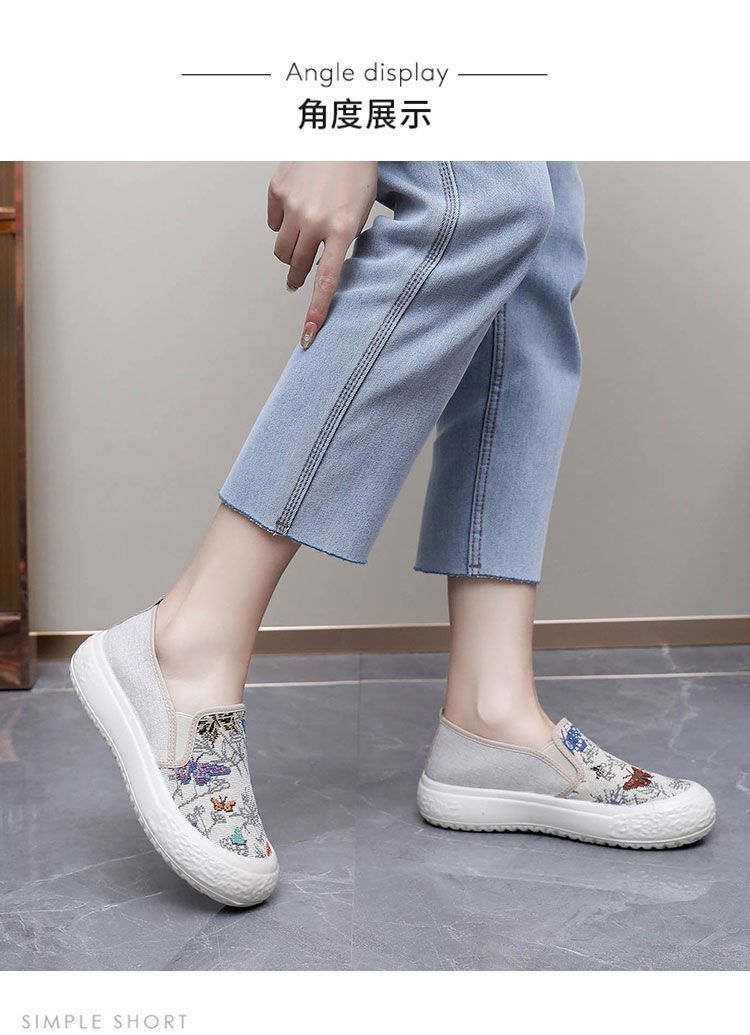 Mocasines de Lona para Mujer Primavera 2025 Nuevos Zapatos de Lona para Mujer Perezosos Slip-On de Suela Gruesa Zapatos de Pescador Moda Casual Zapatos de Tela para Mujer