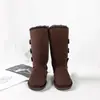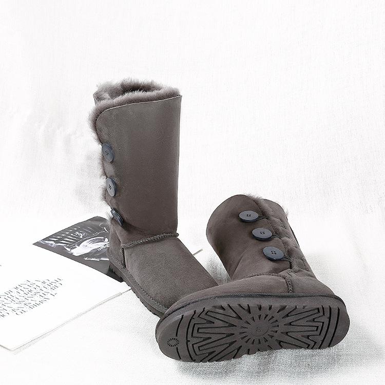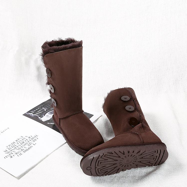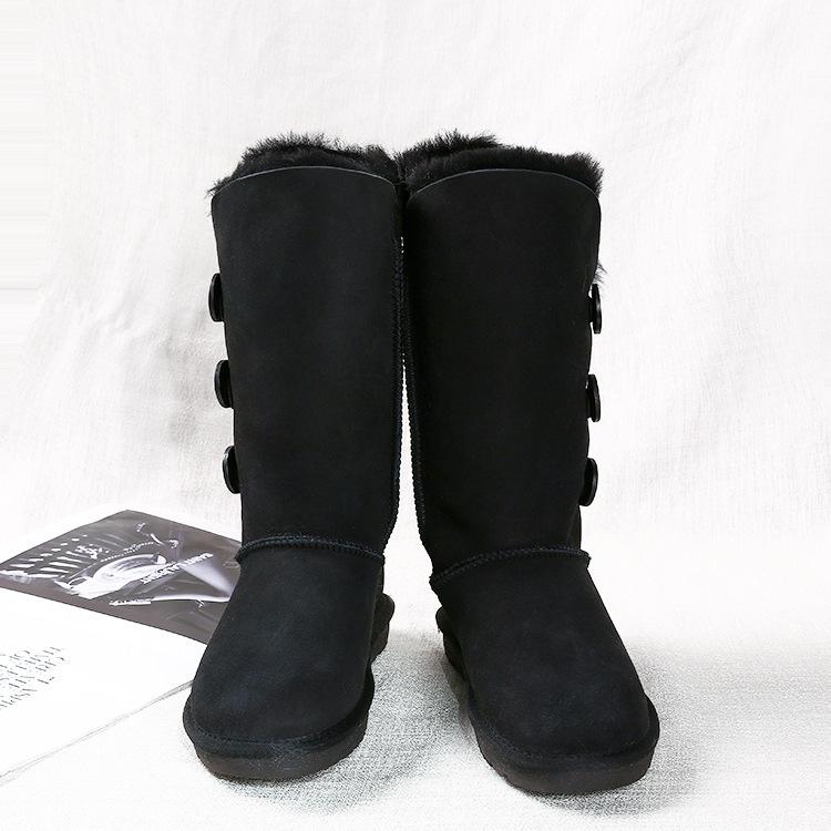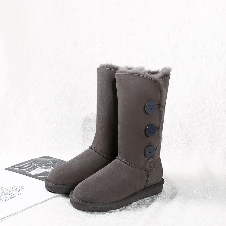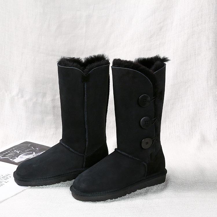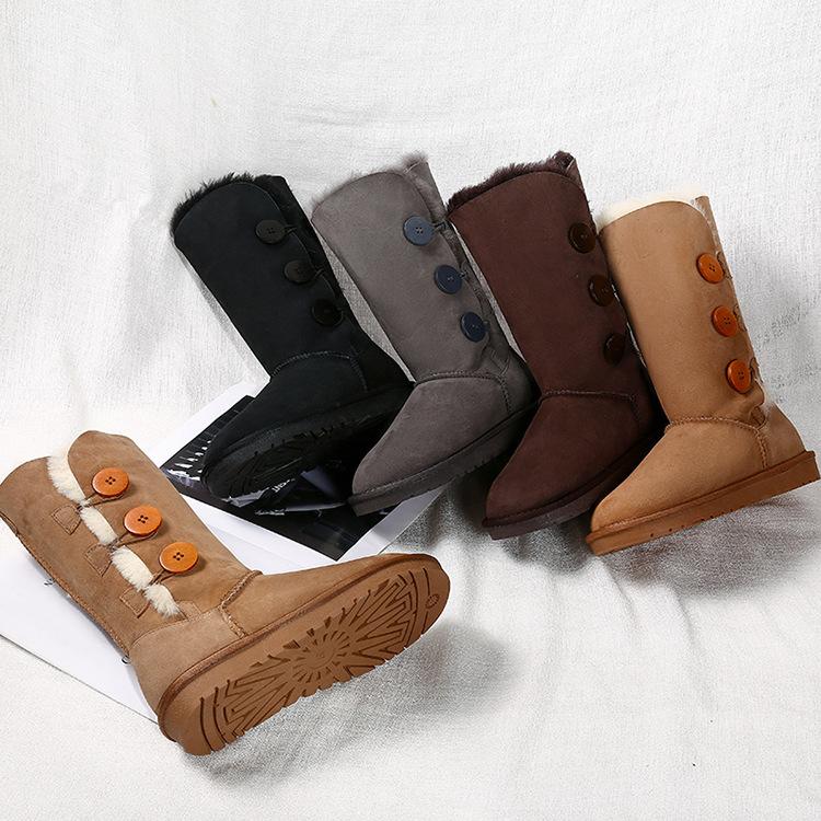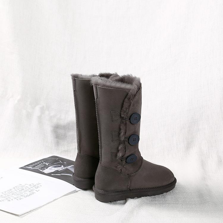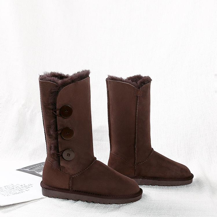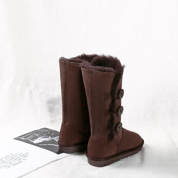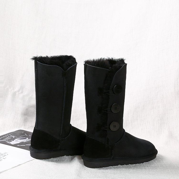 Botas de Nieve Clásicas de Piel 1873 para Mujer Otoño e Invierno Cálidas de Caña Alta para Mujer Botas con Botón de Lana Gruesa para Exteriores Zapatos de Mujer