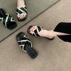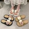 Sandalias de pato mandarín famosas en internet estilo nocturno con pedrería de clip sandalias y pantuflas de suela gruesa verano 2024 nuevos zapatos de playa para mujer