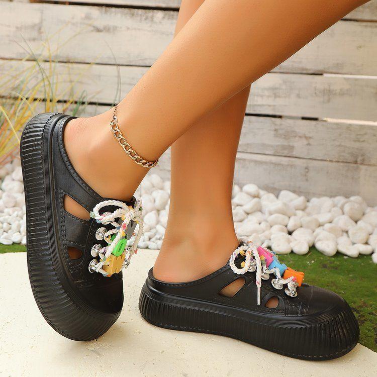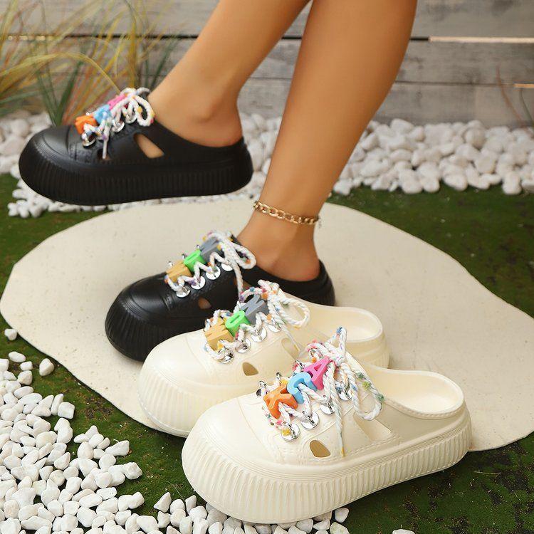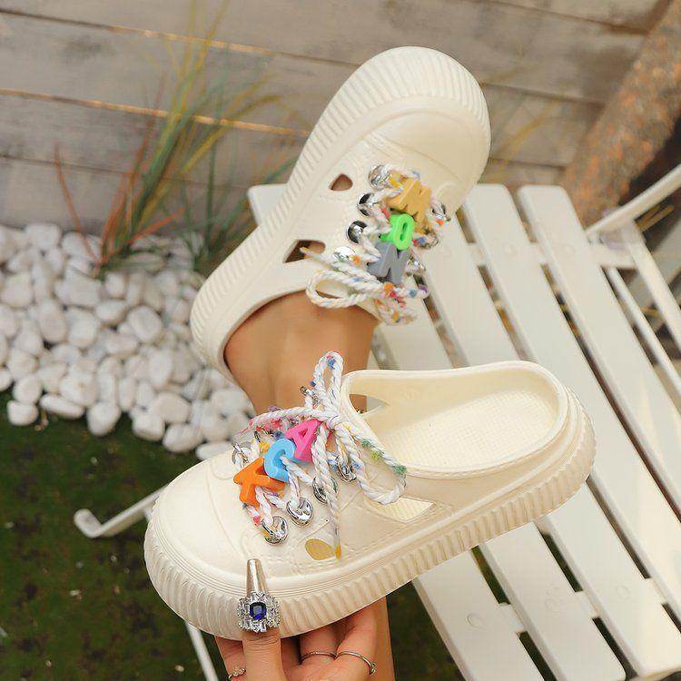 Sandalias de Playa de Diseño Nicho de Moda con Punta Cerrada para Mujer, Pantuflas Silenciosas para el Hogar, Nuevo Estilo Verano y Otoño 2025