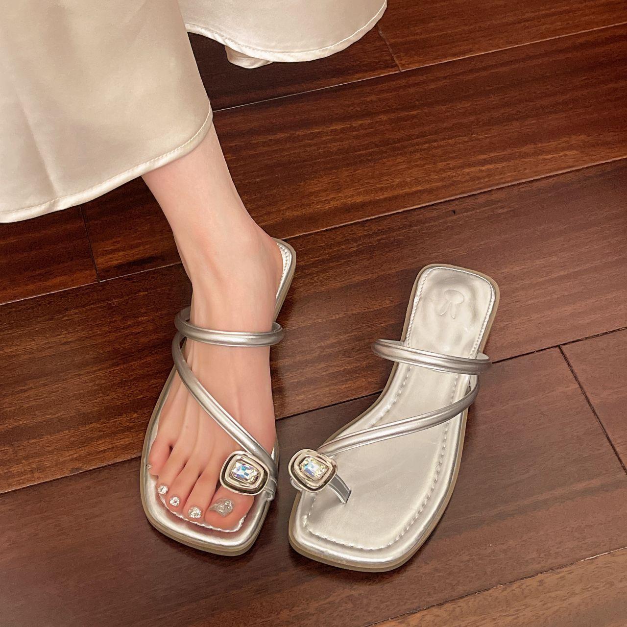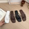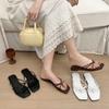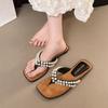 Sandalias de Tanga de Estilo Nuevo 2025 para Mujer, Verano para Exterior, Chanclas de Tacón Bajo, Moda de Celebridad de Internet, Flats de Punta Cuadrada, Chanclas de Playa