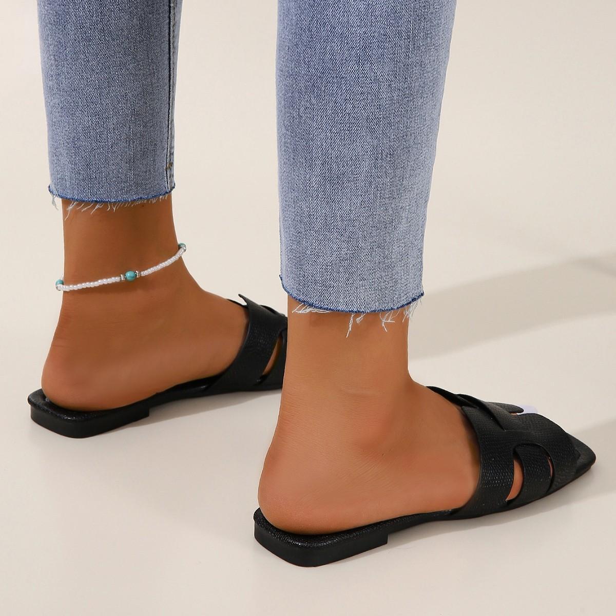 Zapatillas planas de color puro estilo coreano para mujer Zapatillas de punta cuadrada europeas y americanas Transpirables Slip-On Zapatillas de casa para mujer