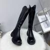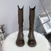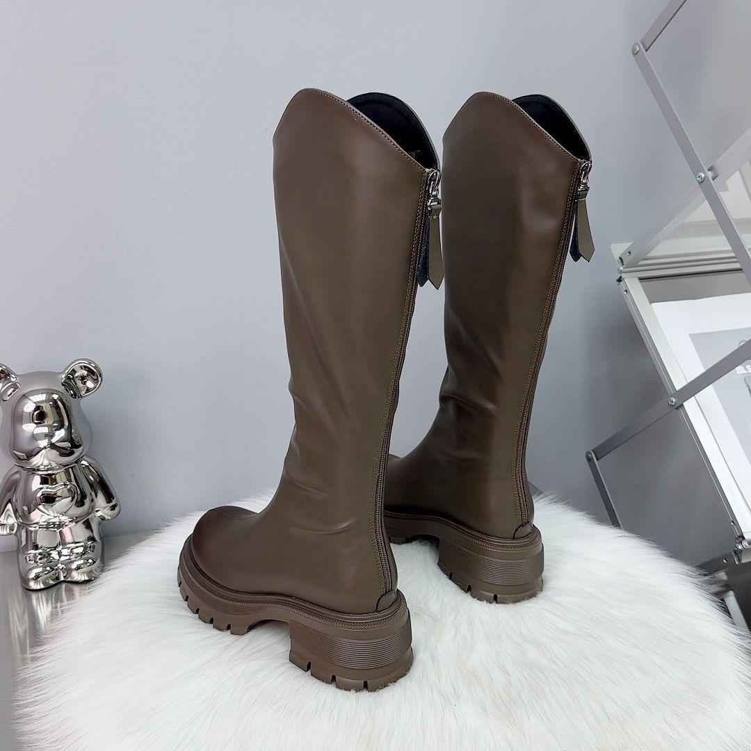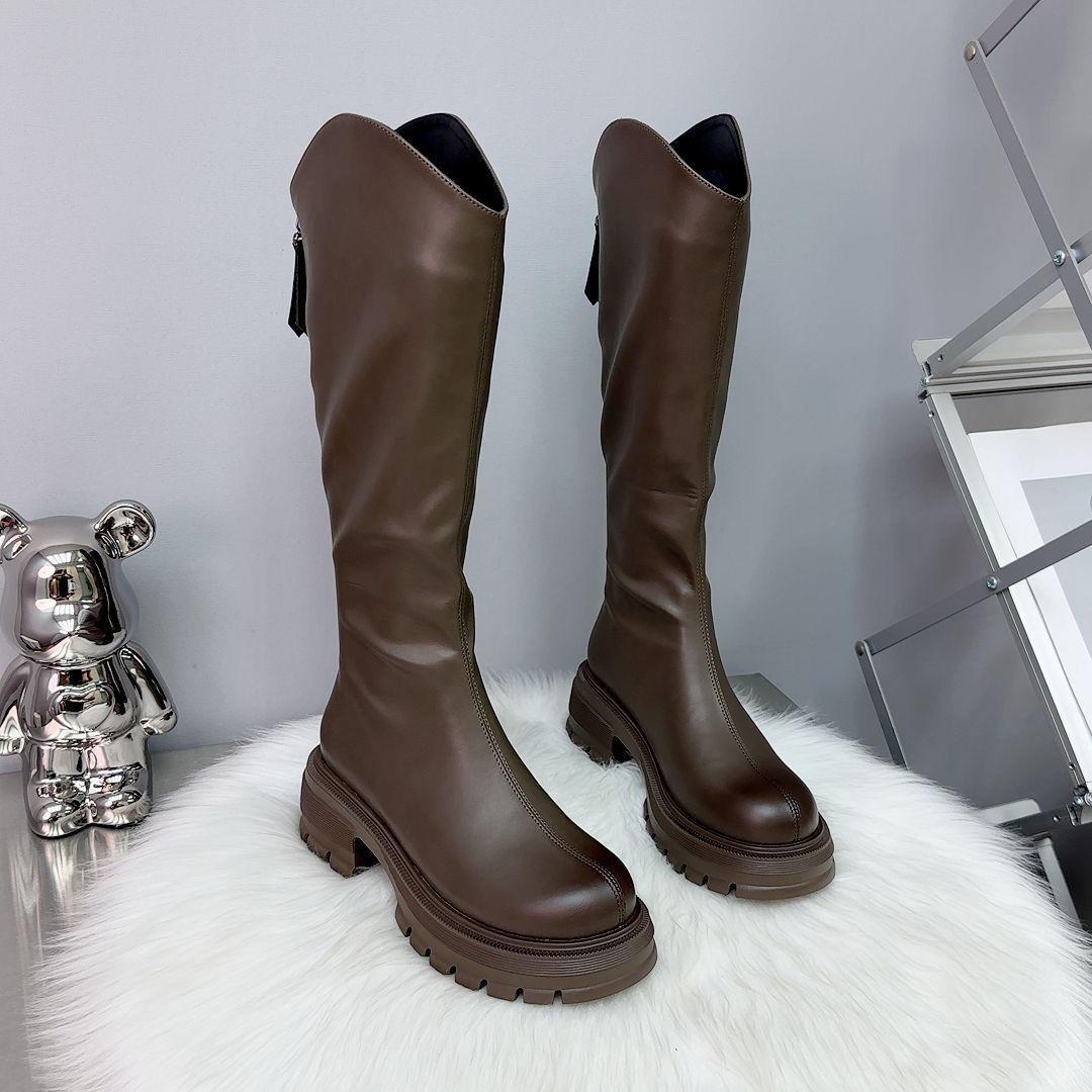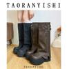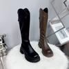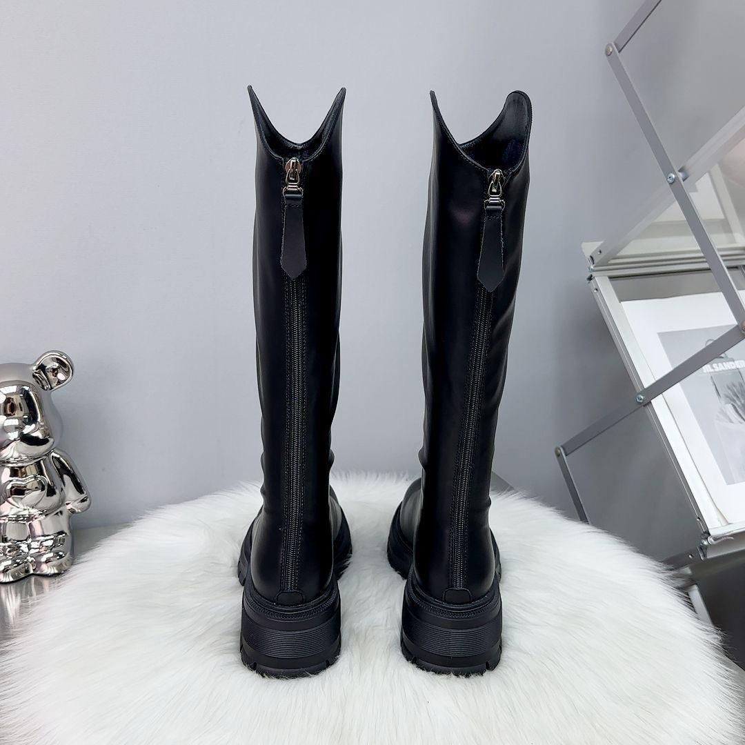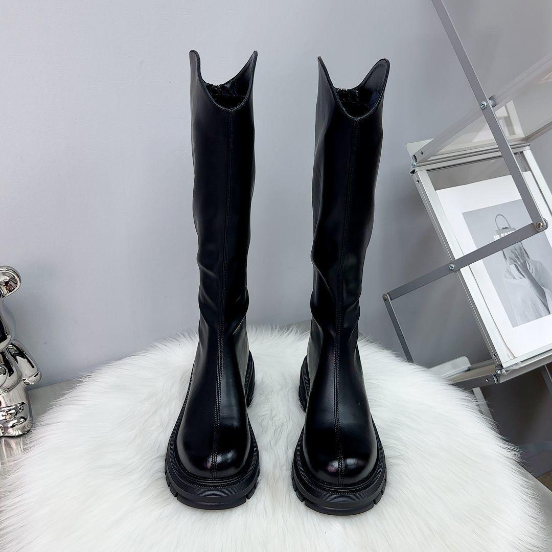Botas Largas de Cuero Suave Estilo Similar a Zhao Lusi 2023 Suela Gruesa Alta Aumentadas Botas de Caballero Tacón de Herradura Botas de Motociclista para Mujer
