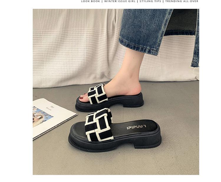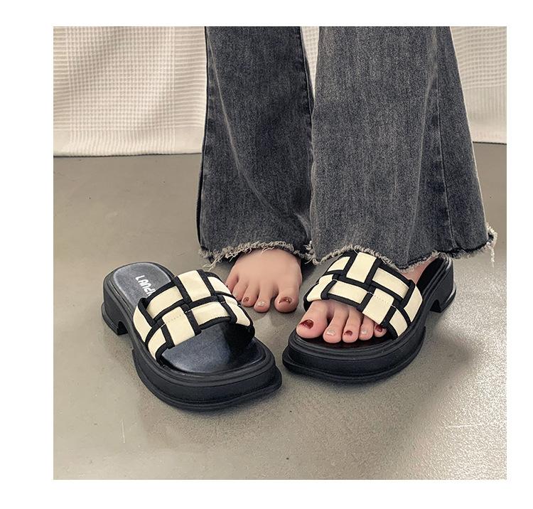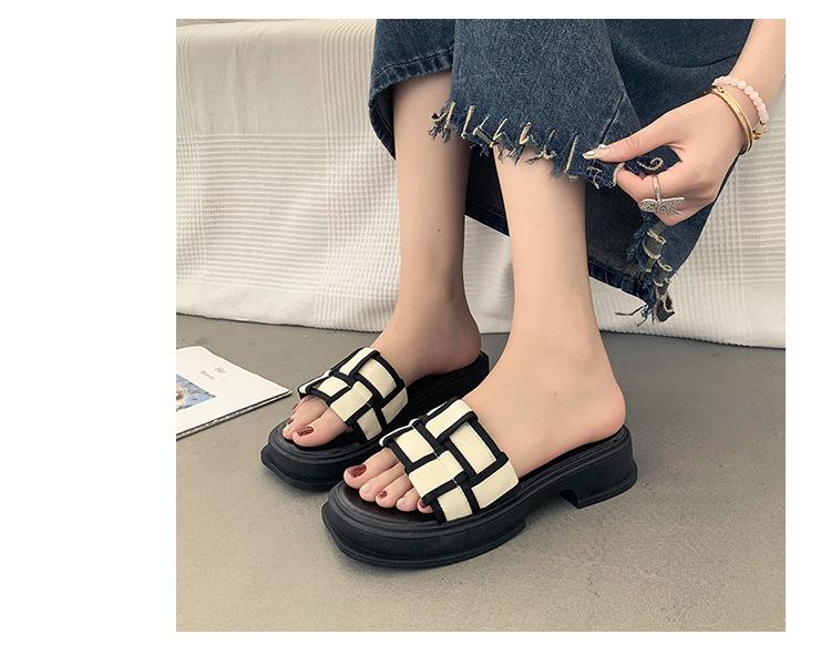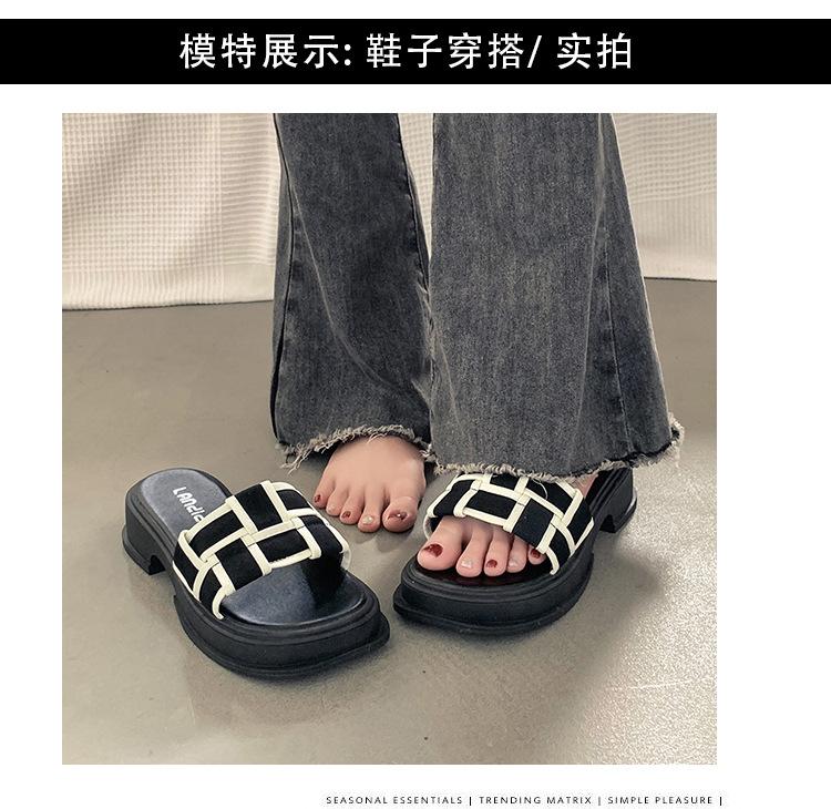 Compra Pantuflas de suela gruesa para mujer verano exterior 2024 nuevo popular en línea sandalias supercalientes para salir a usar zapatos de playa de suela blanda al por mayor en Joom.pro