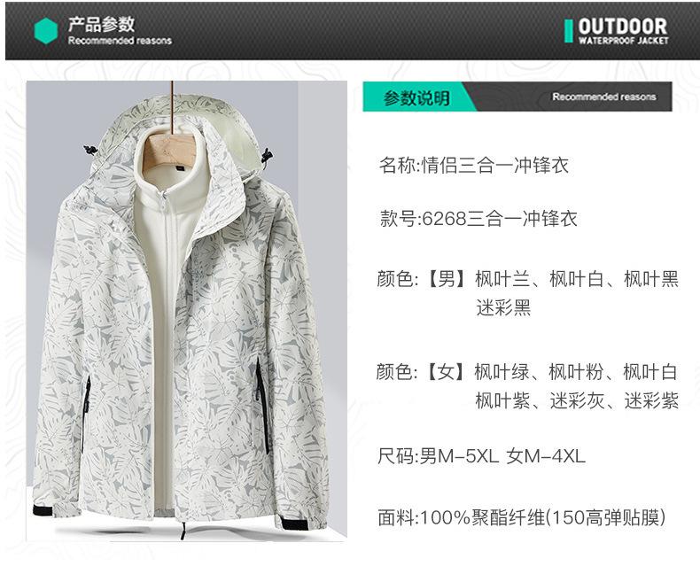 Chaqueta para hombre con forro polar engrosado, traje de montañismo para exteriores, impermeable a prueba de viento, abrigo desmontable tres en uno, otoño e invierno Nuevo