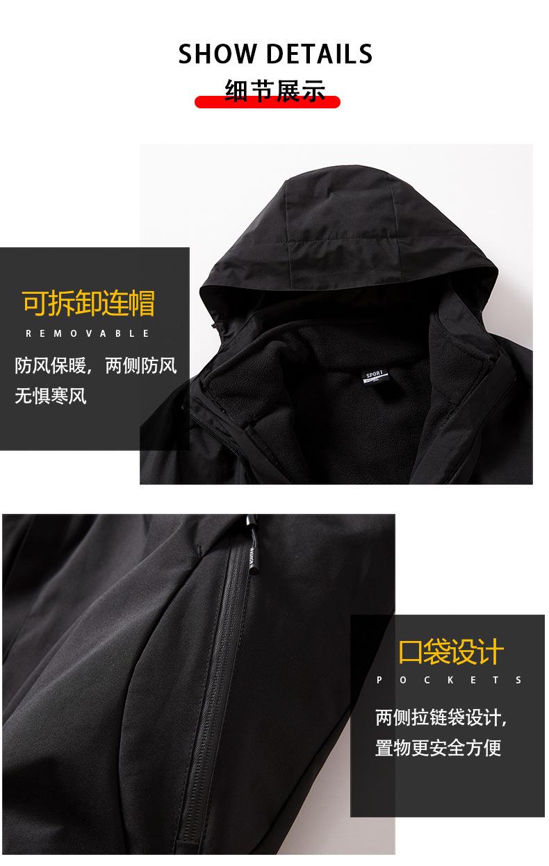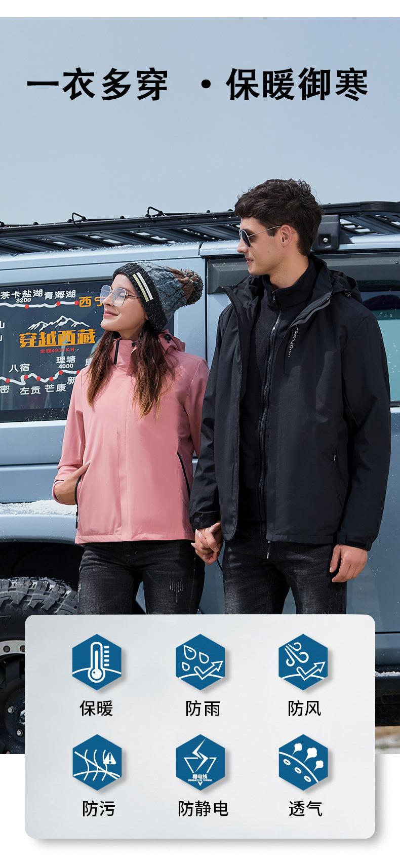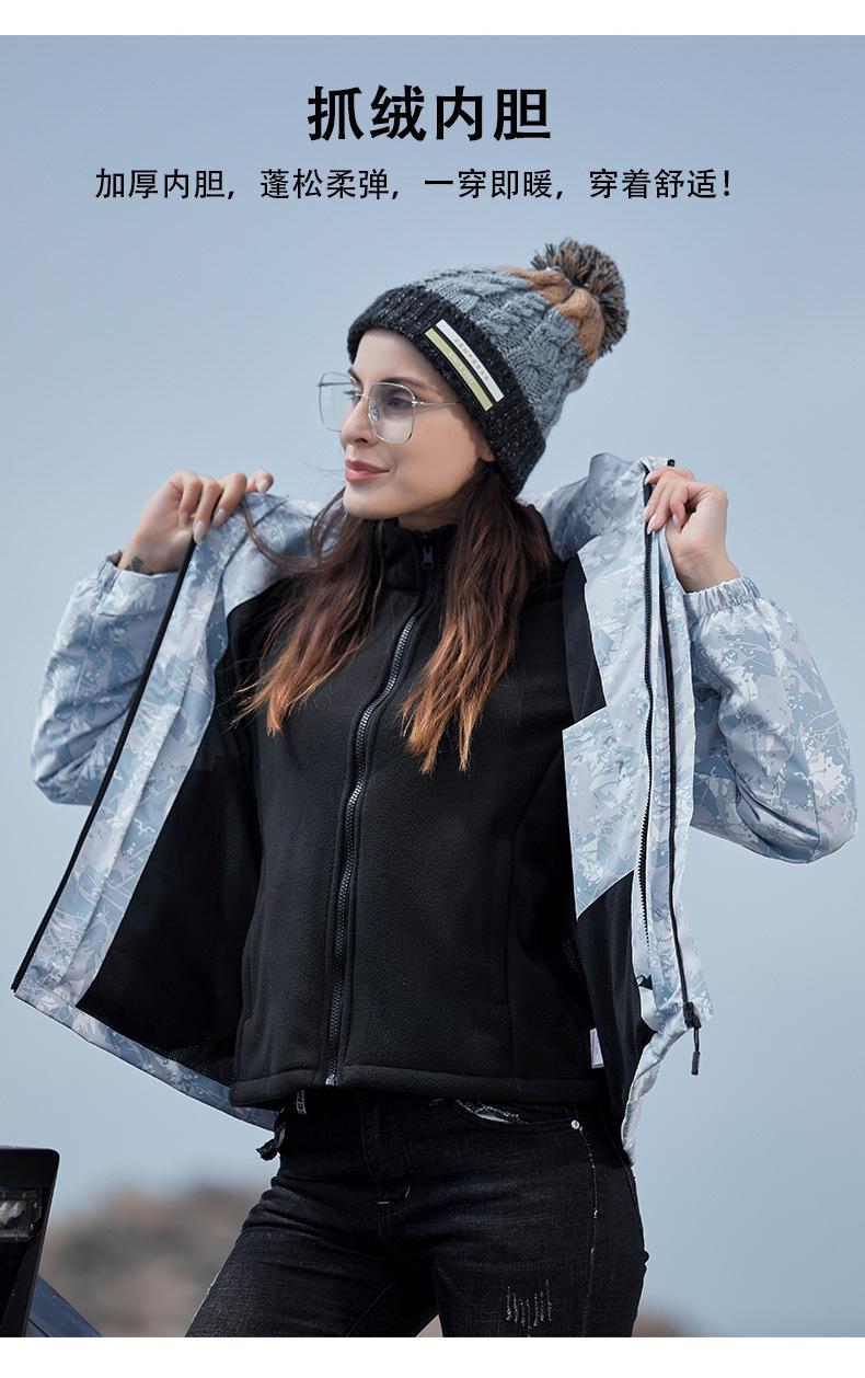 Chaqueta de exterior de otoño e invierno para hombre y mujer, traje de dos piezas desmontable tres en uno, forro polar, grueso, impermeable, transpirable, para montañismo
