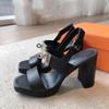 Sandalias de Tacón Grueso para Mujer Comercio Exterior Europeo y Americano Talla Grande Verano Nuevo Punta Cuadrada Correa al Tobillo Sandalias Europeas y Americanas de Tacón Alto