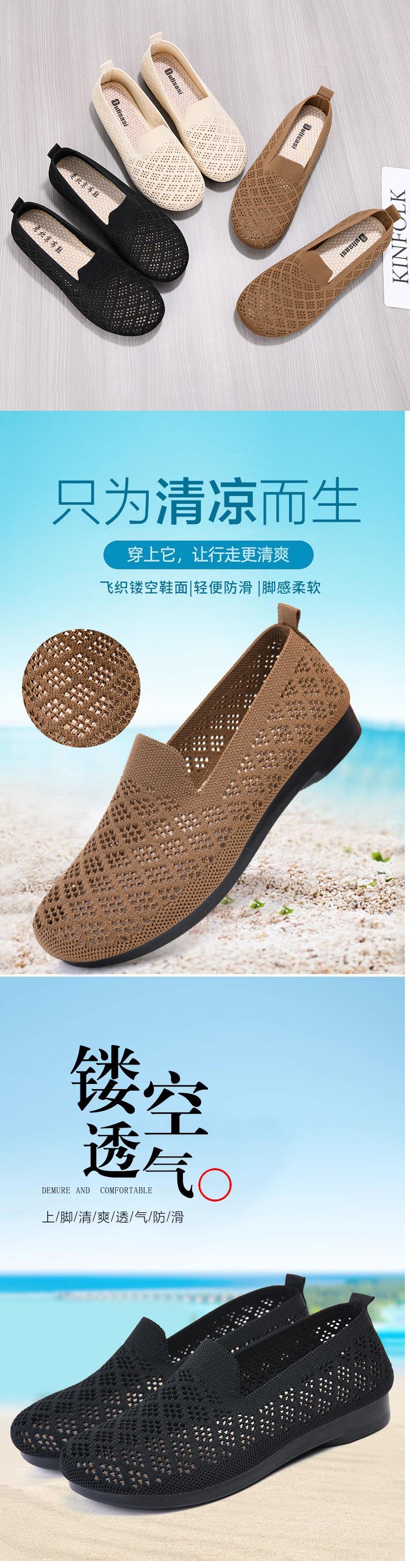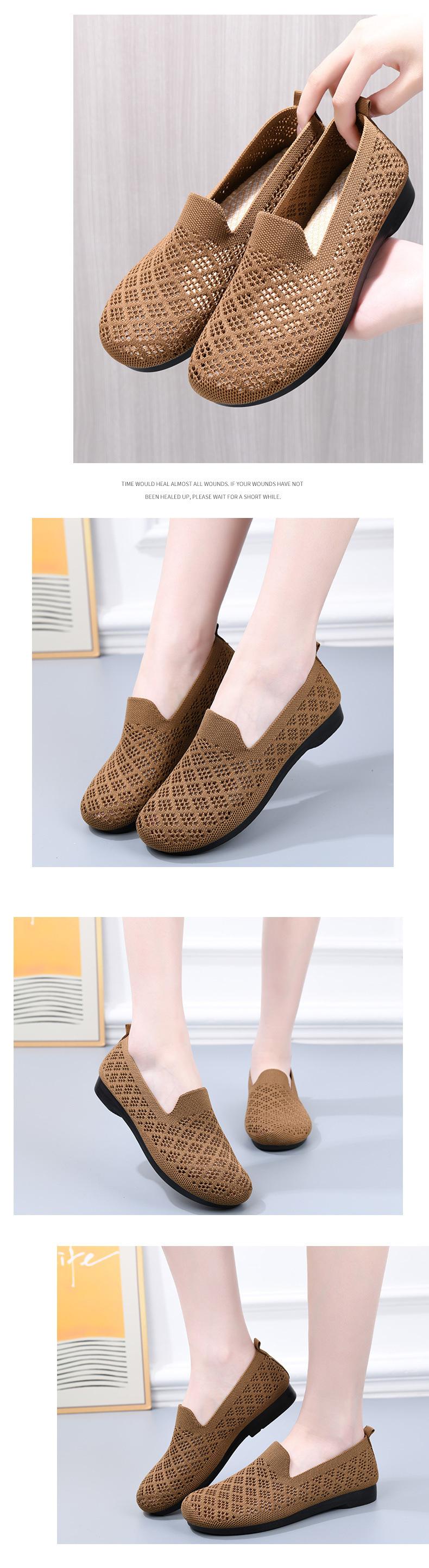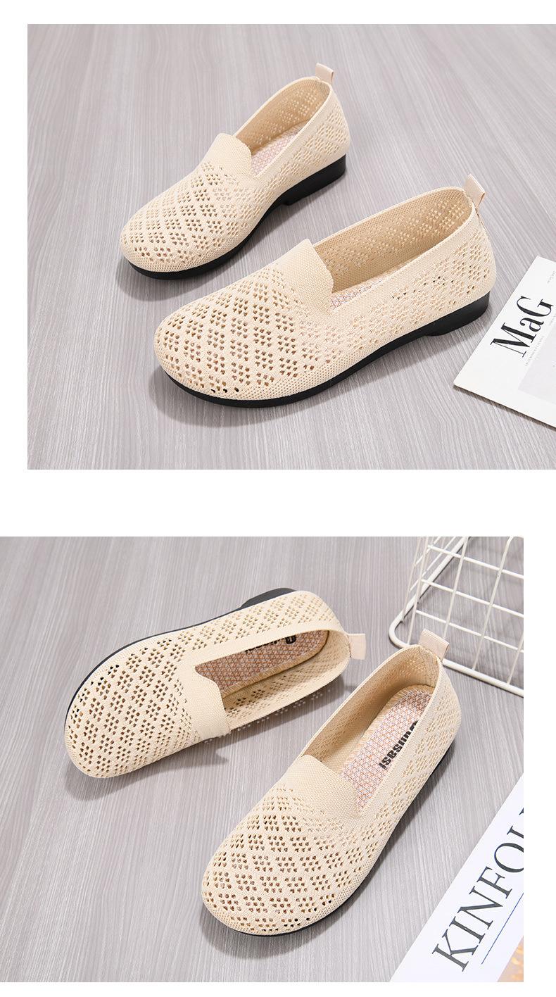 Compra Verano Nuevo Estilo Suela Suave Superficie Suave Moda Casual Malla Tejido Volador Transpirable Zapatos Tipo Beanie Huecos de Boca Baja Zapatos Planos para Mujer al por mayor en Joom.pro