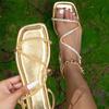 Moda Transfronteriza Sandalias de Punta Cuadrada con Correa Trasera Media 2025 Verano Nuevo Estilo Oro Plataforma Baja Casual Playa Retro