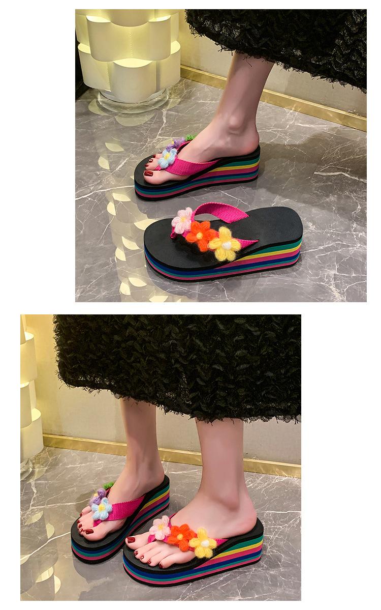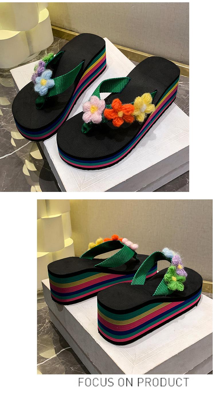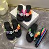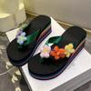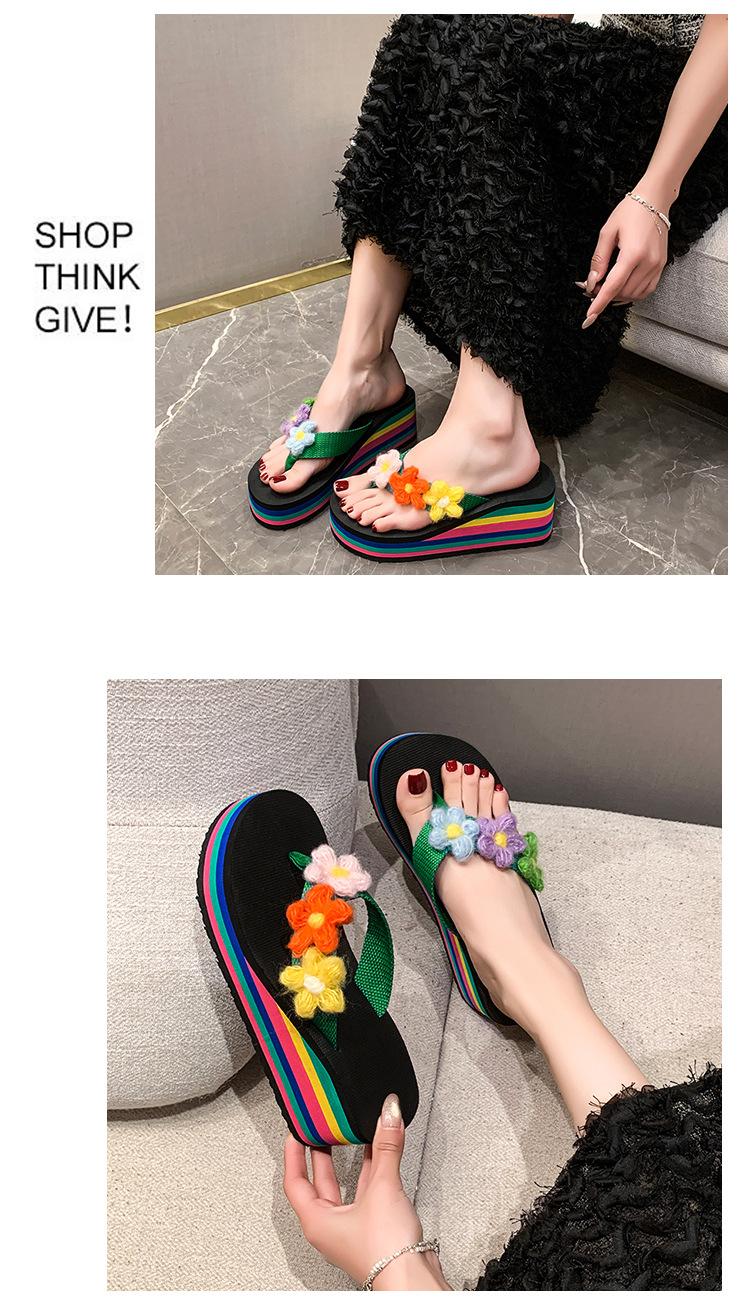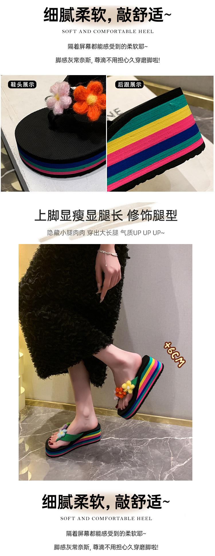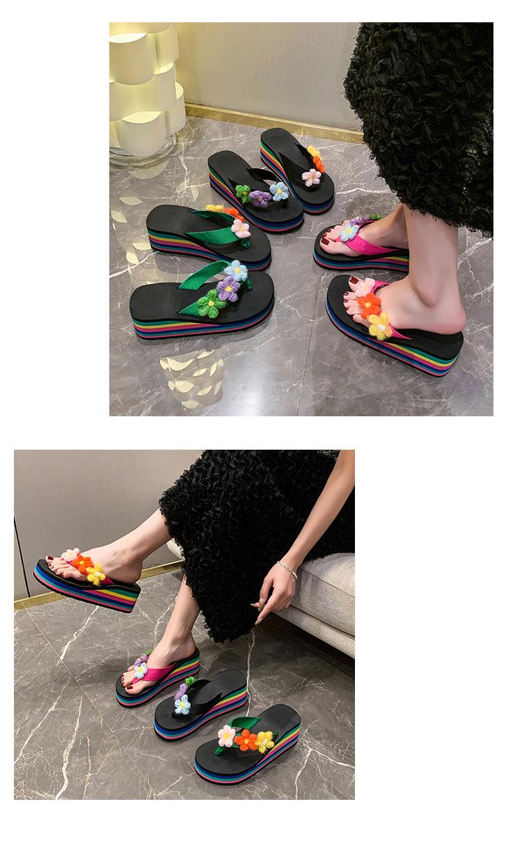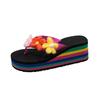 2025 Nuevas Chanclas de Plataforma con Rayas de Arcoíris de Flores Transfronterizas para Mujer, Cuña para Exterior, Casual, Playa, Sandalias de Suela Gruesa