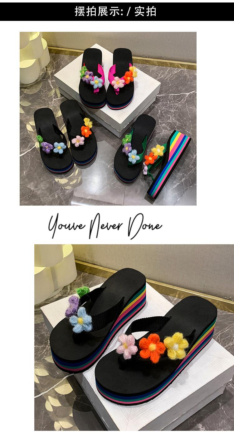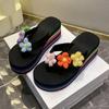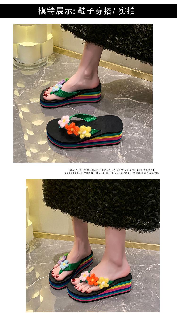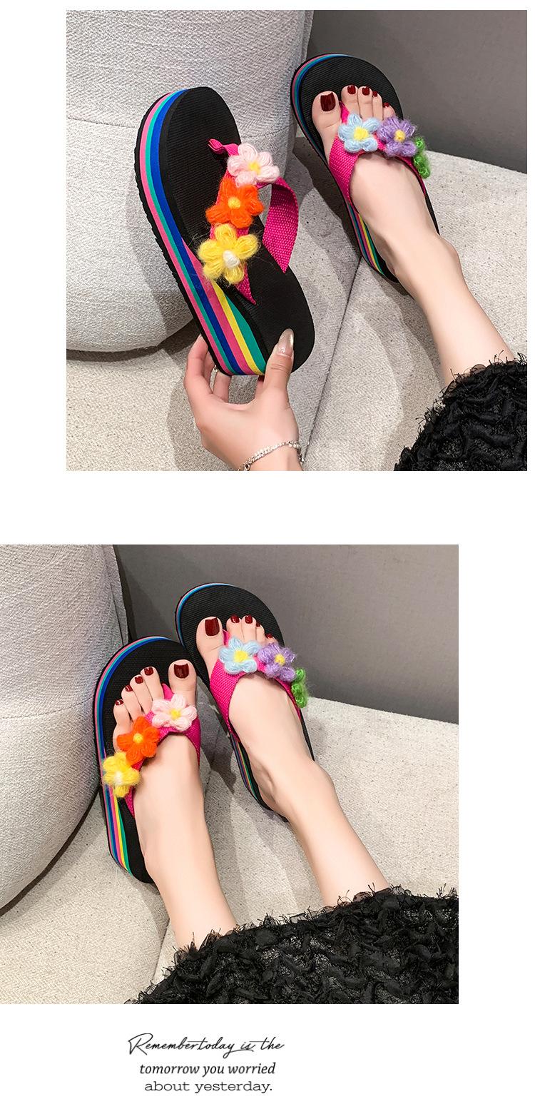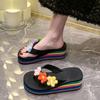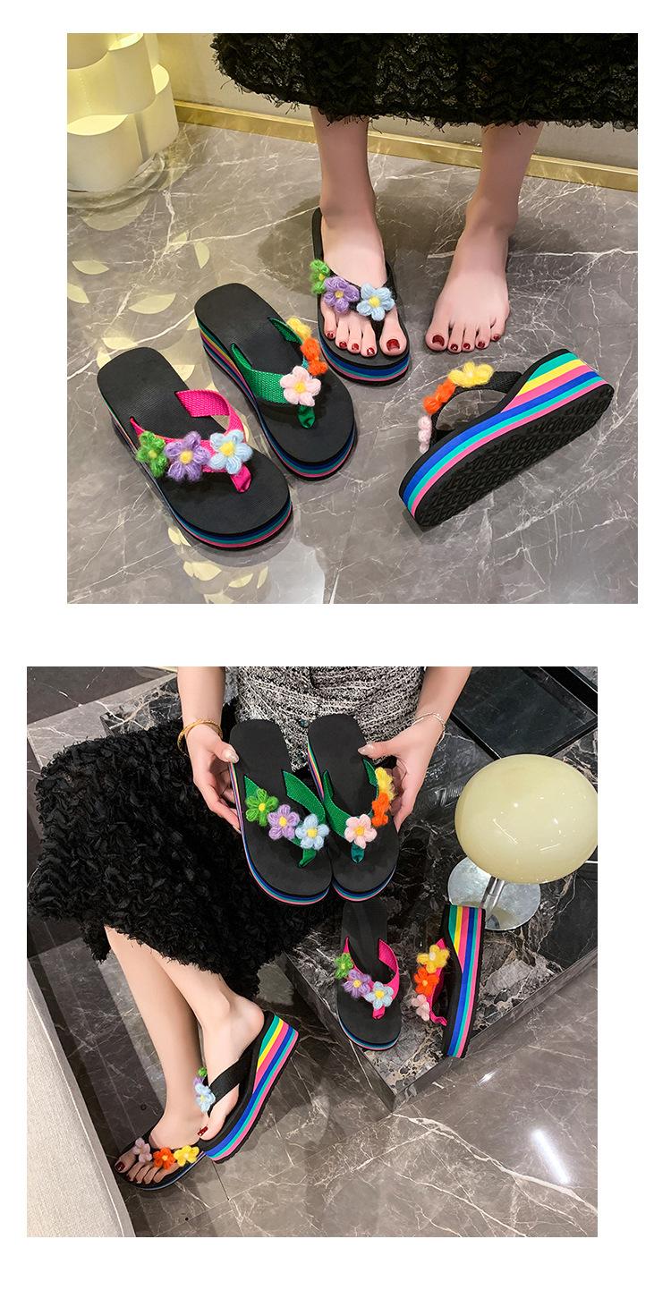 2025 Nuevas Chanclas de Plataforma con Rayas de Arcoíris de Flores Transfronterizas para Mujer, Cuña para Exterior, Casual, Playa, Sandalias de Suela Gruesa