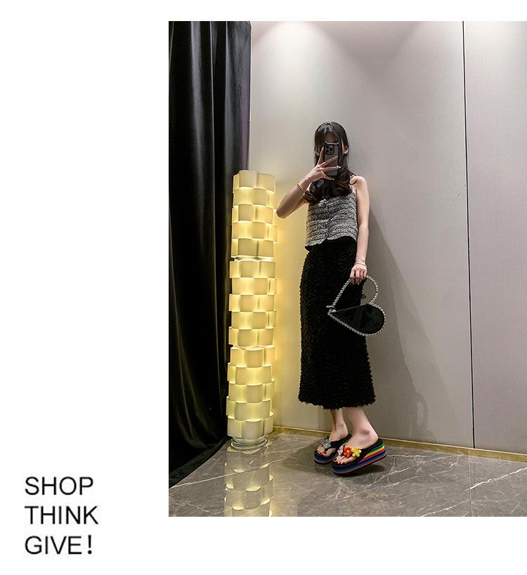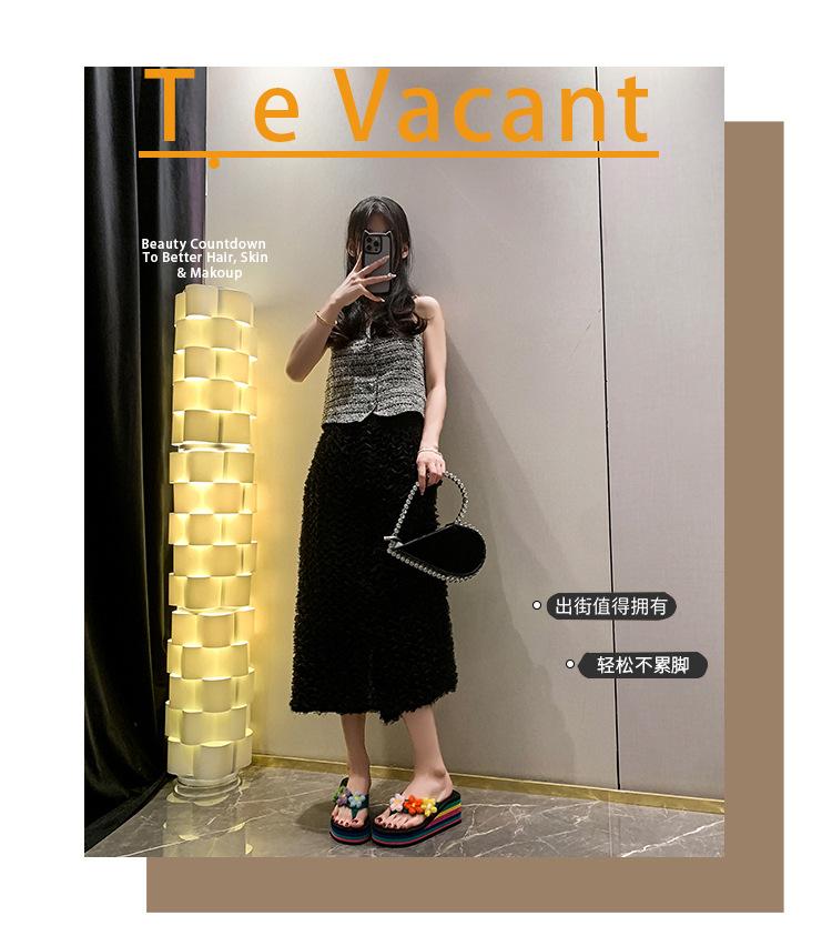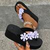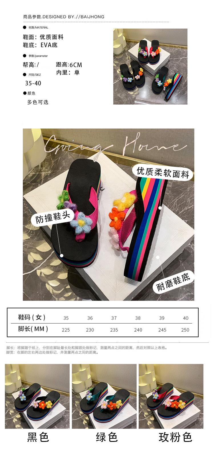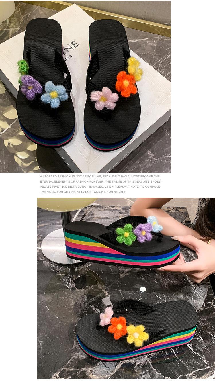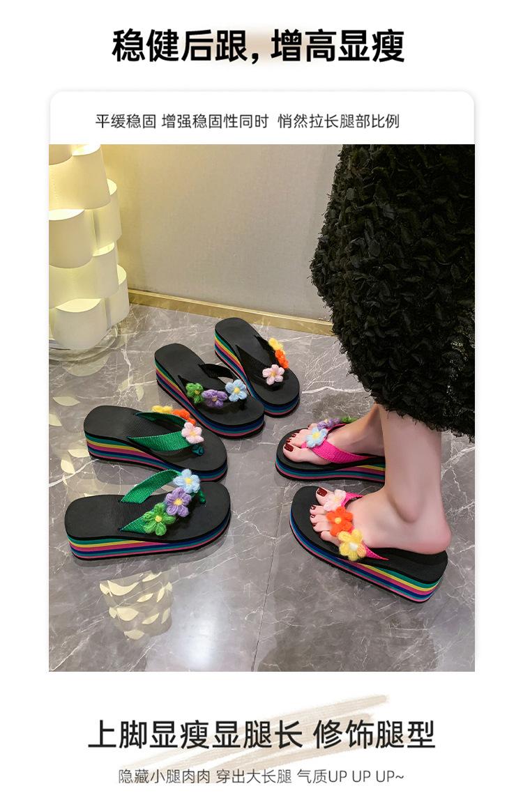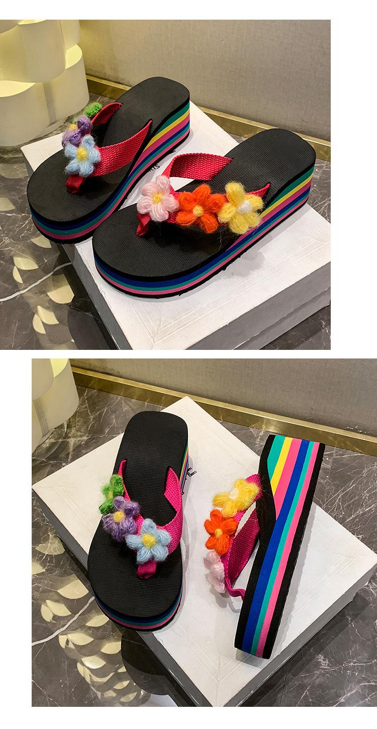 2025 Nuevas Chanclas de Plataforma con Rayas de Arcoíris de Flores Transfronterizas para Mujer, Cuña para Exterior, Casual, Playa, Sandalias de Suela Gruesa