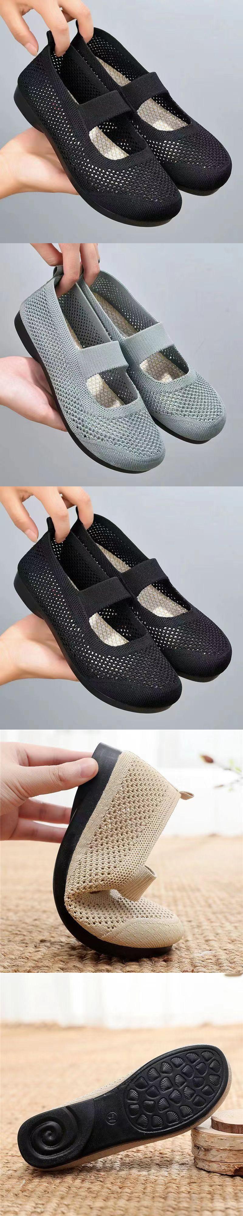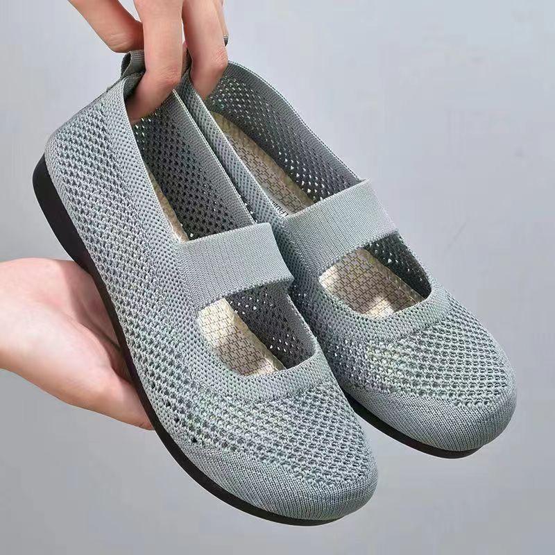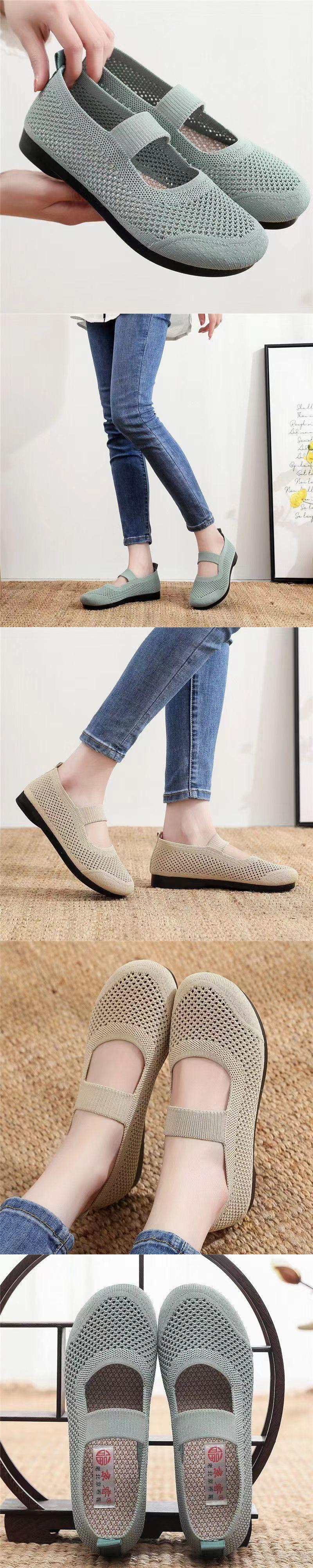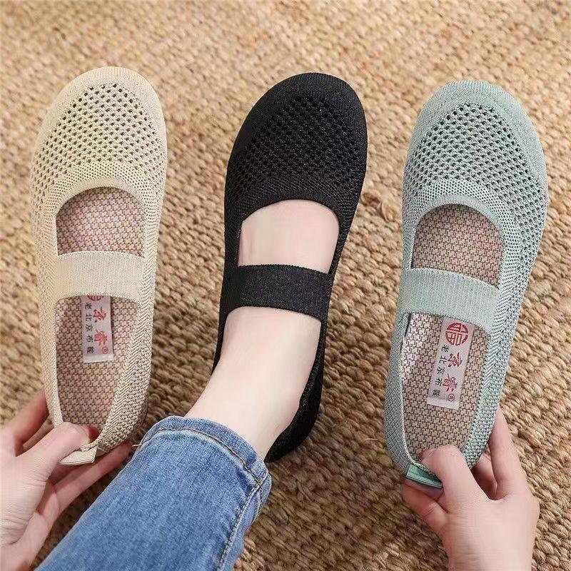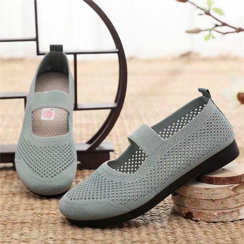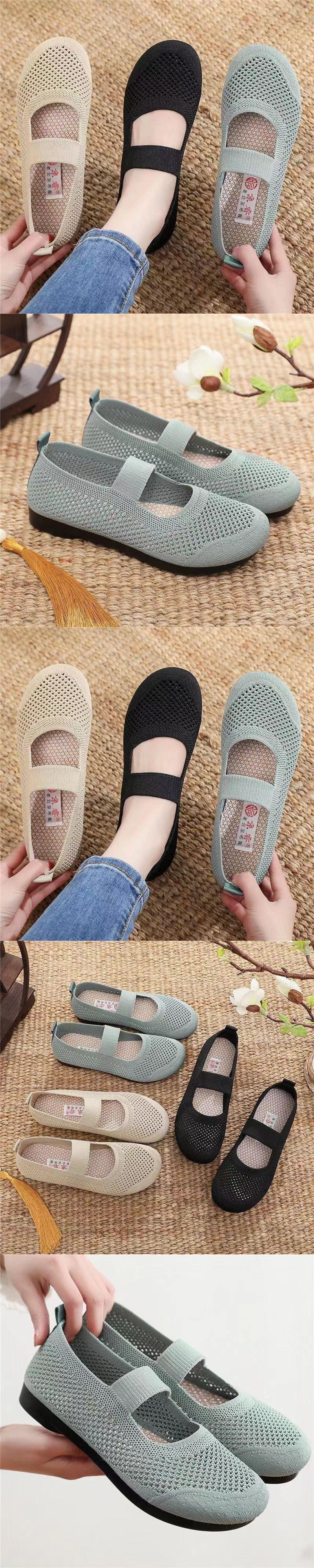Verano Nuevos Zapatos de Malla Transpirable Zapatos de Tela de Pekín Antiguos Zapatos de Mamá Cómodos de Suela Blanda Sandalias Planas Casuales Huecas de Mujer