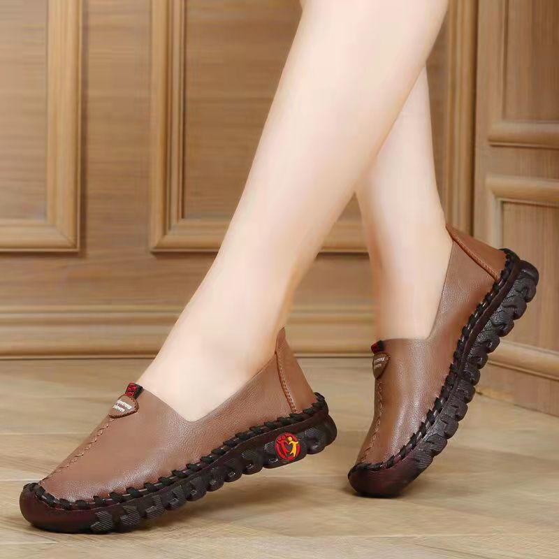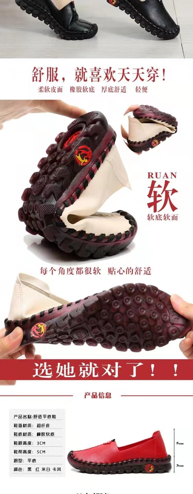 Compra Primavera y verano 2022 nuevos zapatos de mamá de suela blanda suela blanda pies no cansados tendón de res planos talla grande 43 zapatos casuales de cuero genuino para mujer al por mayor en Joom.pro