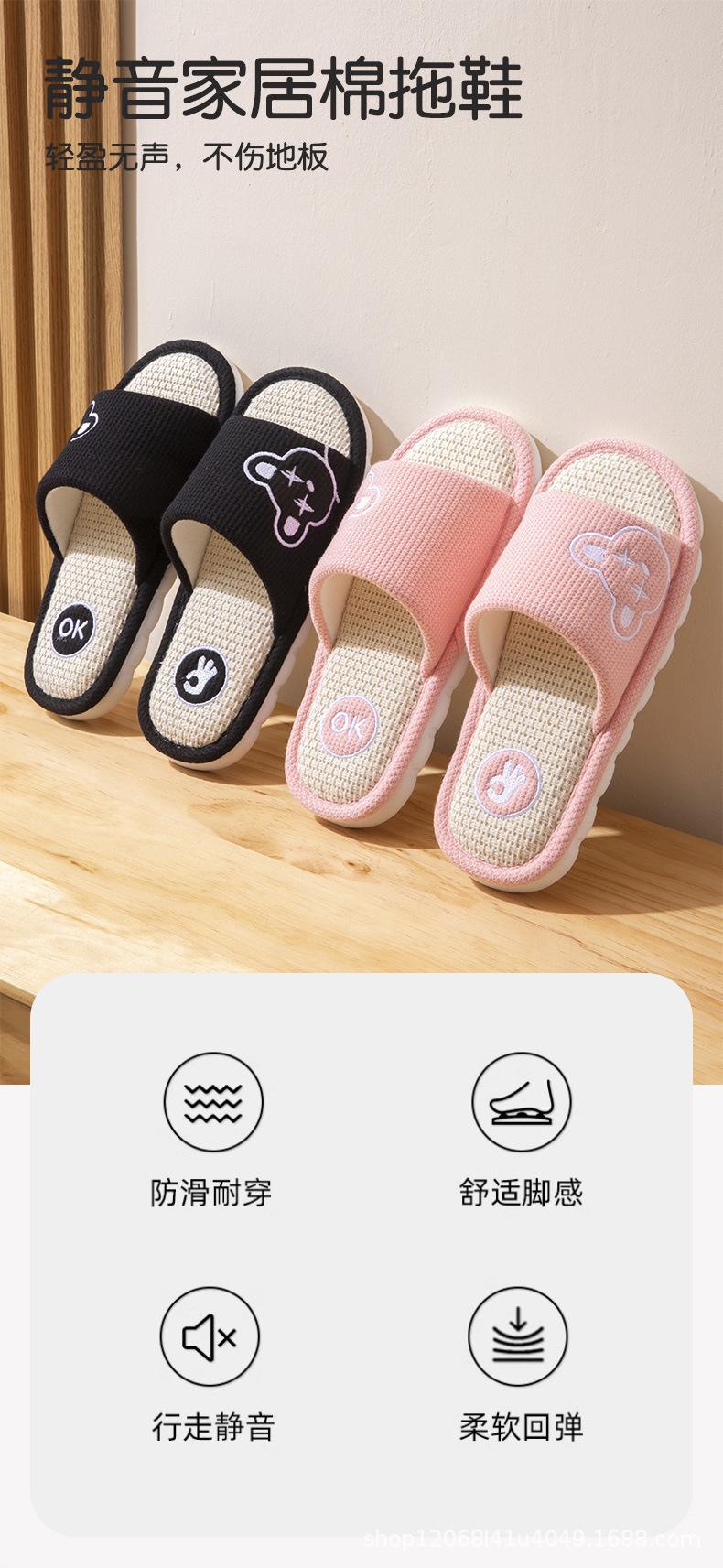 Pantuflas de lino para adulto para mujer para las cuatro estaciones para el hogar para interior para piso silenciosas antideslizantes absorbentes del sudor para pareja zapatos de algodón y lino al por mayor