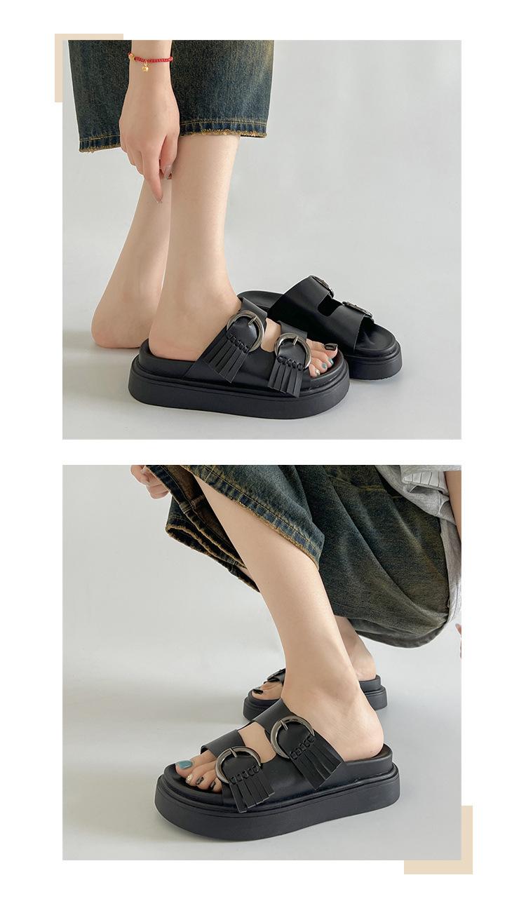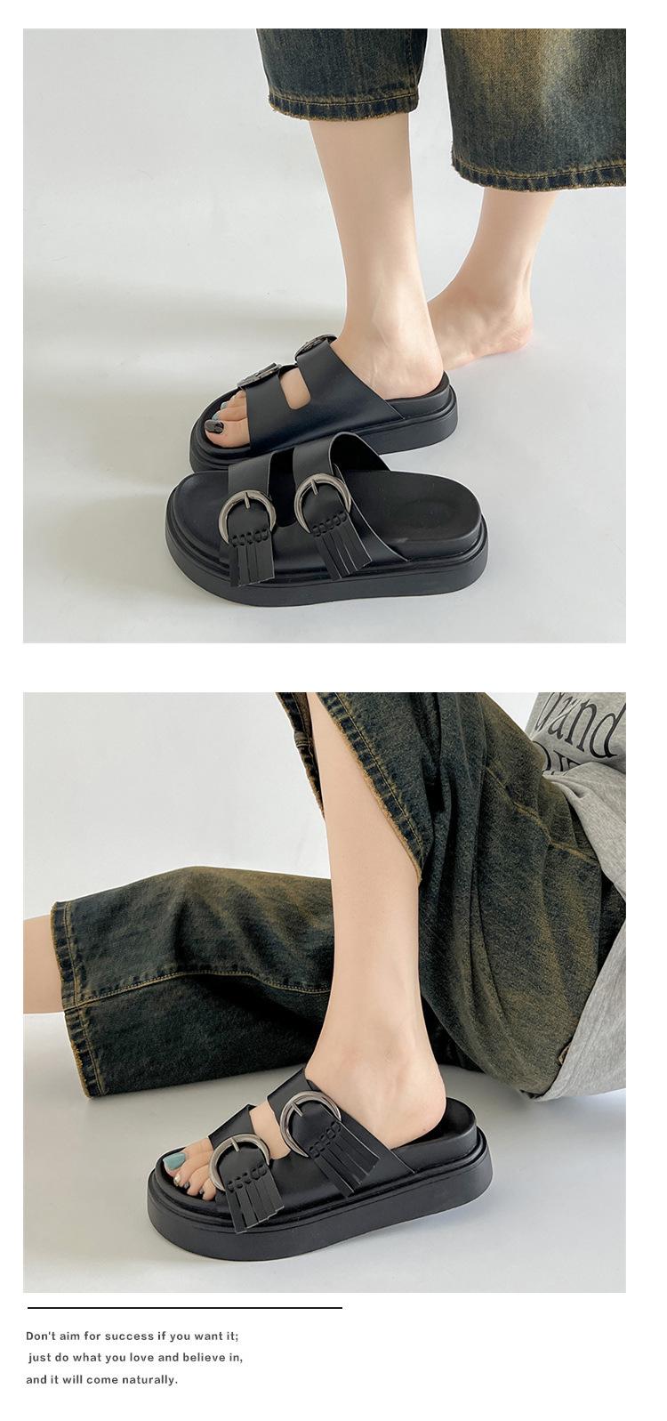 Compra Pantuflas de Moda Negras de Suela Gruesa para Mujer Verano para Exterior 2025 Nuevas Sandalias con Plataforma al por mayor en Joom.pro