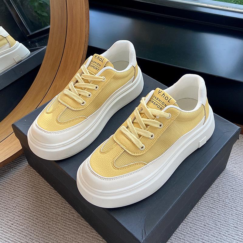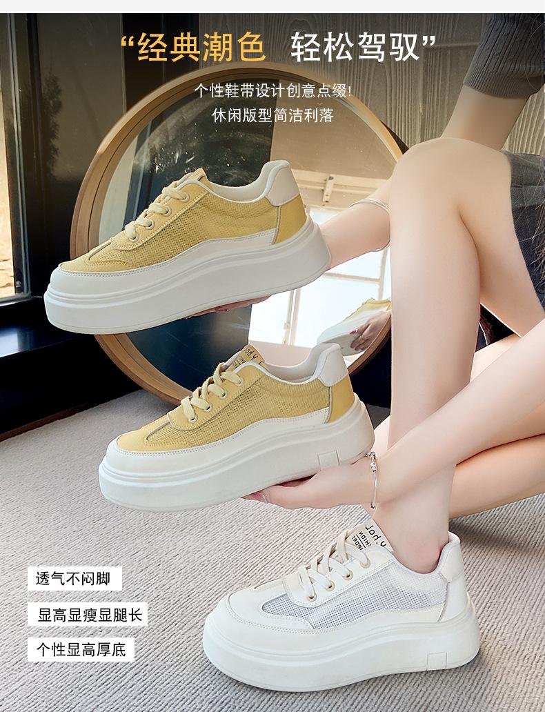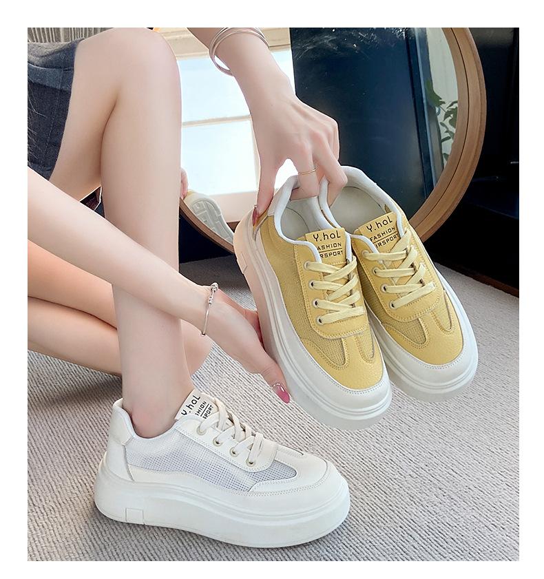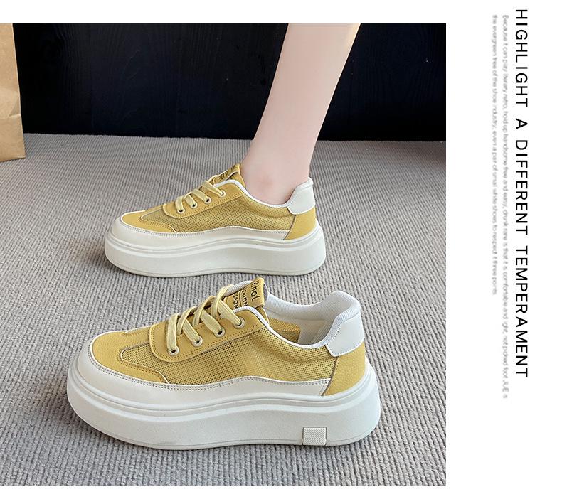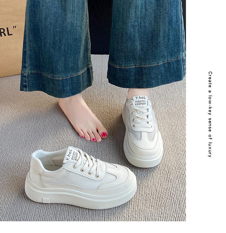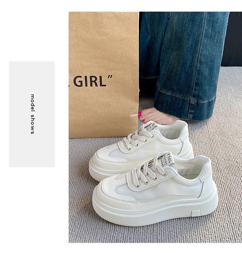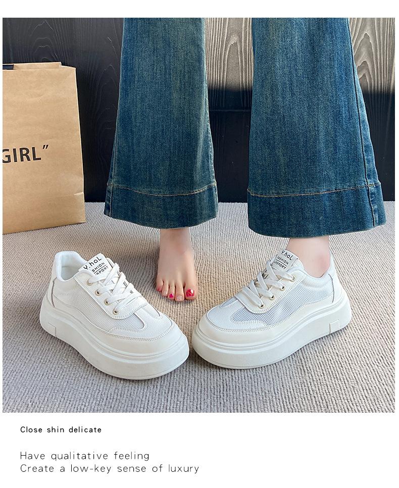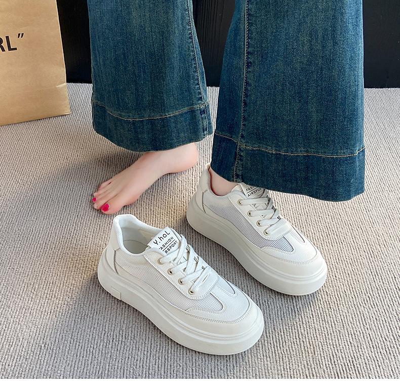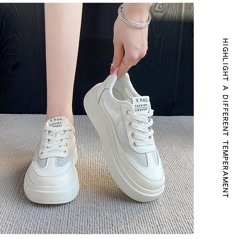 Zapatos Blancos de Suela Gruesa para Mujer 2025 Verano Nuevos Zapatos Deportivos y Casuales Punta Redonda Malla Ligeros Suela Blanda Tenis de Estudiante
