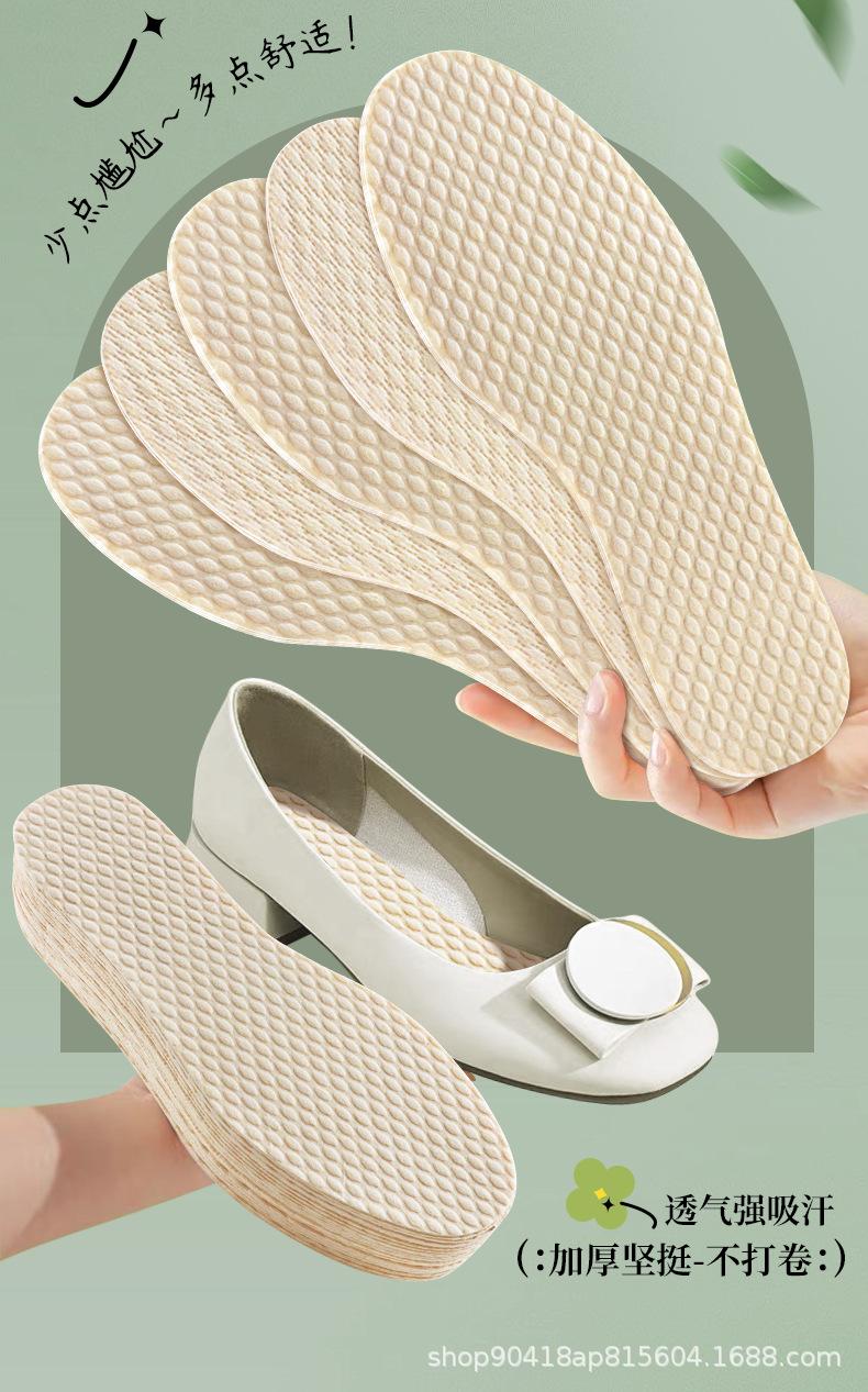 5 Pares de Plantillas Desechables para Mujer, Absorbentes de Sudor, Desodorantes, Transpirables de Pulpa de Madera Verano Delgadas Cómodas Plantillas Descalzas, Ligeras y Delgadas