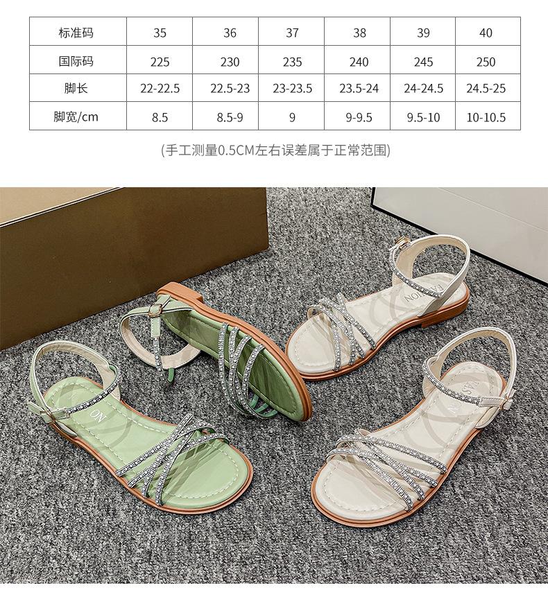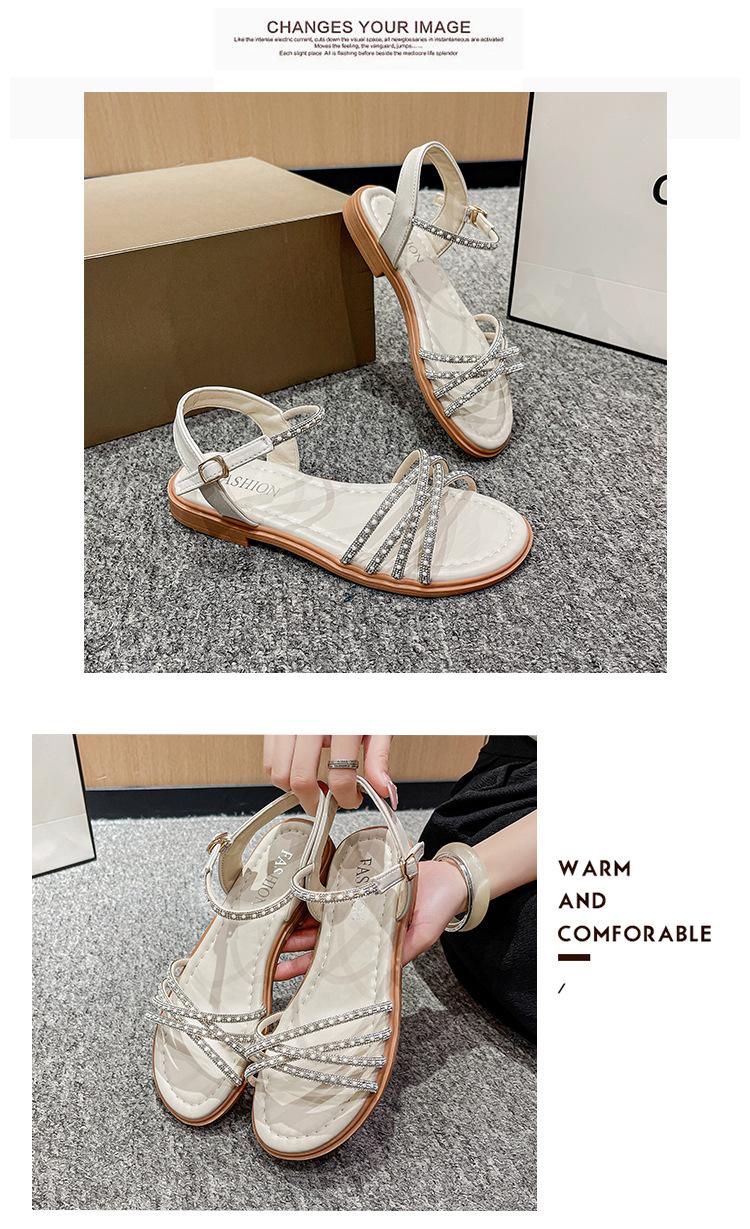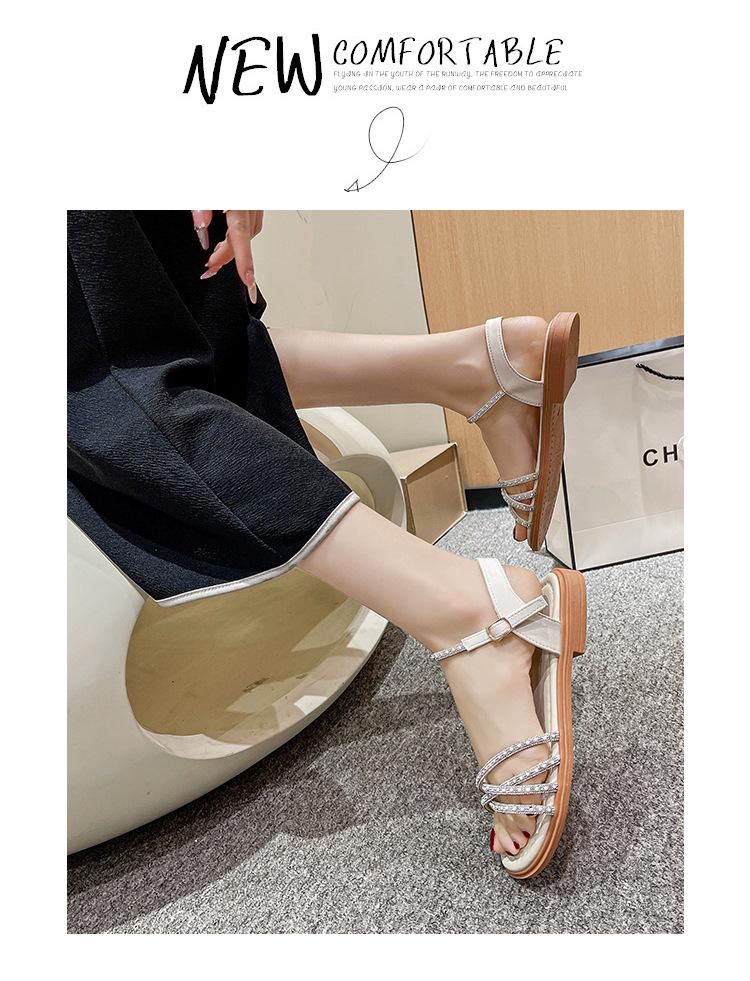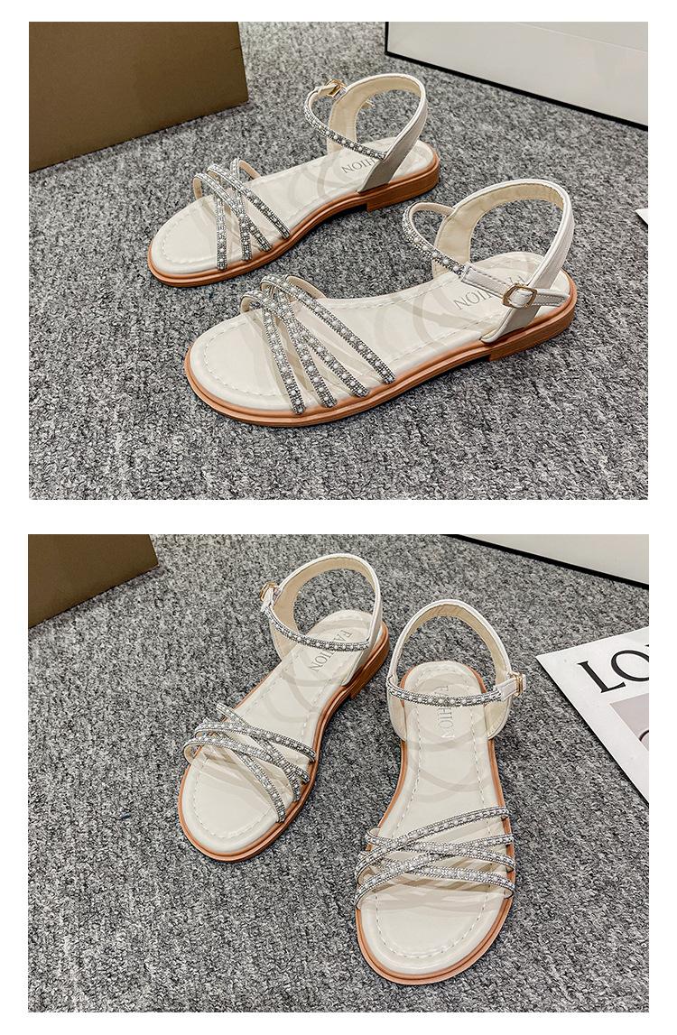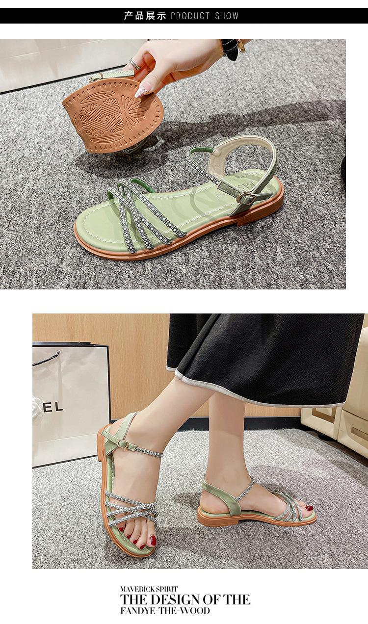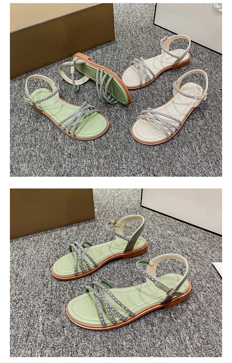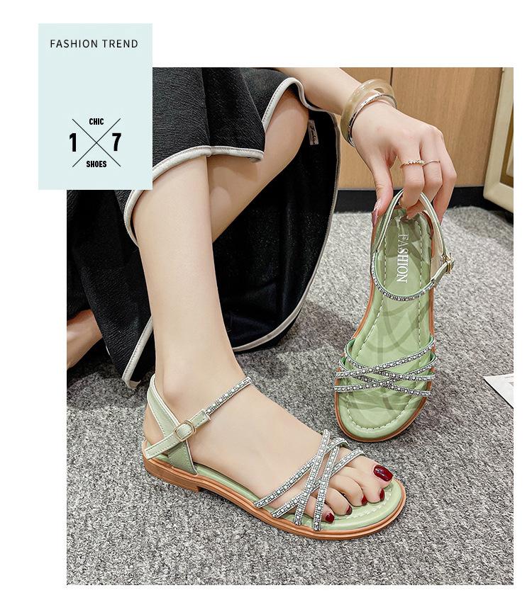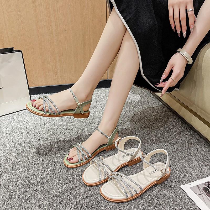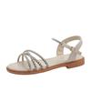 2025 Verano Nuevos Zapatos Romanos Estilo Hada Zapatos de Playa Sandalias Planas para Mujer Diamantes de Imitación Moda Todo Combinación Suela Suave