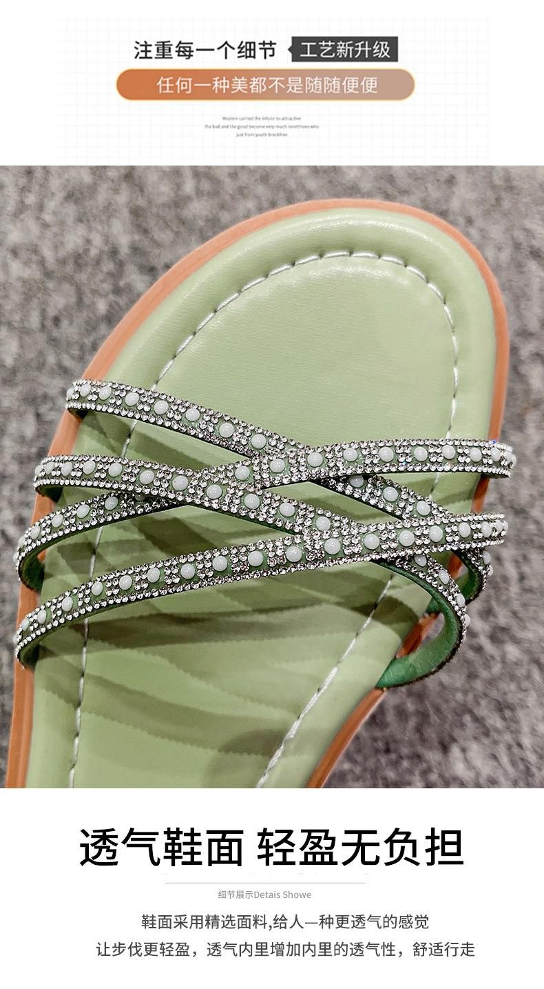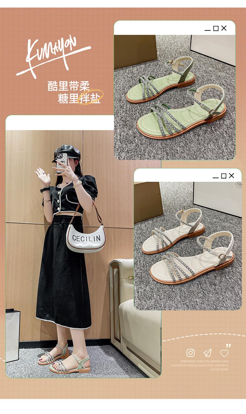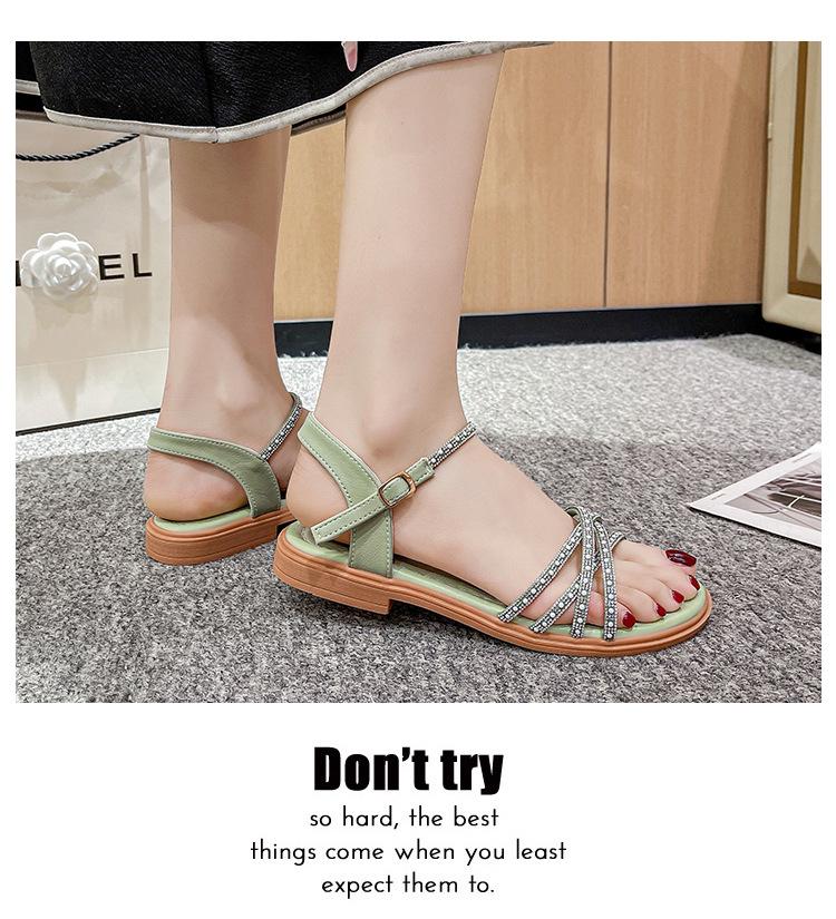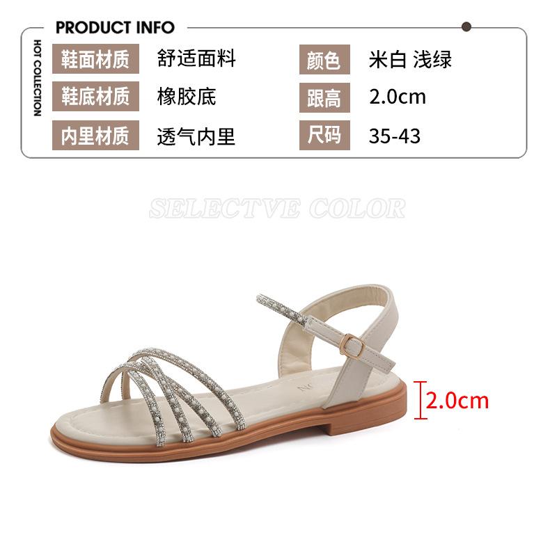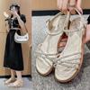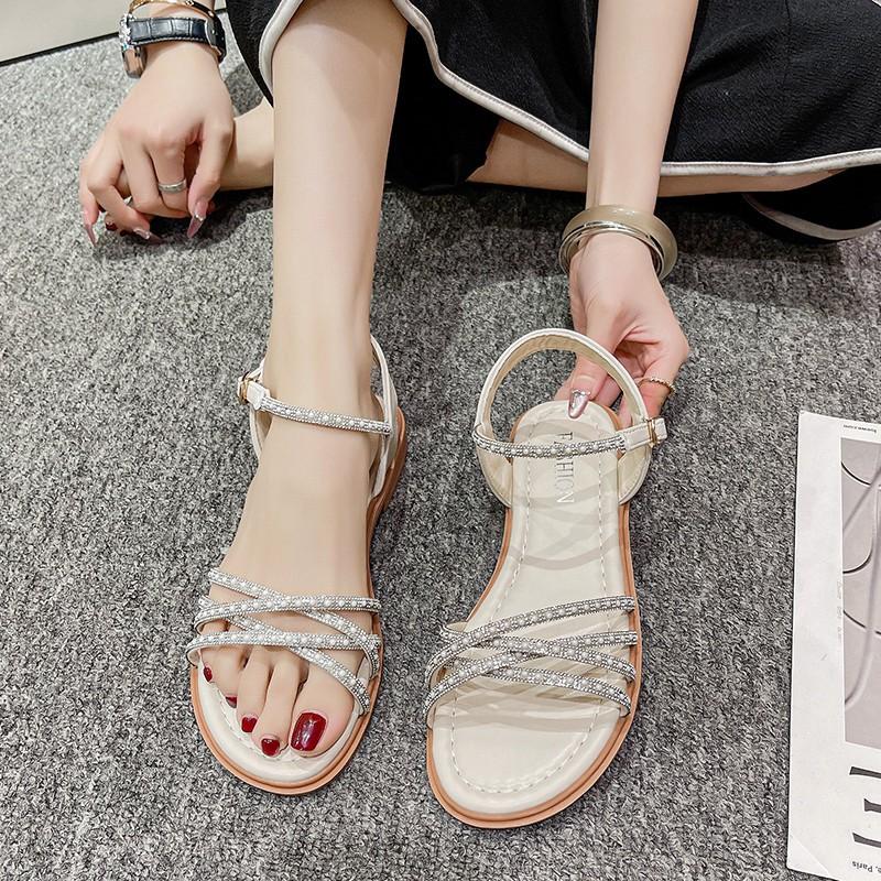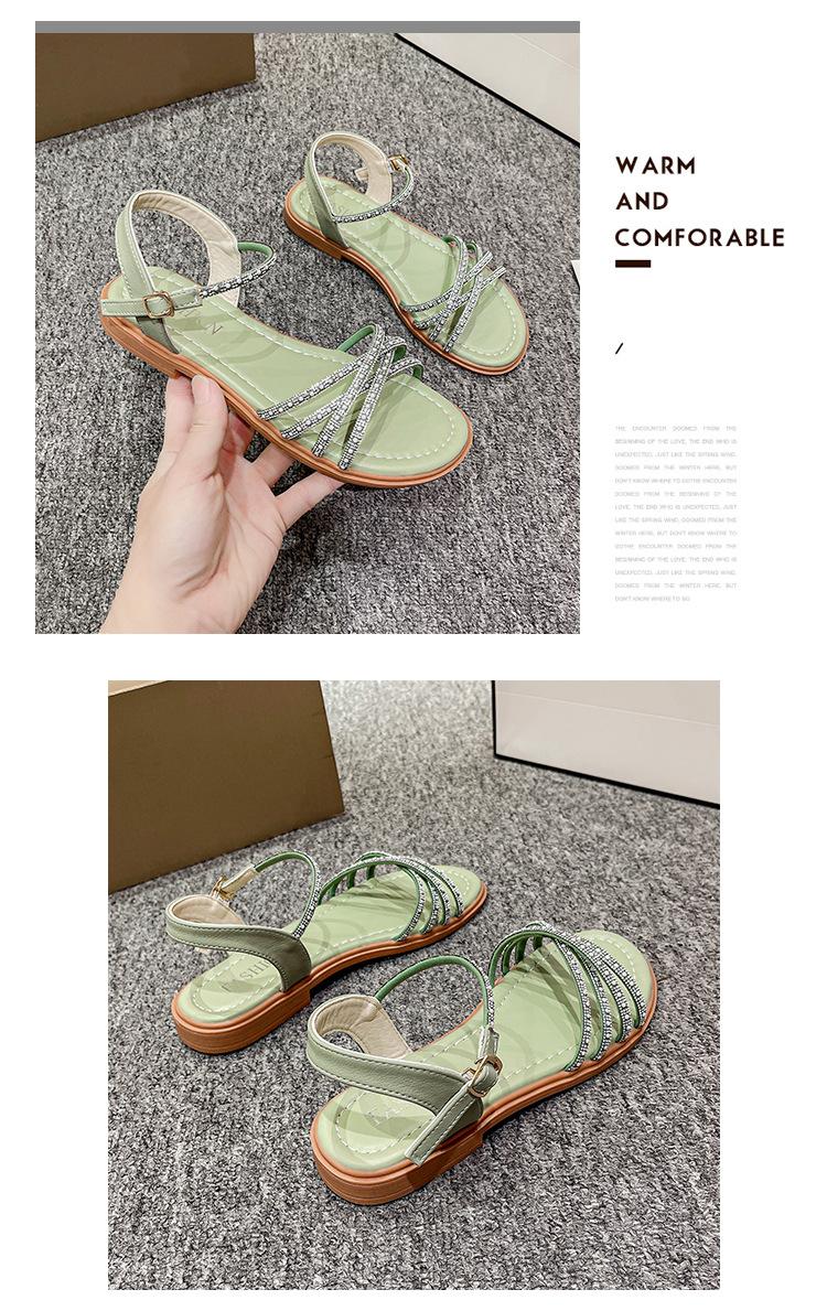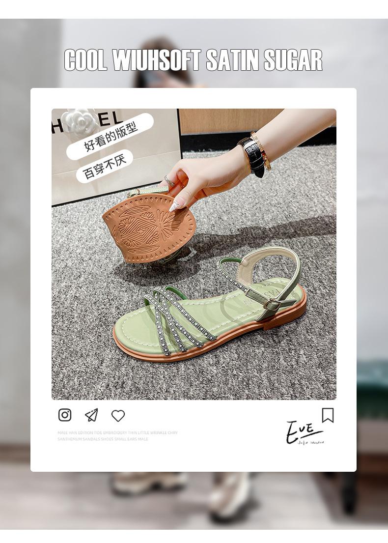 2025 Verano Nuevos Zapatos Romanos Estilo Hada Zapatos de Playa Sandalias Planas para Mujer Diamantes de Imitación Moda Todo Combinación Suela Suave