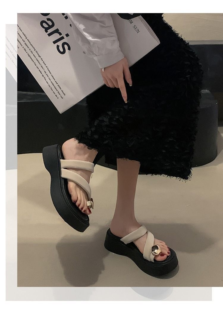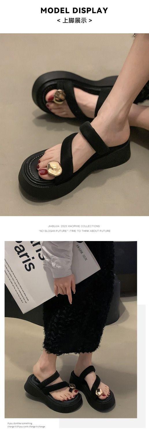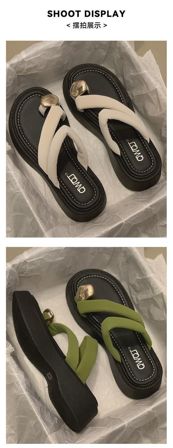 Pantuflas Slip-On para Mujer 2025 Verano Nueva Moda Versátil Metal Suela Gruesa Cómodas Casual Chanclas