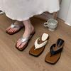 Chanclas planas de playa para mujer Verano Ropa exterior 2025 Nuevas Chanclas de tacón bajo Moda de celebridad de Internet Zapatillas de punta cuadrada