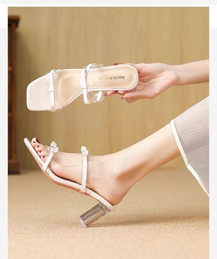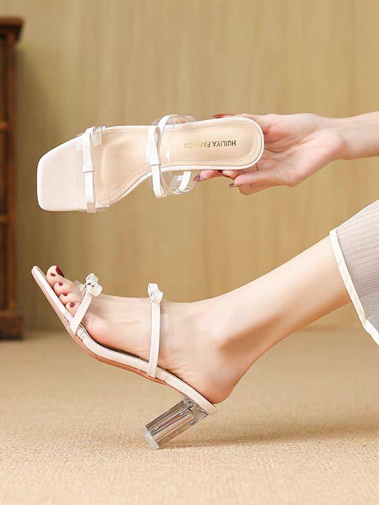 Sandalias de Tacón Alto Transparentes de Cristal de Moda Rosa Dulce Primavera 2025 con Lazo Nuevo y Punta Abierta para Mujer