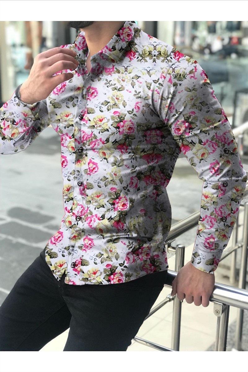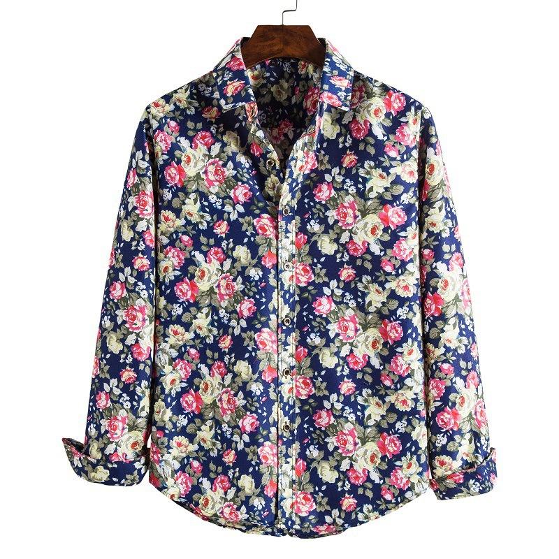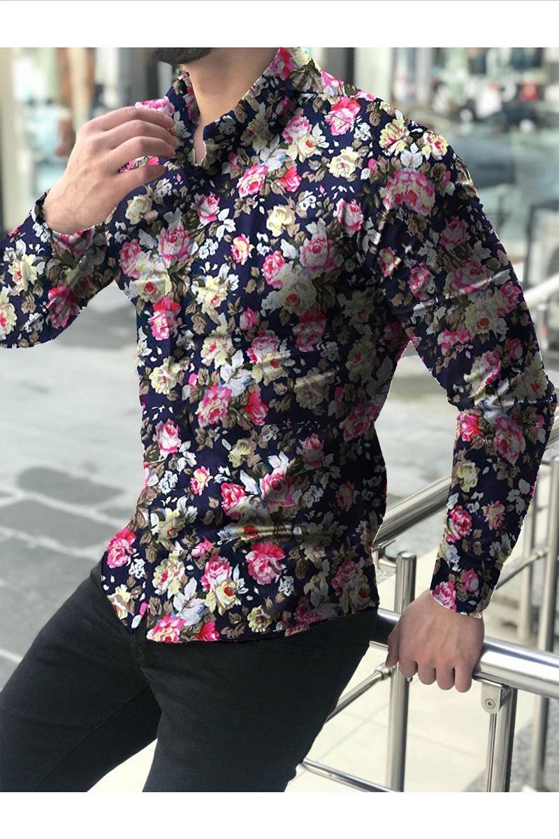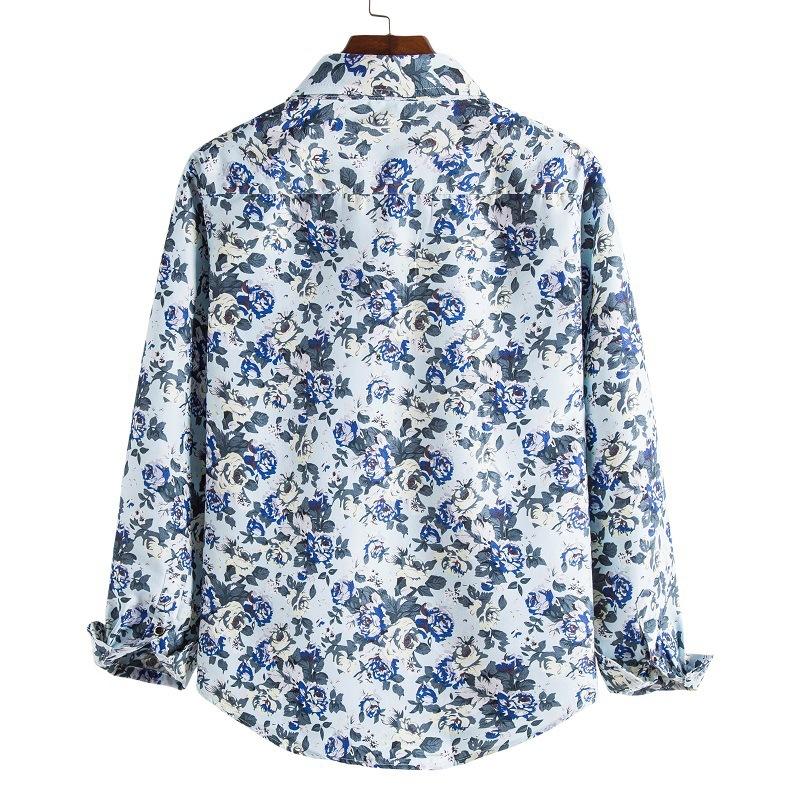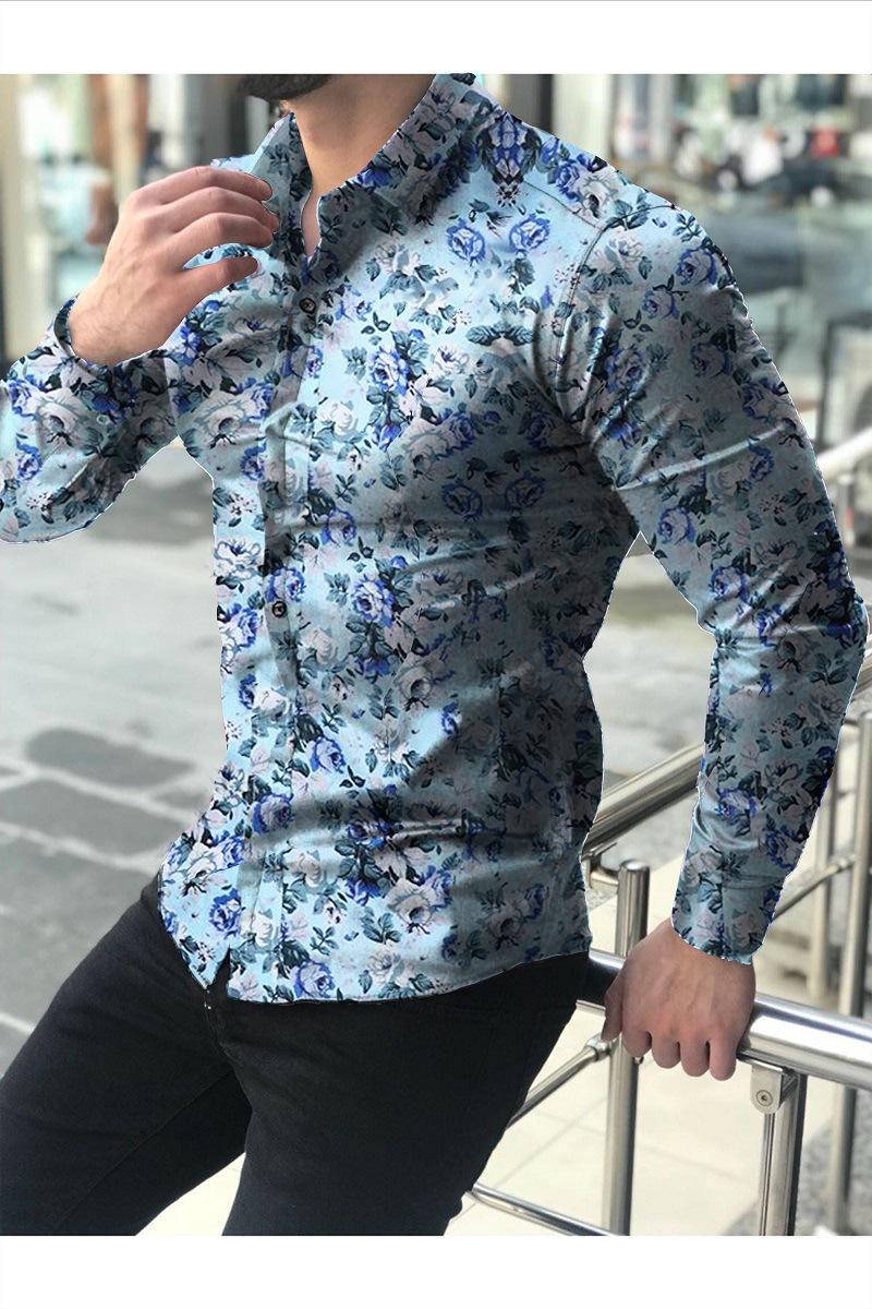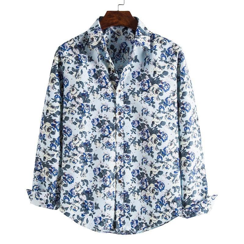 Amazon comercio exterior transfronterizo nueva camisa estampada de tendencia para hombre moda casual slim camisa con solapa para hombre al por mayor