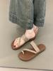 Sandalias Romanas de Dedo 2025 Verano Estilo Coreano Estilo Ins Lino Chancla Vacaciones Playa Planas Sandalias para Mujer