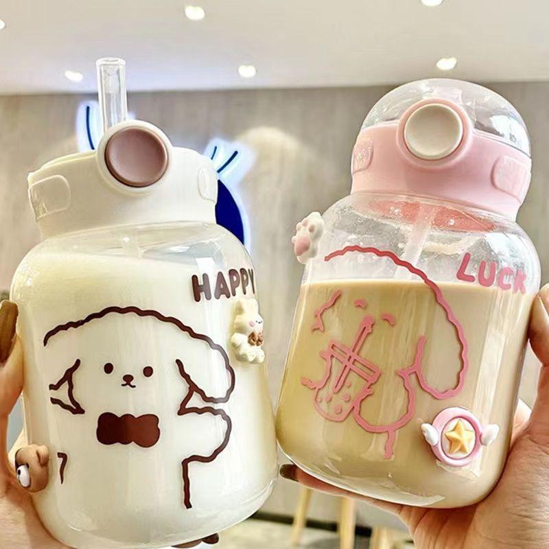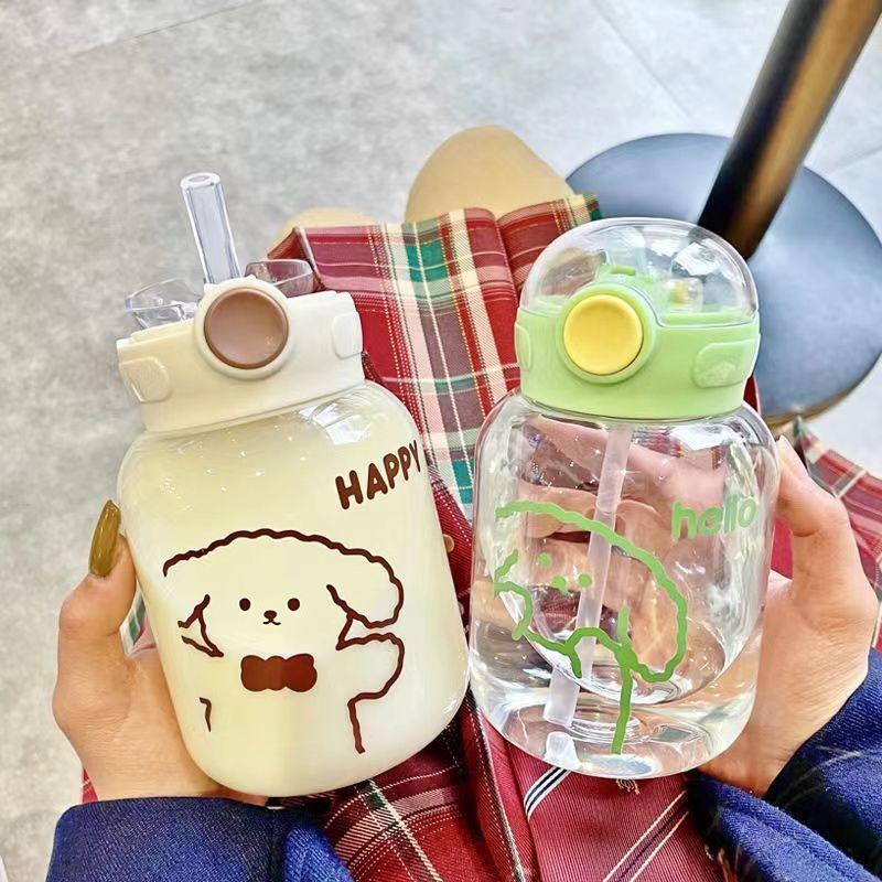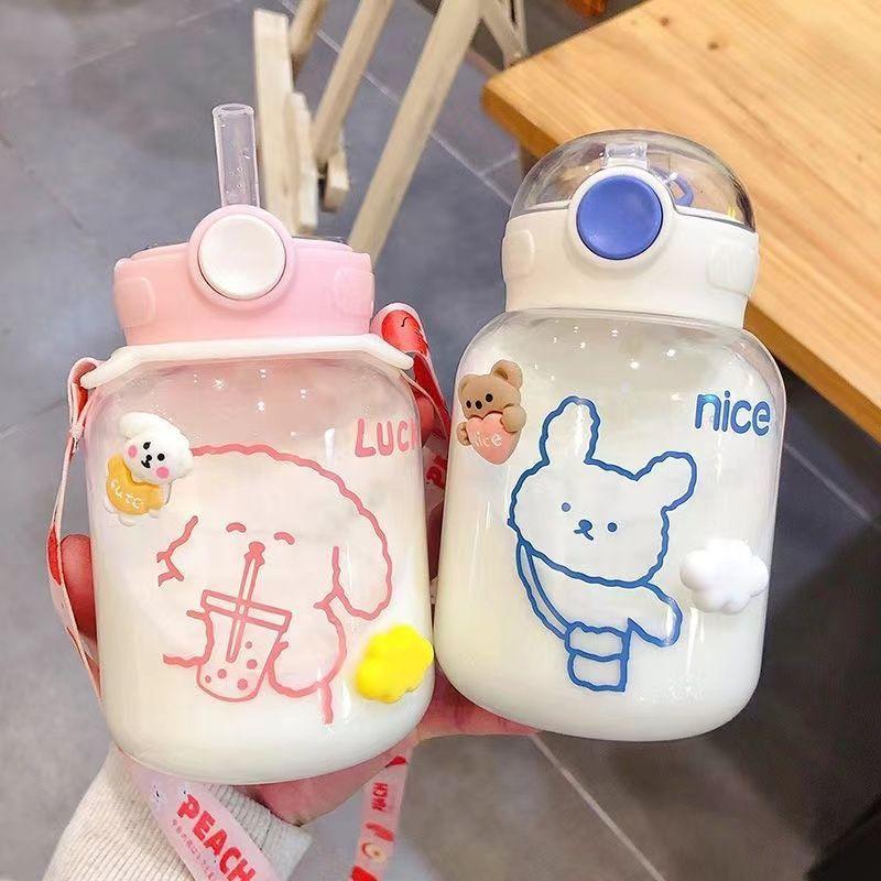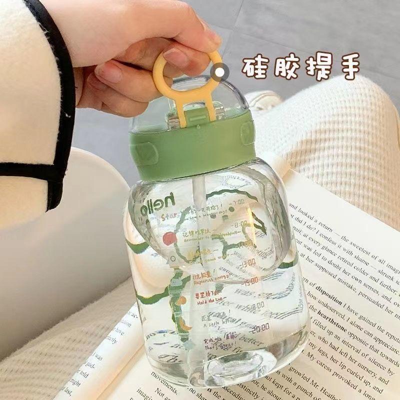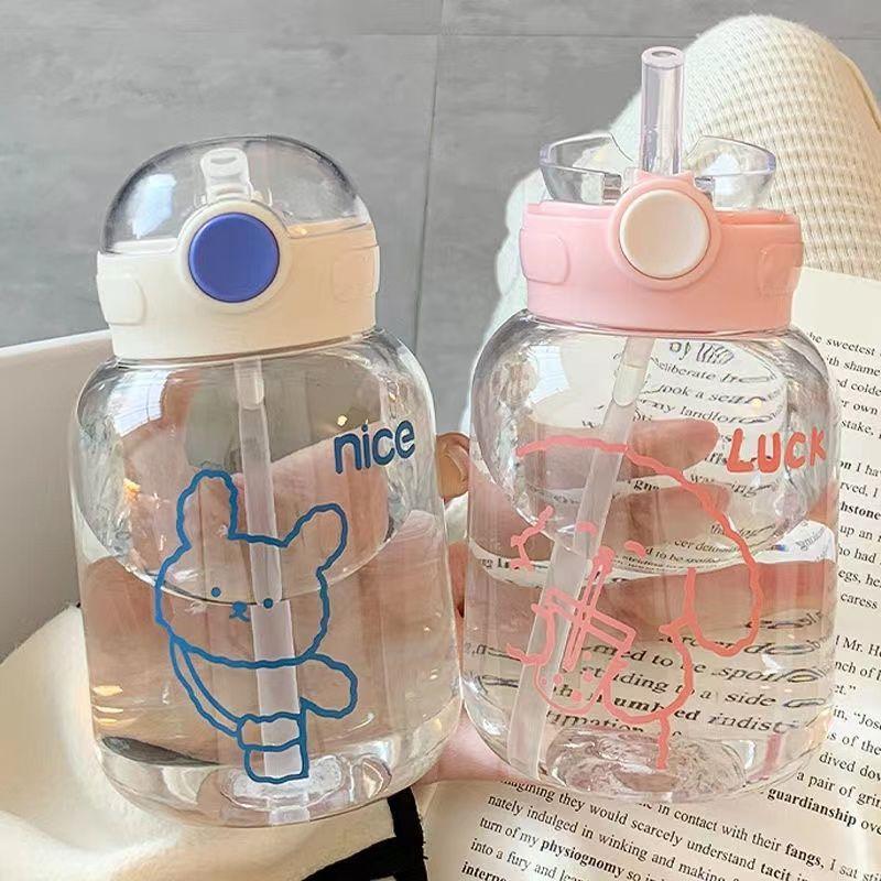 Ins Lindo Vaso de Paja de Aspecto Elegante Femenino Verano Estudiante Adulto Hervidor de Agua de Plástico Vaso de Agua Pequeño Portátil