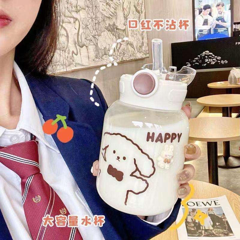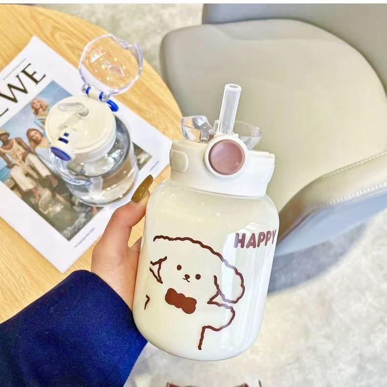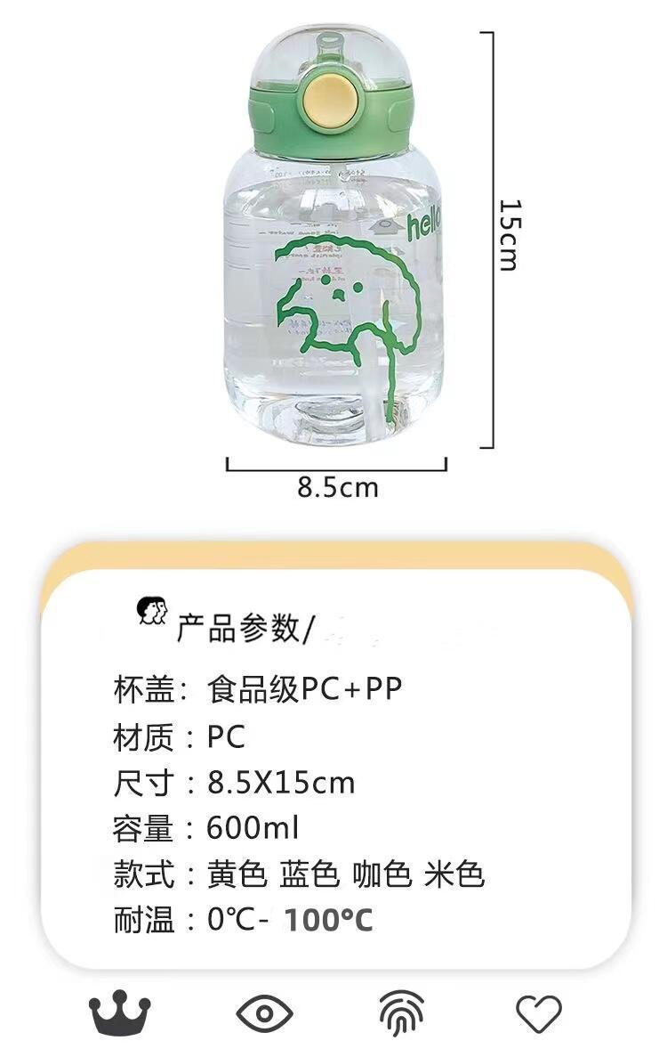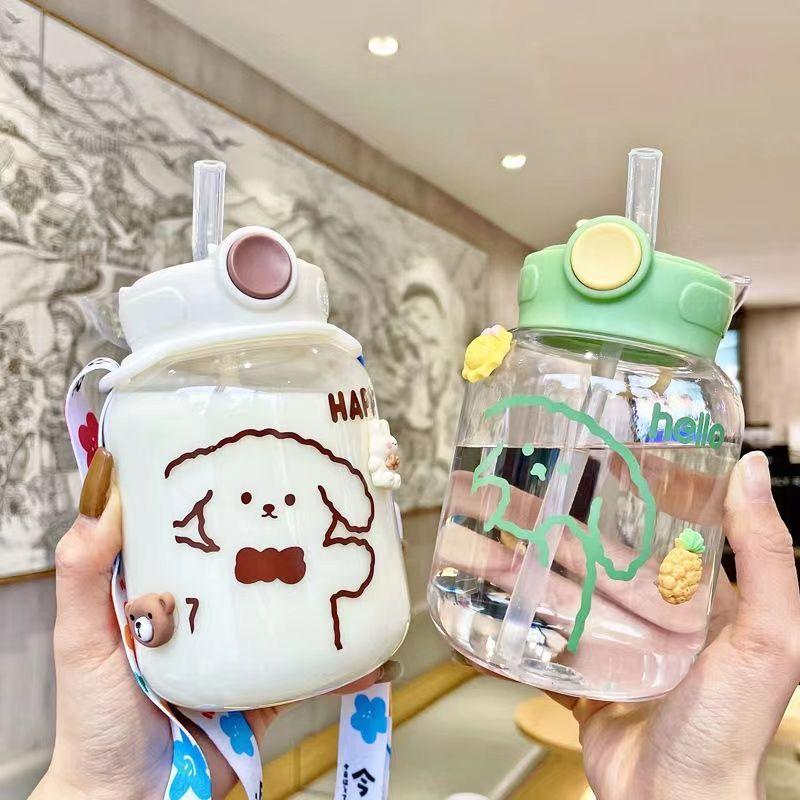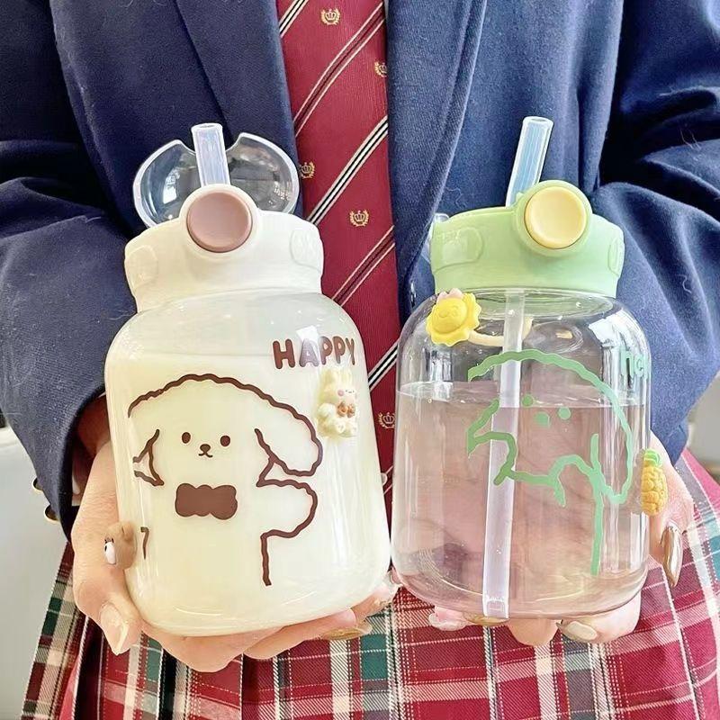 Ins Lindo Vaso de Paja de Aspecto Elegante Femenino Verano Estudiante Adulto Hervidor de Agua de Plástico Vaso de Agua Pequeño Portátil