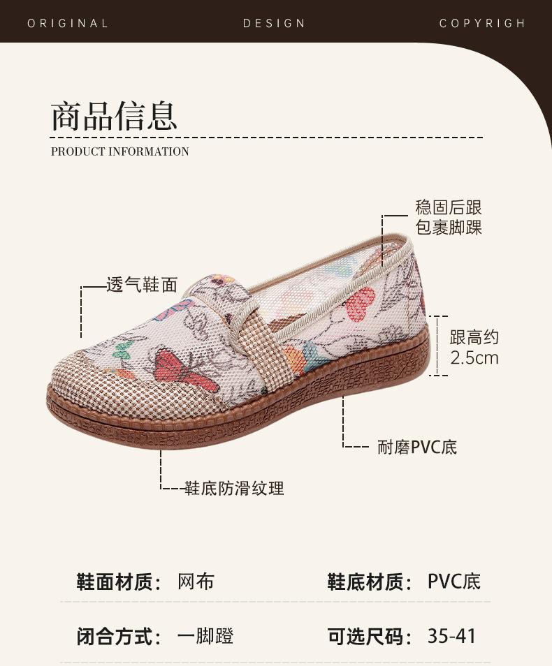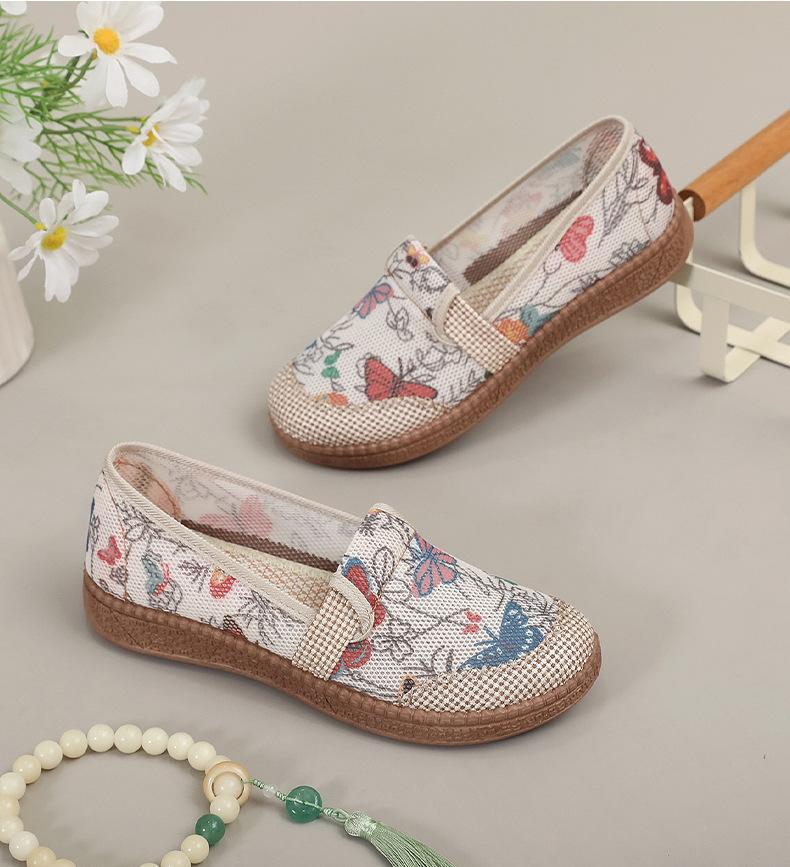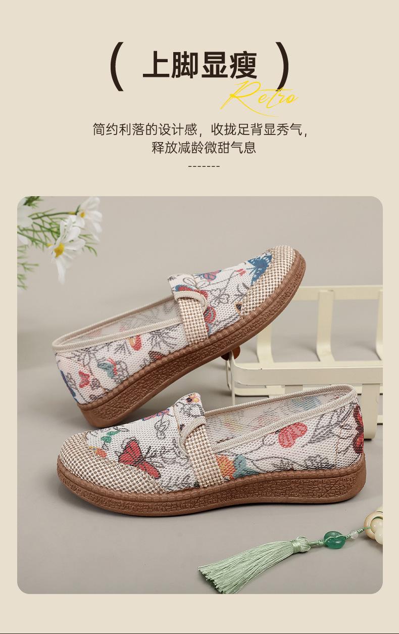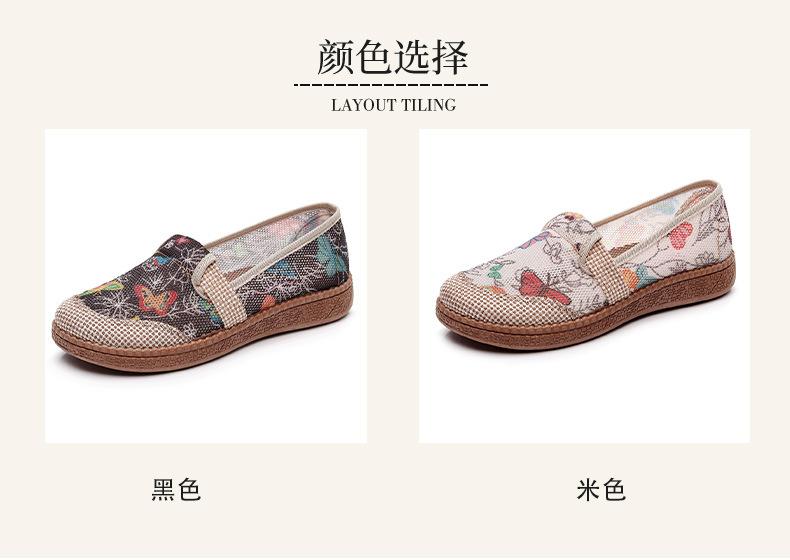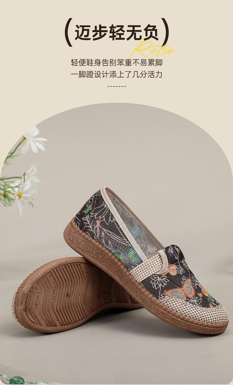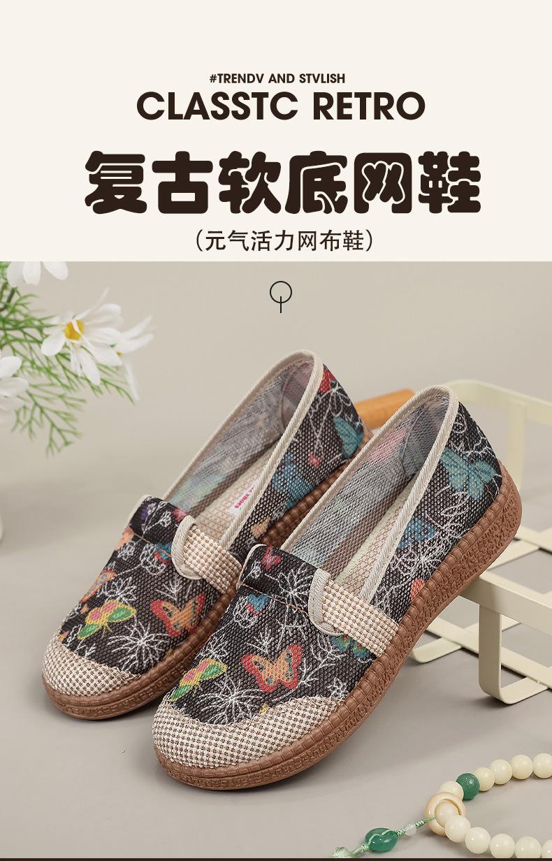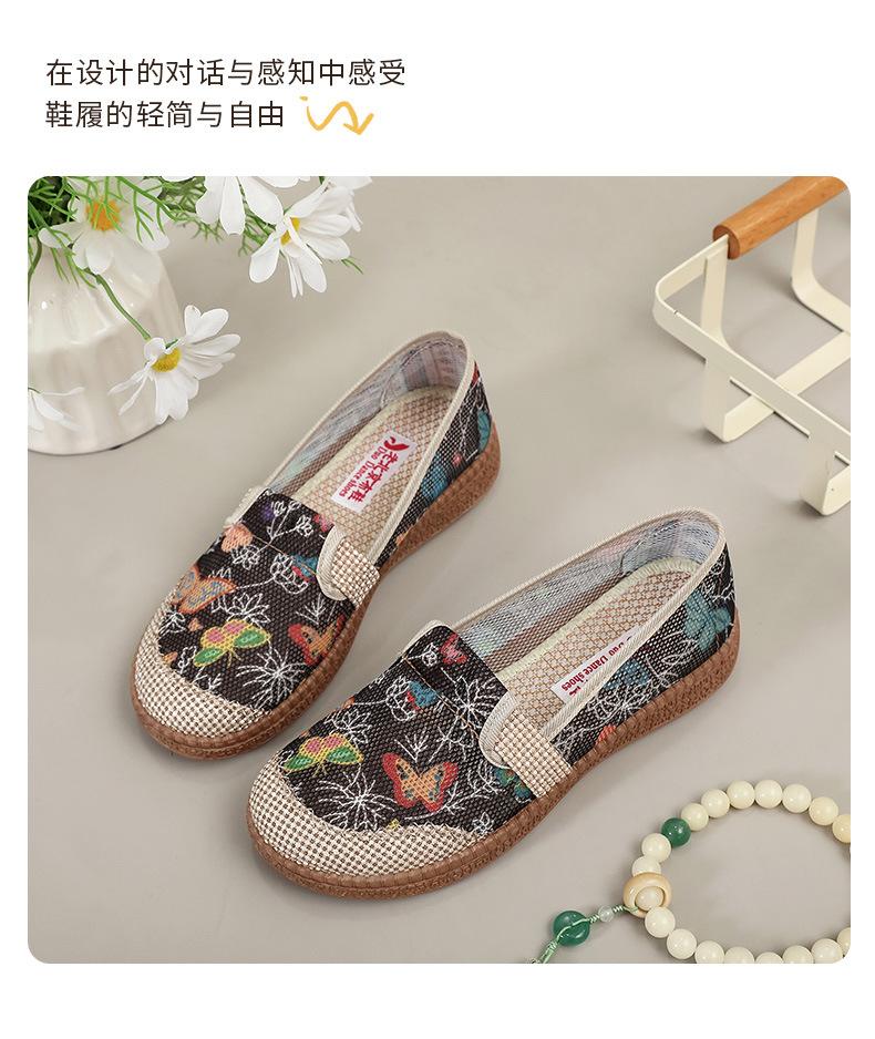 Zapatos de Tela de Pekín Antiguos Zapatos de Lona Transpirables Nuevos de Primavera y Verano Zapatos de Pescador Zapatos para Madre de Mediana Edad y Anciana Zapatos de Una Capa