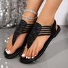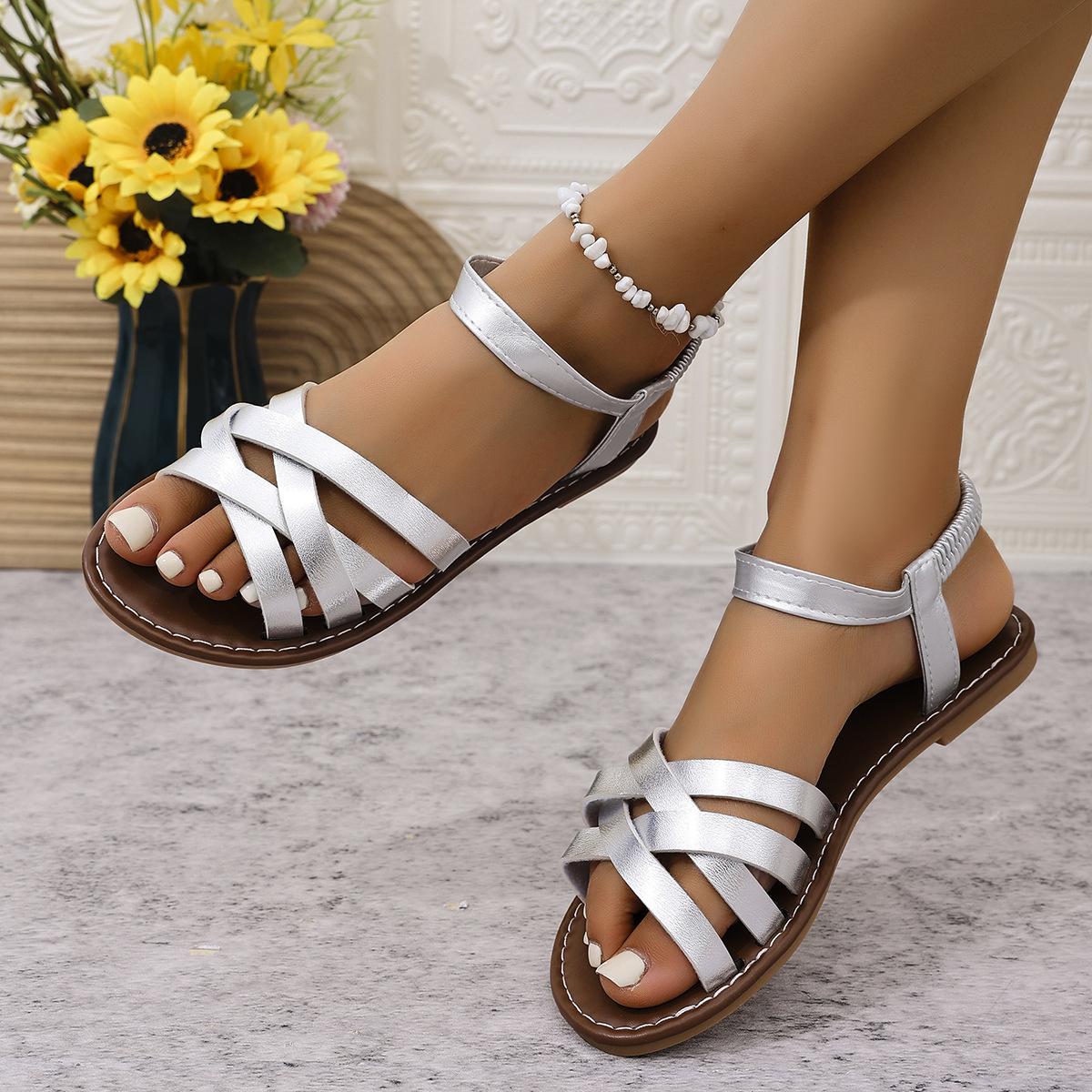 Sandalias planas tejidas elásticas de punta redonda para mujer, nuevas transfronterizas, talla grande para comercio exterior, sandalias romanas de playa sencillas en stock
